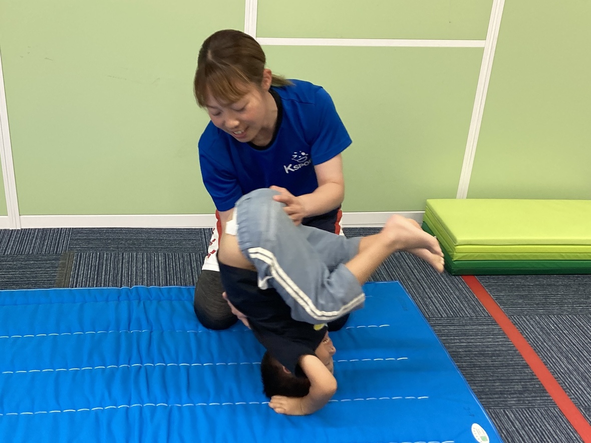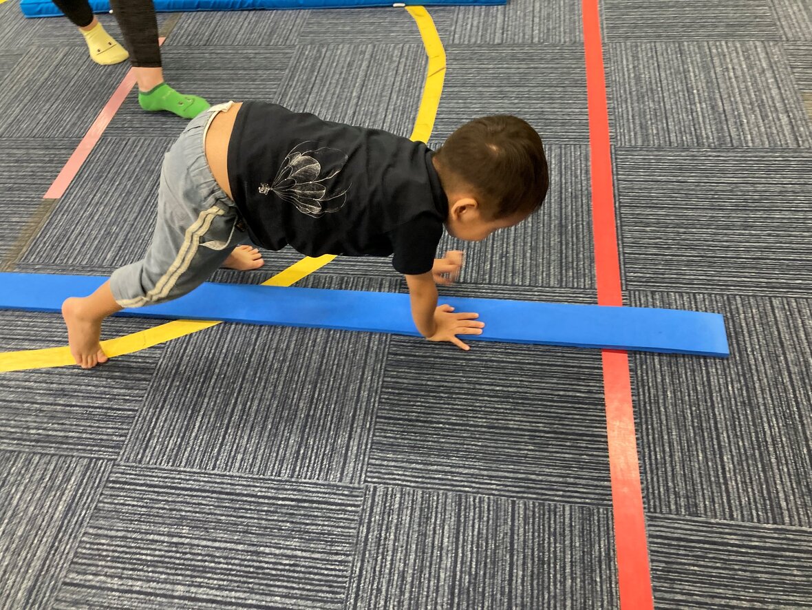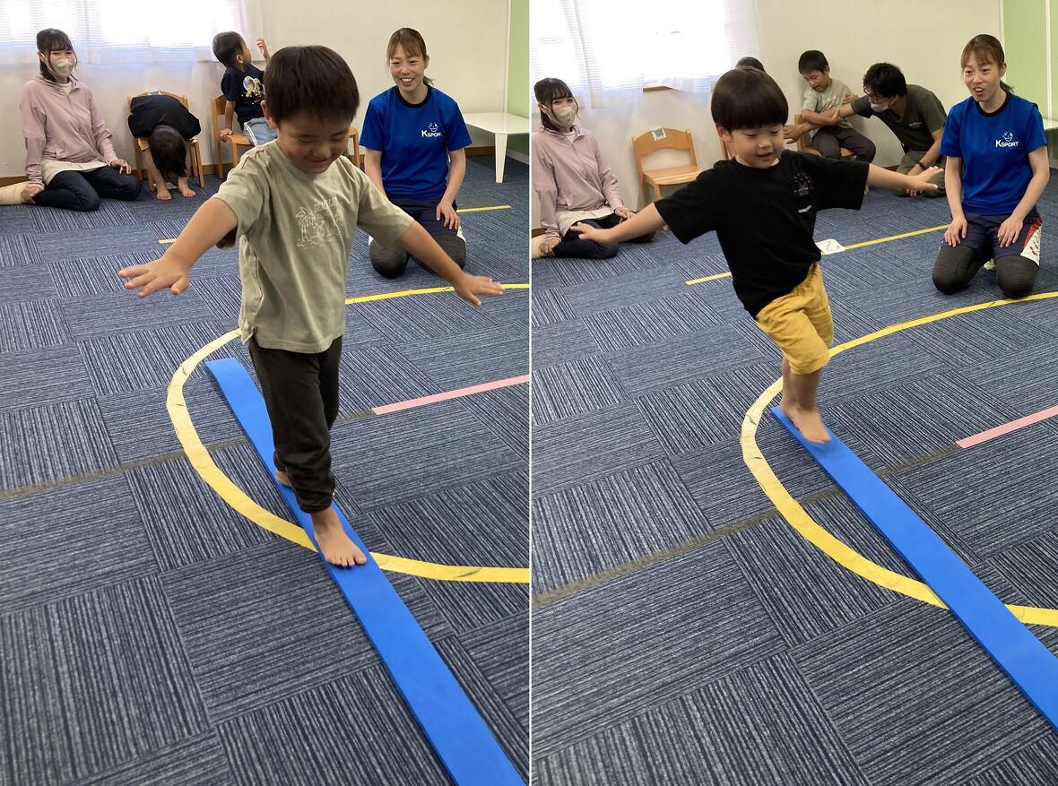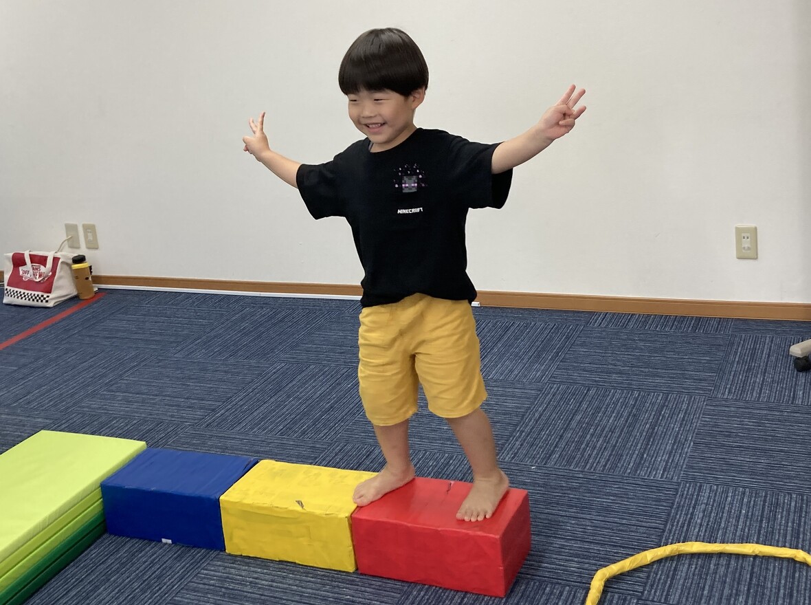 2024年08月02日(金) スタッフブログ ミポ先生と運動遊び♩ 毎週金曜日はミポ先生の運動療育です!今日のメインは平均台とマット運動です。平均台を使って、かかと歩きやつま先歩き、後ろ歩きなどでバランス感覚を鍛えました!マットでは前転、後転の練習です。みんな上手に出来ていました! みんな慎重に渡ってます! 今度はクマさん歩きで手だけをのせてます! 上手に前回りが出来てます。 カニさん歩き♩