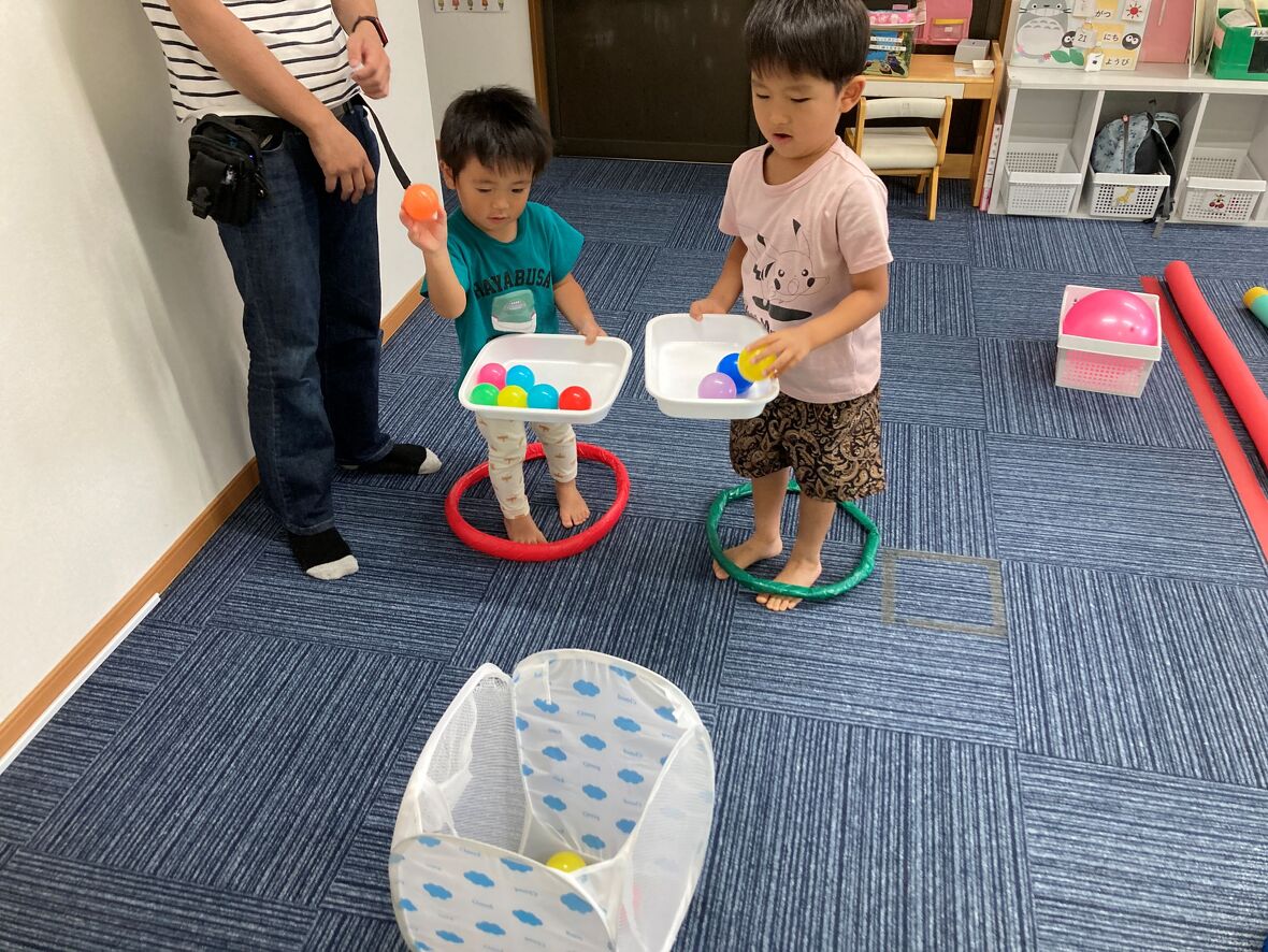 2024年08月21日(水) スタッフブログ サーキット遊び! 今日の活動はみんなでサーキットをしました!お友だちと一緒にボールを運んだり、カラーボールを投げてカゴに入れたりして、ゴールを目指しました!! 協力してボールを落とさないように慎重に運びます! カゴに向かって、ボールを投げ入れます!上手に入るかな? フープの中をジャンプ! 最後はくぐってゴ~ル!