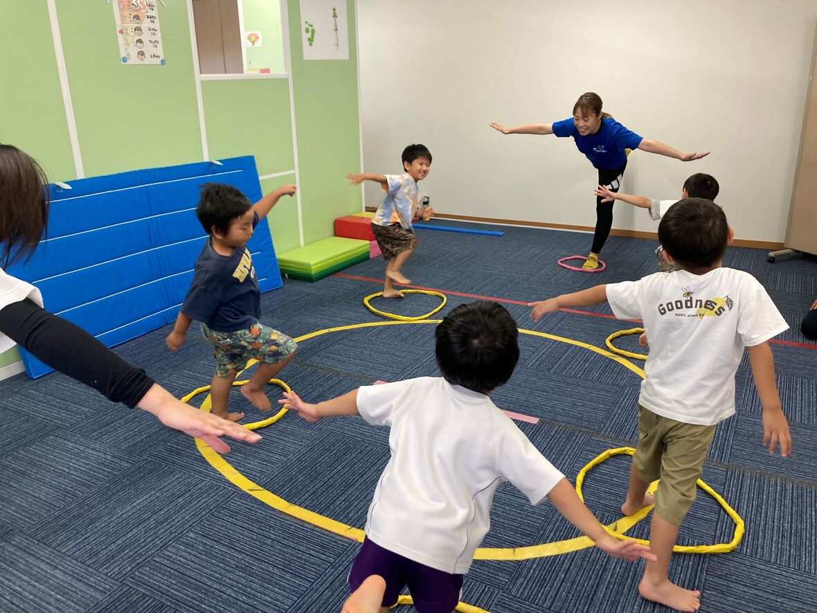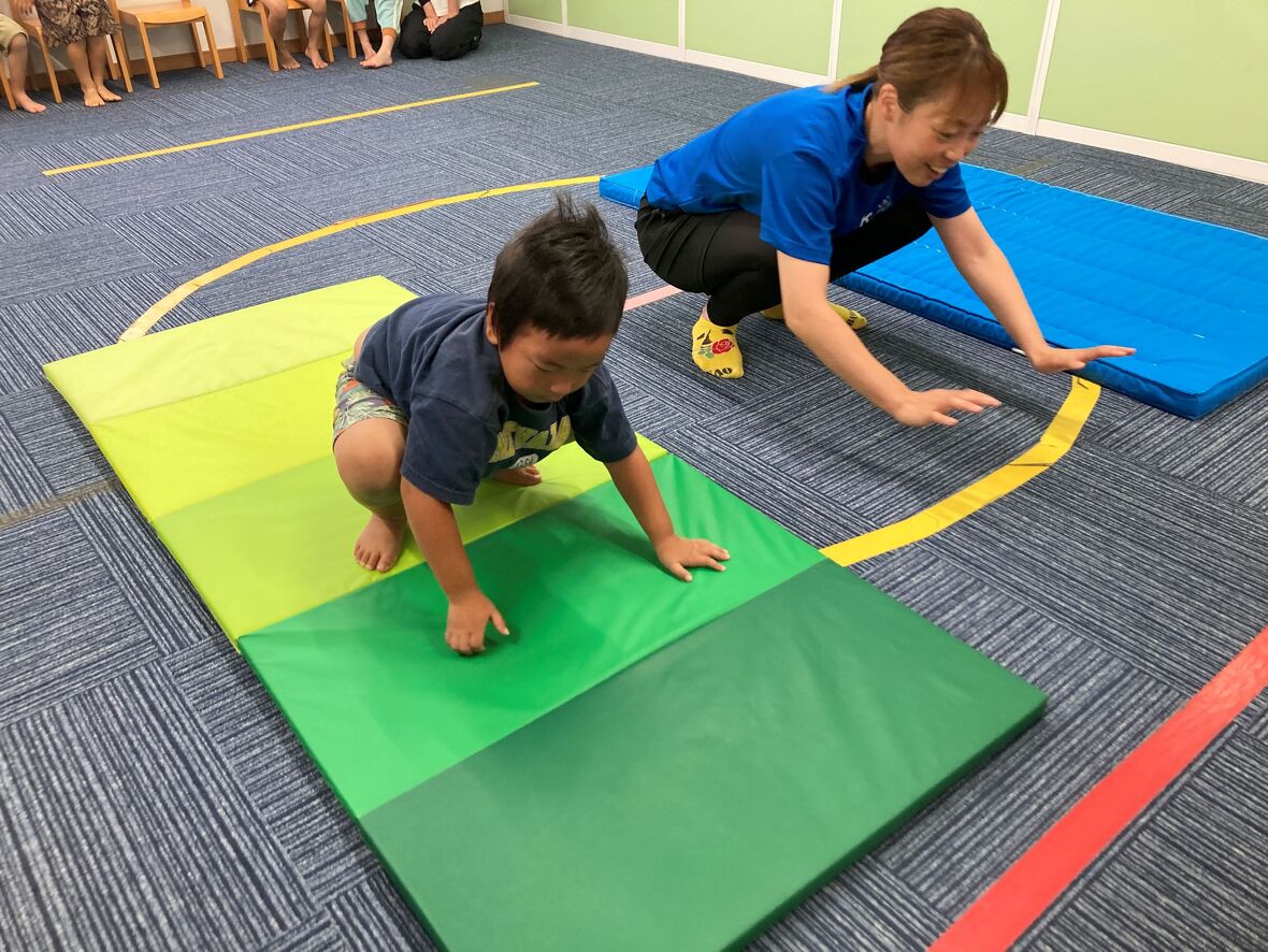 2024年09月06日(金) スタッフブログ ミポ先生と体操! 今日はミポ先生と体操の日です!今日は前転を練習した後に、バランス遊びを行いました!みんな、上手に片足バランスができるようになりましたね! マットに手のひらをしっかりついて、前回り! みんなで片足バランス~