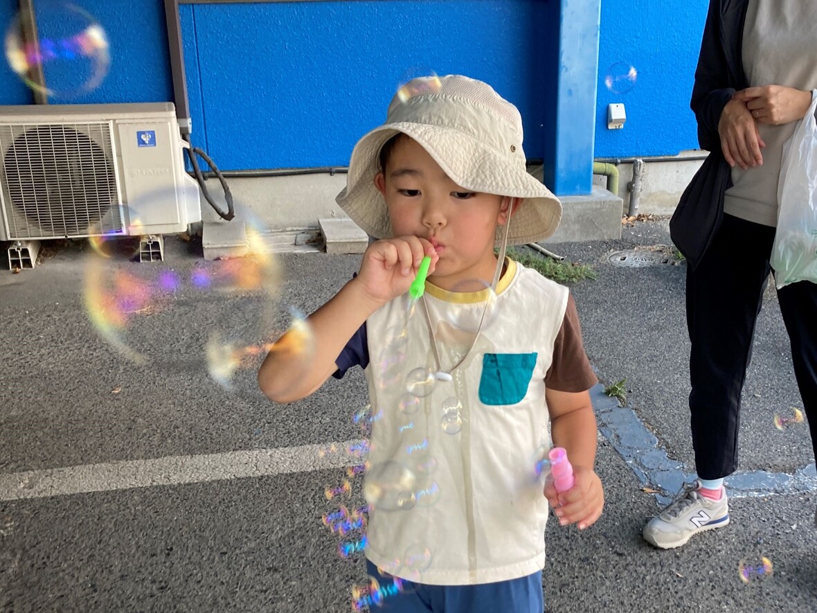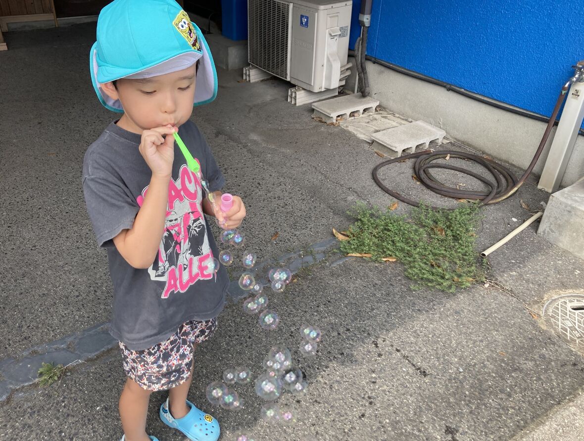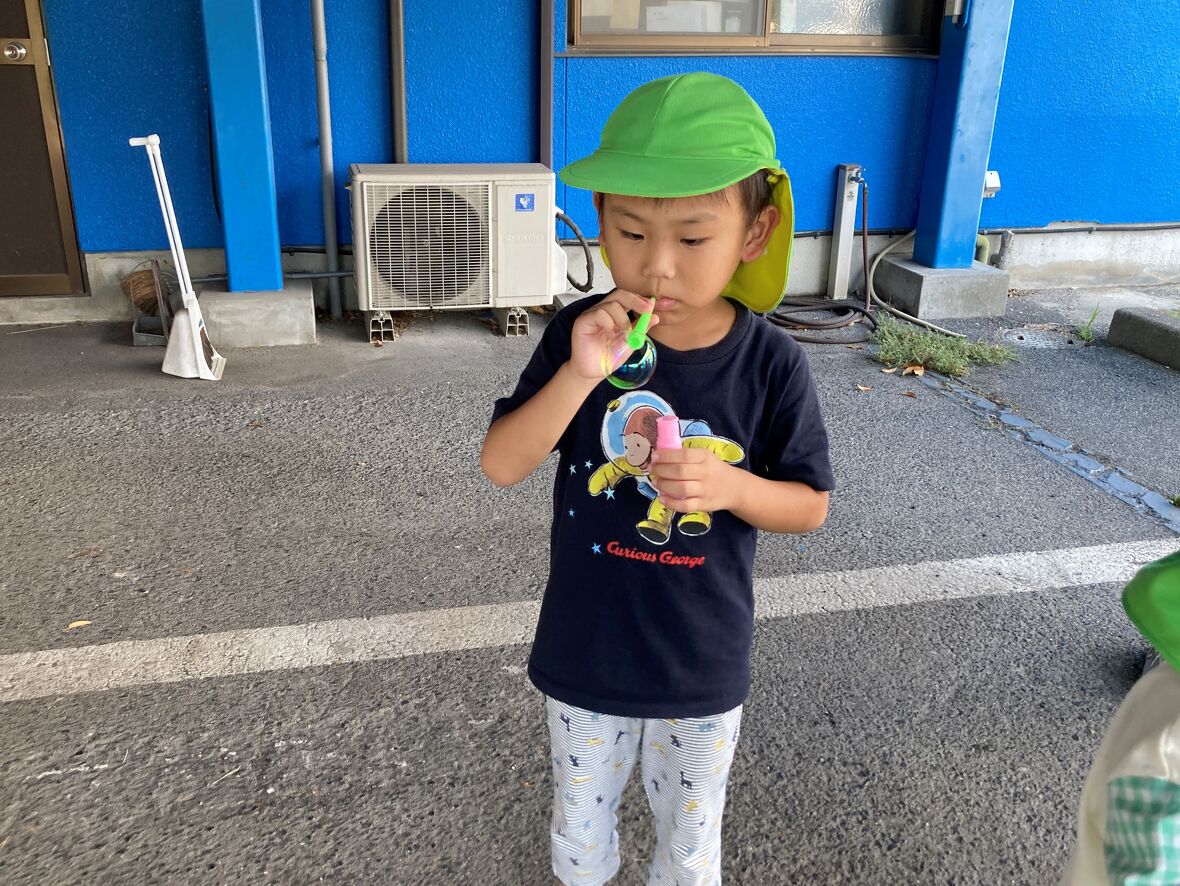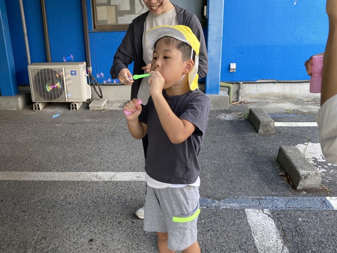 2024年09月09日(月) スタッフブログ シャボン玉とんだ~ 今日はみんなで「シャボン玉」遊びをしました!簡単な遊びに見えますが、シャボン玉を上手に吹くために、ストロー(吹き棒)以外から空気が漏れないよう唇や舌の動きを調節しています。加えて、息を吐く力加減も必要なため、管楽器の演奏と同じように呼吸や発声などの機能を高めることにもつながる大切な遊びです。なによりシャボン玉は、キラキラ輝いて子どもたちを楽しませてくれますね。 勢いよく上手にできました~ 慎重に大きいシャボン玉制作中! 連続して大きな玉ができました! これも上手にできていますね!