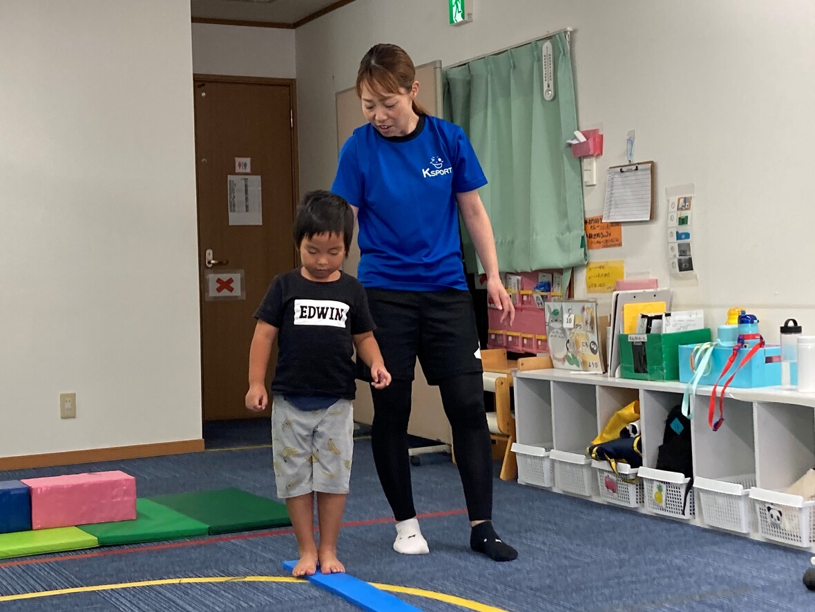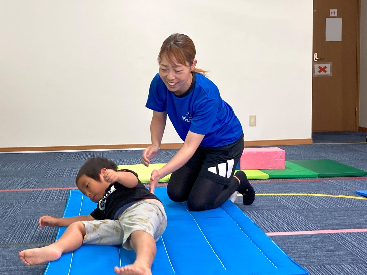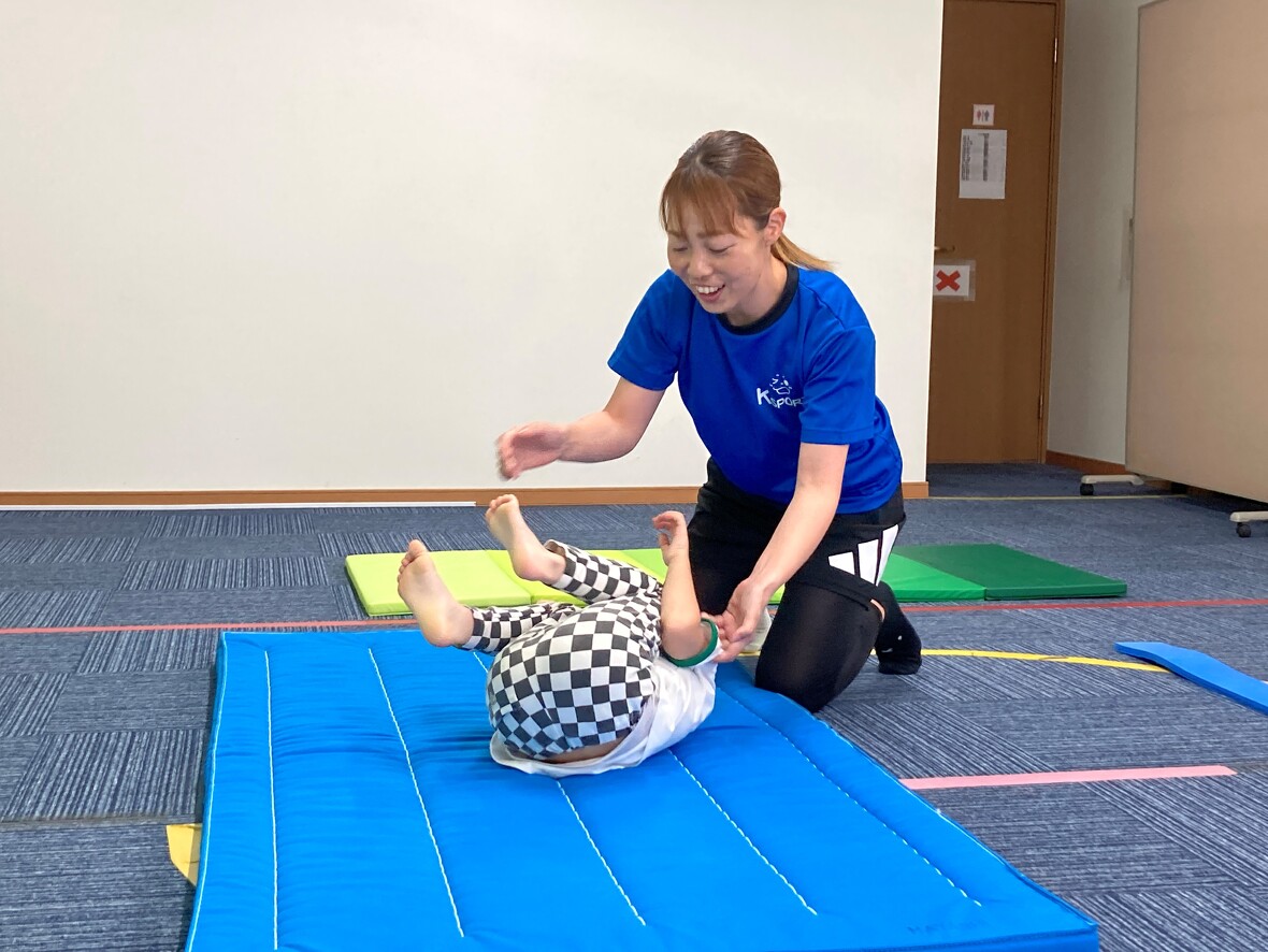 2024年10月04日(金) スタッフブログ ミポ先生とマット運動! 今日は楽しいミポ先生のマット遊び!でんぐり返しにチャレンジしました。マットの後は一本橋(高さはないのですが平均台と同じ幅)でバランスの練習!みんなよくがんばりました。 前回り~ 上手にできました! みぽ先生がついてくれるから安心! バランスとって慎重に 一本橋もへっちゃら!