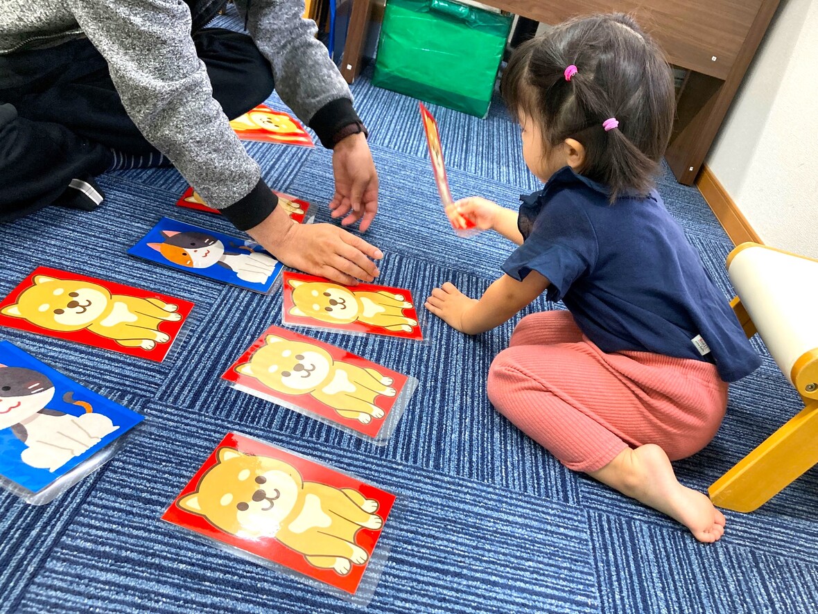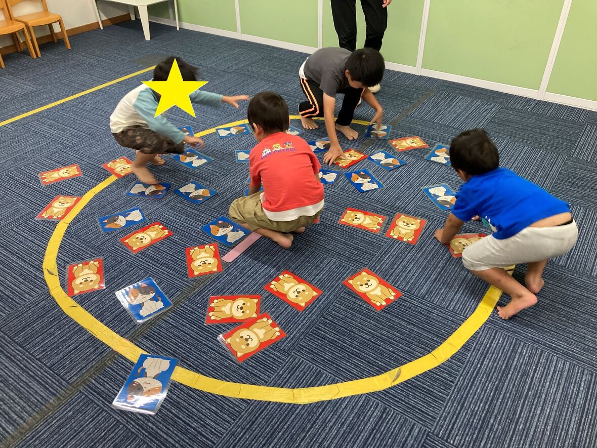 2024年10月07日(月) スタッフブログ 犬と猫どっちが多い?カードひっくり返し(オセロ)ゲーム! 今日は集団プログラムで「カードひっくり返しゲーム(HiKaRiではオセロと呼んでますが)」を楽しみました!ワンちゃんチームとネコちゃんチームの2チームに分かれ、犬と猫のイラストが表裏になっているカードをひっくり返して、自分のチームのカードを増やします!すばやい動きに加えて、瞬間の判断力も必要ですね! 午前中は先生がネコちゃん!お友だちがワンちゃん 午後がお友だちが2チームに分かれました!どちらもがんばれ!