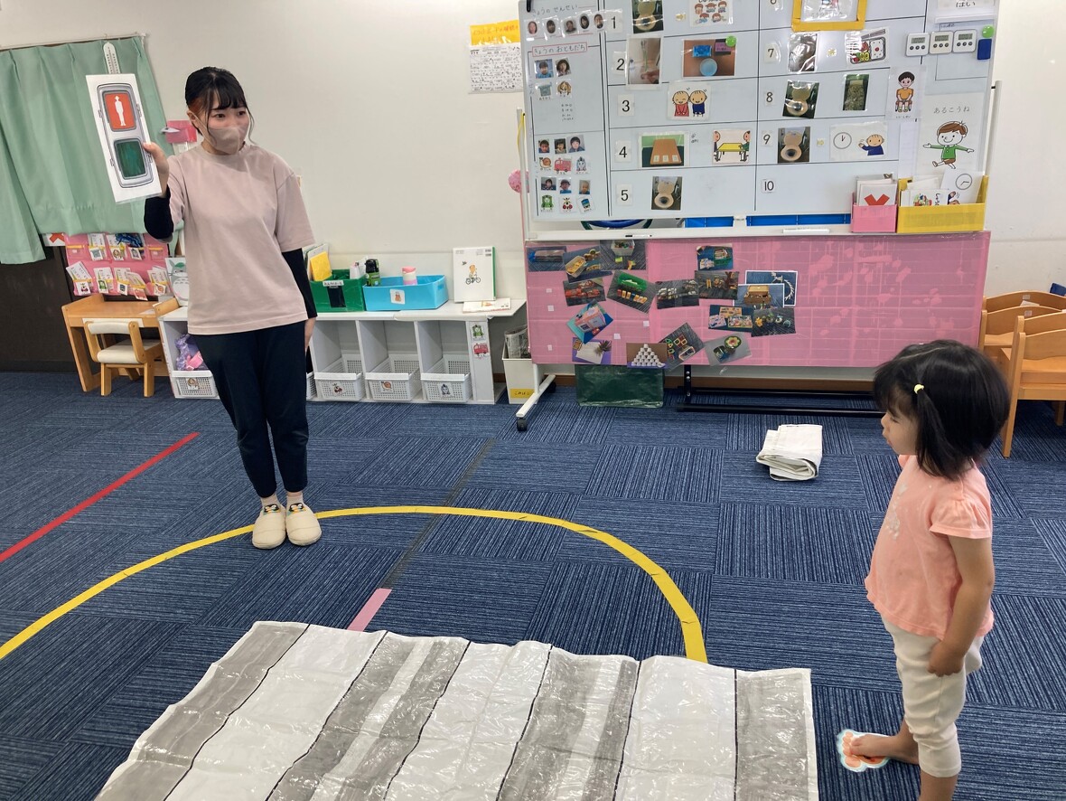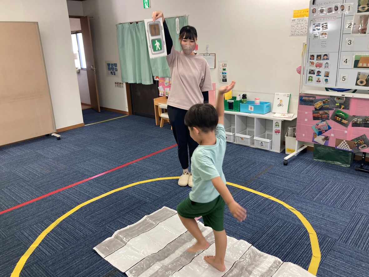 2024年10月17日(木) スタッフブログ 交通ルールのお勉強の後は、公園で楽しく遊びました! 今日はみんなで交通ルールを学びました!最初は室内で基本のお勉強をして、お出かけ!残念ながら写真に撮れなかったのですが、信号をよく見て、手をあげて横断歩道を渡ることが出来ました!終わった後は、ごほうびとして、近くの公園の遊具で楽しく遊びました! 信号をよく見て・・・ 手をあげて横断歩道を渡ります! 近くの公園のスベリ台! ラクダに乗って”楽だ”な~ ブランコもあります!
