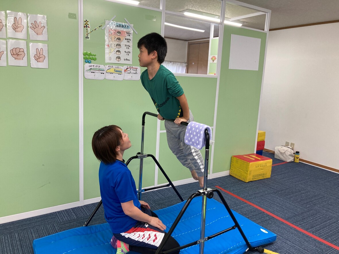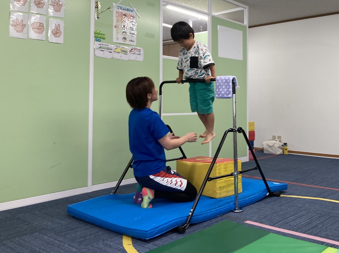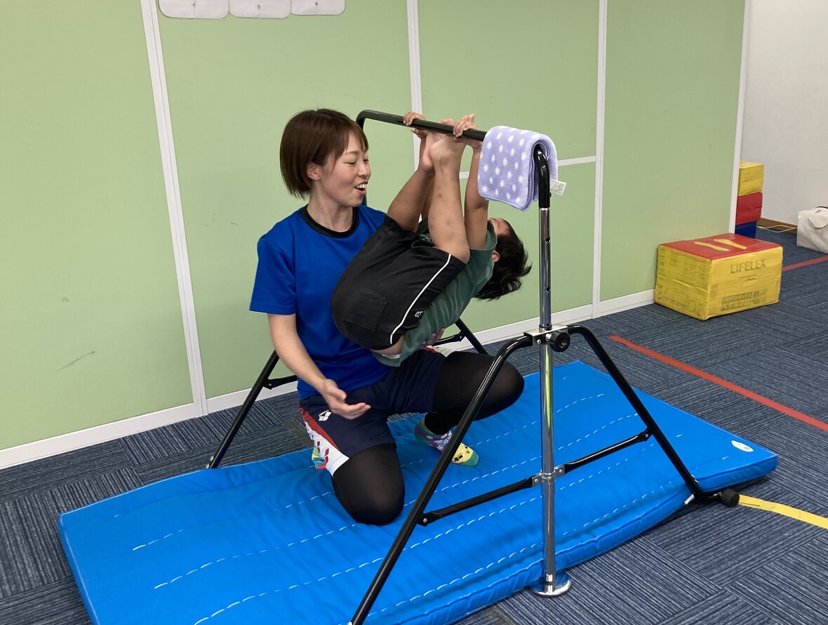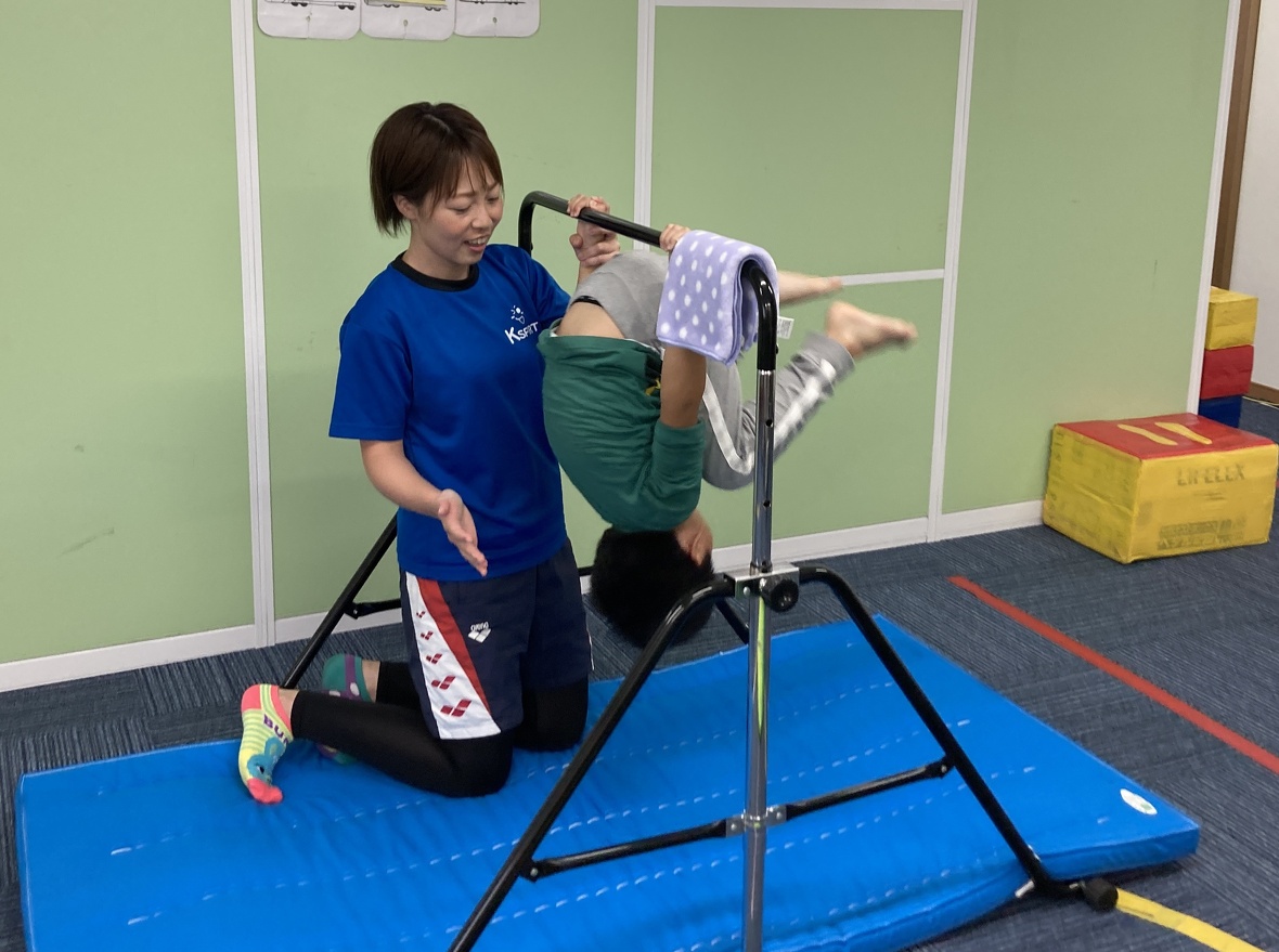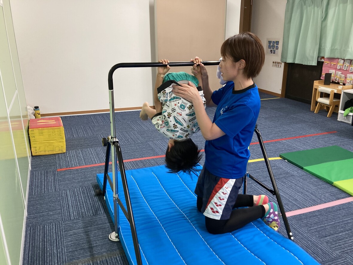 2024年10月25日(金) スタッフブログ 今日はミポ先生と鉄棒にチャレンジ! 今日はミポ先生と鉄棒でいろいろな”技”にチャレンジしました。腕の力もつき、逆さまになったり、回転したりする感覚を高めていくことができますね! まずは”足抜き回り!”ぶらさがり技のひとつです 上手に回っていますね 足が抜けるまでもう少し! ”ツバメのポーズ”にチャレンジ! 腕でしっかり支えることが大事です!
