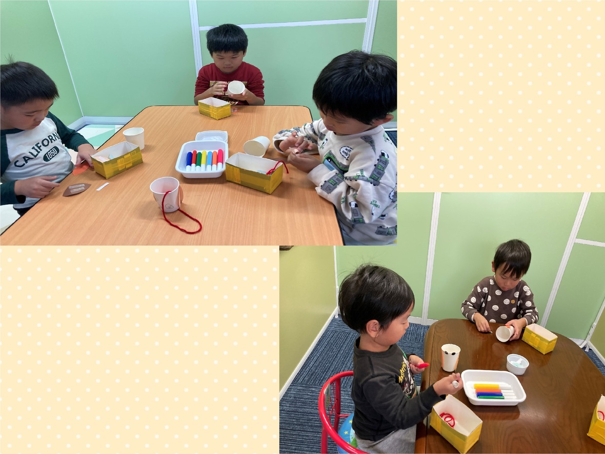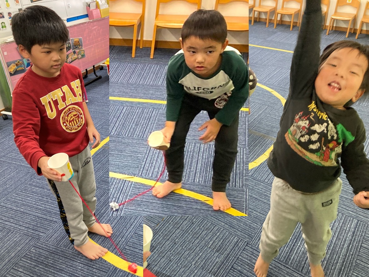 2024年11月28日(木) スタッフブログ 紙コップで「けん玉」を作りました! 今日は紙コップを使ったけん玉を作りました!紙コップにサインペンやシールで飾り付けをして、玉のついた毛糸をくっつけたらできあがり!みんなで楽しく遊びました! お気に入りの模様をつけて、毛糸をつけたらできあがり! 楽しく遊びました!