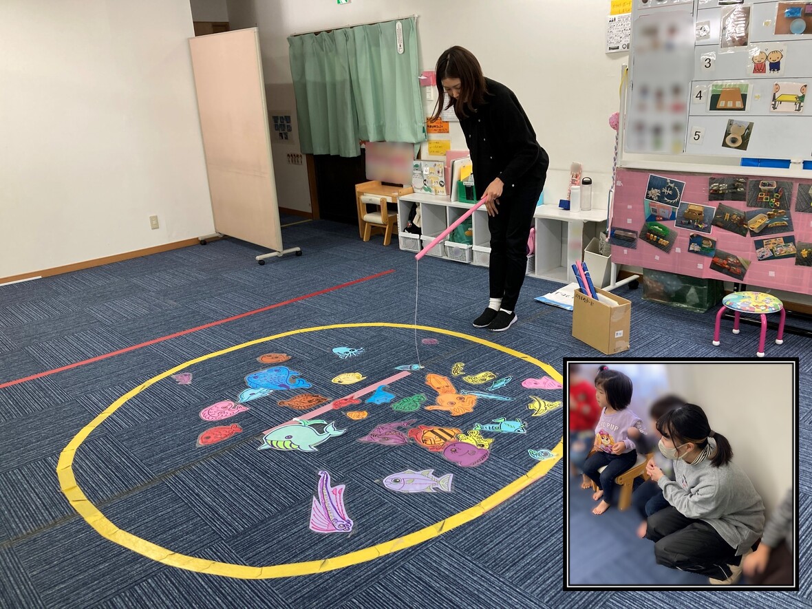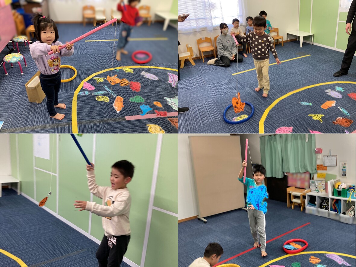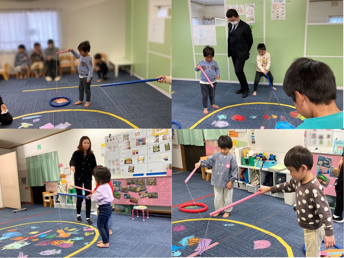 2024年12月19日(木) スタッフブログ 今日は大漁!さかな釣り! HiKaRiの部屋には、海につながっていてお魚がたくさんいる不思議な池があります!今日はその池で楽しくさかな釣り!さあ目指せ!大漁! まずは先生がお手本を見せてくれました!みんなできるかな? 釣り糸の先に磁石のついた釣り竿を使って・・・ カメさんやタコさん、エンゼルフィッシュも? 大物もどんどんゲットだぜ!