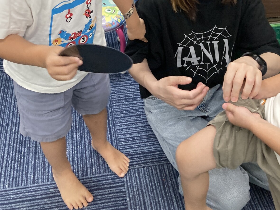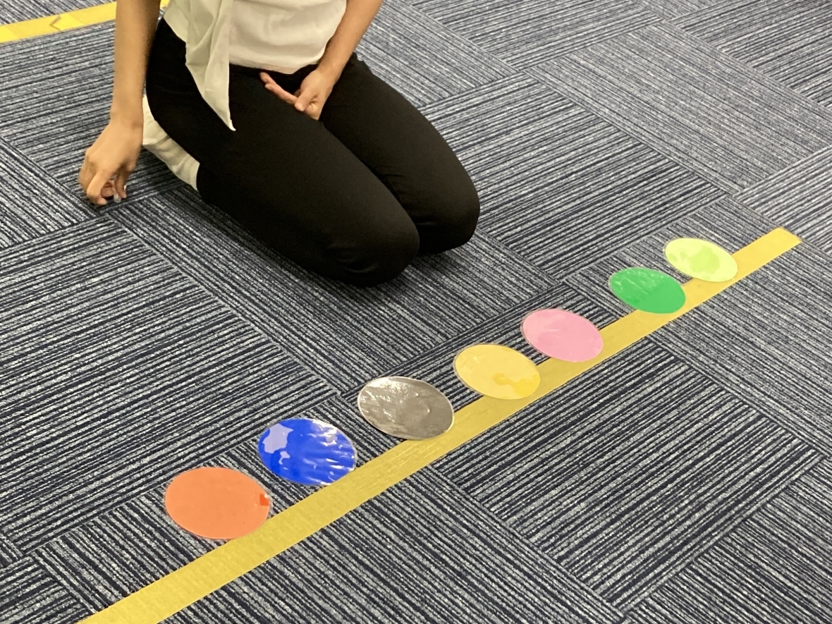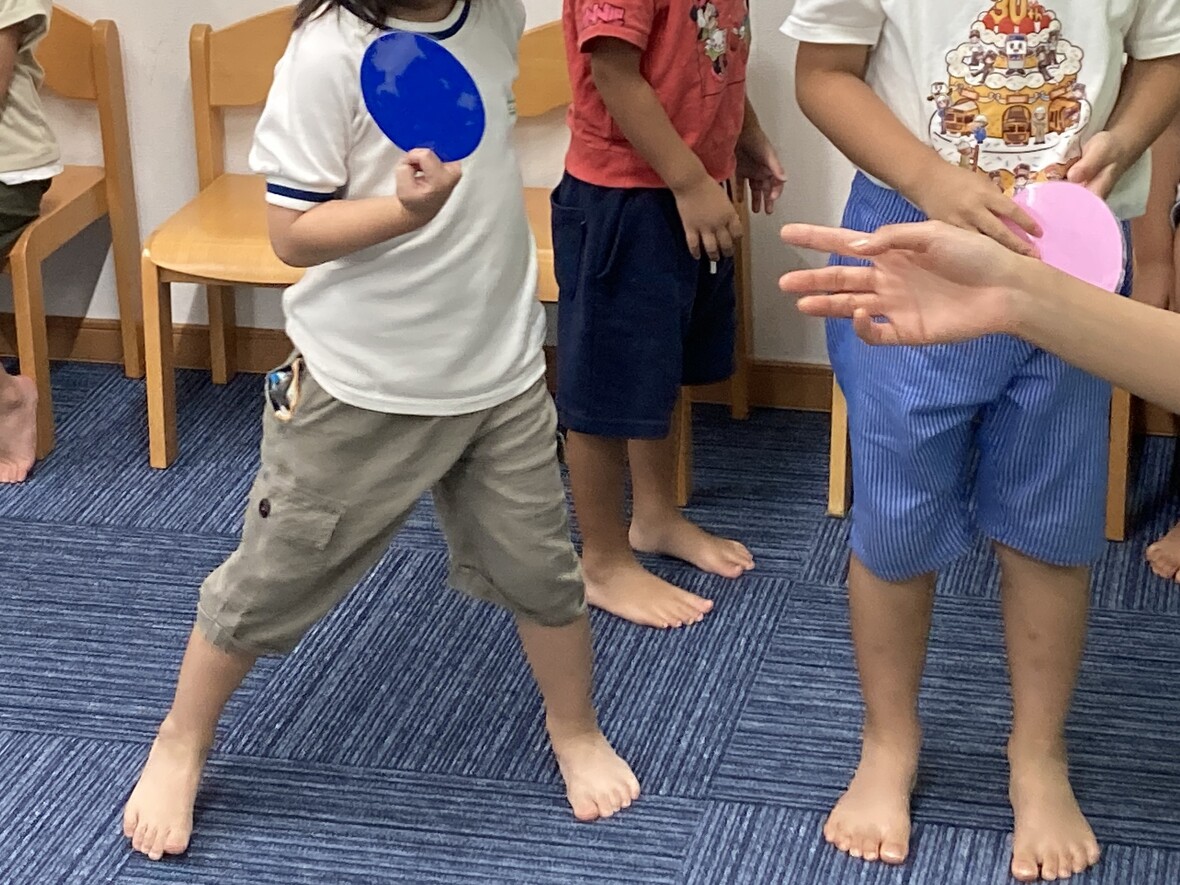 今日はお部屋の中で、色探しゲームをしたよ!まずは、みんなで色の名前やルールを聞いた後は、一人ずつ順番に色カードと同じ色の物を探します。いつも過ごしているお部屋だけど、よくよく探さないとなかなか見つからないなぁ~。あ!あんなところにあった!ここにもある!見つけたらお友だちの前で発表したよ。お部屋においてあるものだけでなく、お友だちや先生をよく見ると身に着けているものにたくさんの色が使われているね!いつもは見ていなかったような避難誘導灯も実は緑色が隠れていたみたい(゜o゜)じっくり周りを見ると、いろんな発見に繋がって面白いね☆