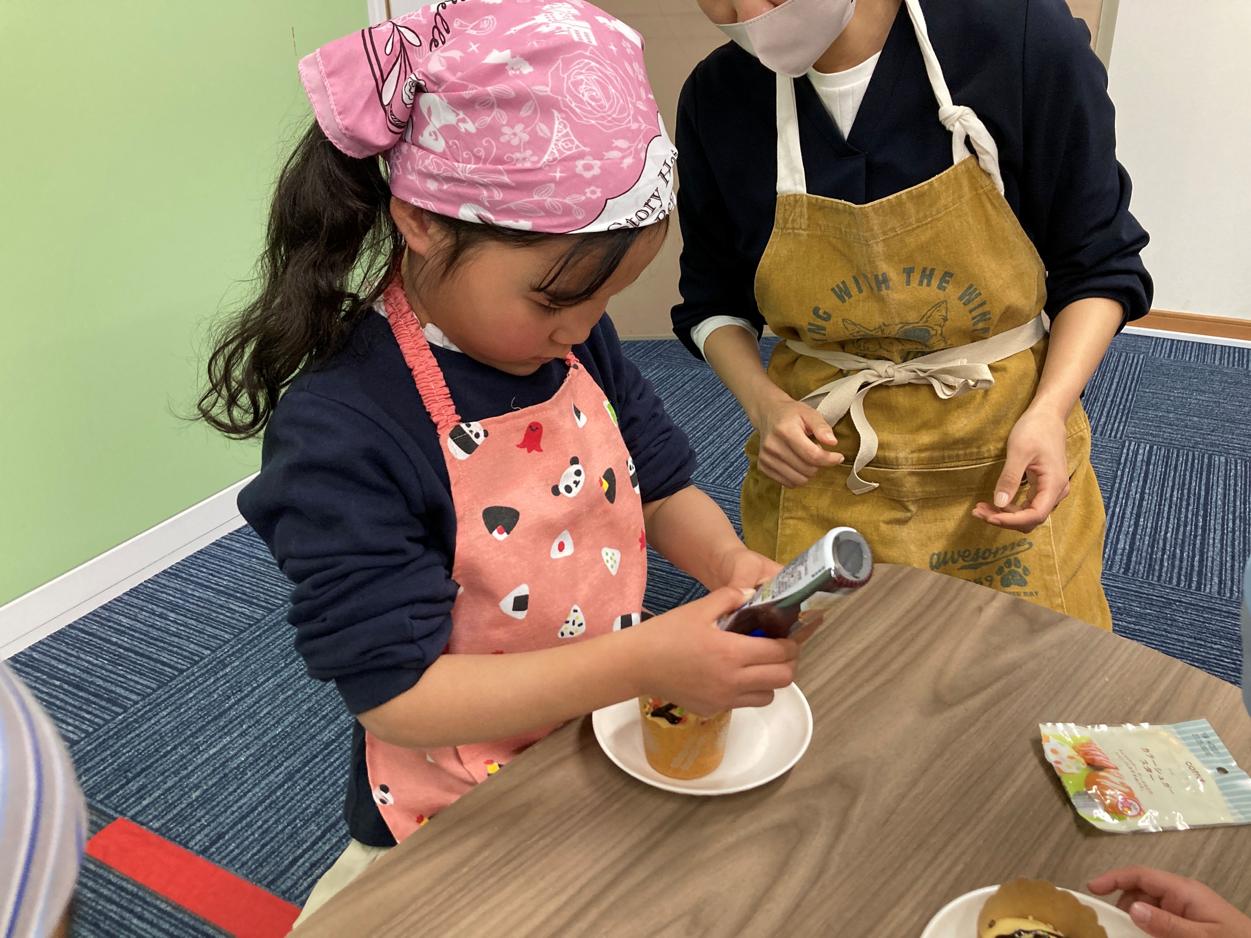 焼き上がったらチョコスプレーやチョコソース、ホイップクリームなどを自由にトッピングして完成(^^♪