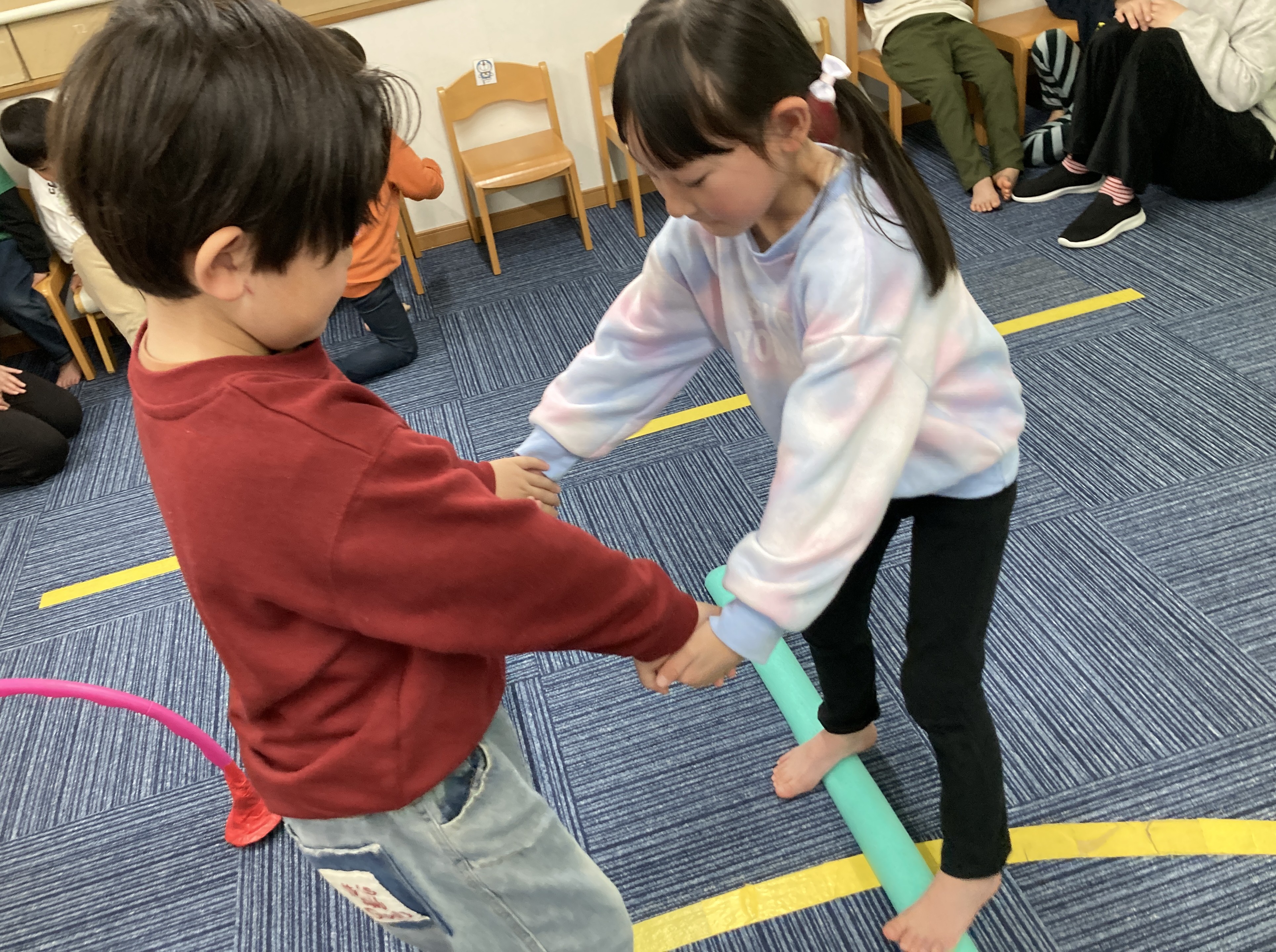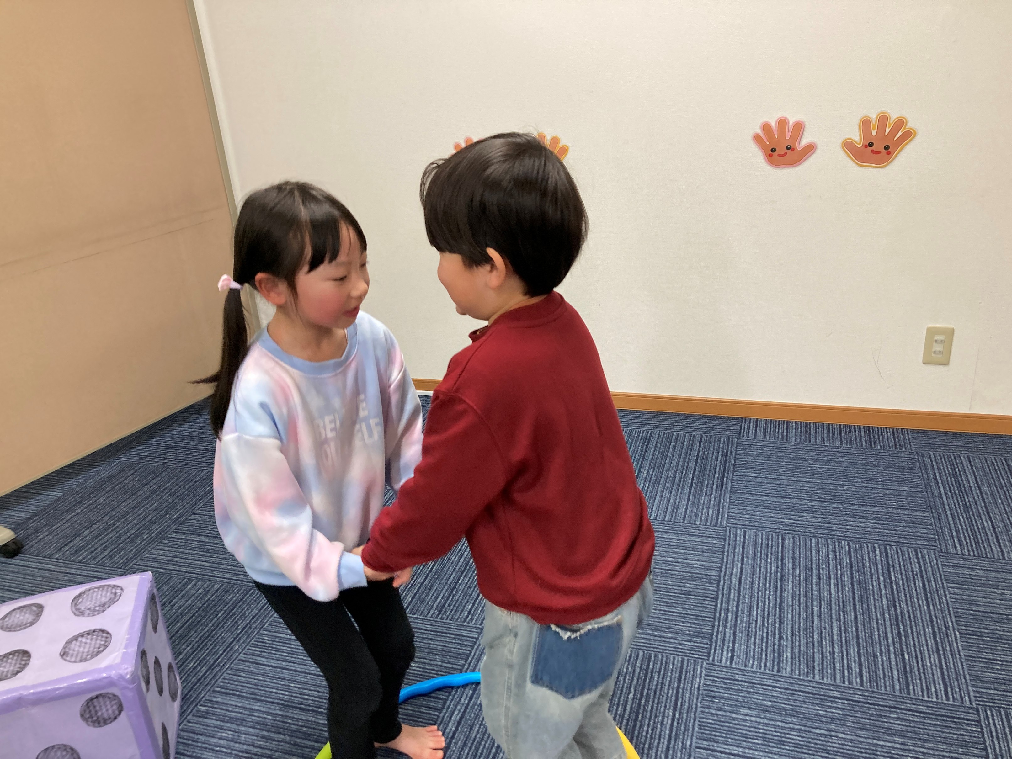 2026年02月25日(水) スタッフブログ サーキット遊びを楽しもう!! 今日はサーキット遊びの日(/・ω・)/お友だちとペアになってたくさん体をうごかしたよ! まずは先生のおはなしをよく聞いて、お手本をみたらペアになってチャレンジ☆ 手をつないで落ちないようにカニ歩き✄ サイコロをなげるよ( `ー´)ノ サイコロの出た目の数ジャンプ! リングの中をジャンプ☆ たくさんジャンプしたからすこし疲れたけどみんなで応援しあってたのしかったよ(^_^)v またつぎのサーキットがたのしみだな~♪