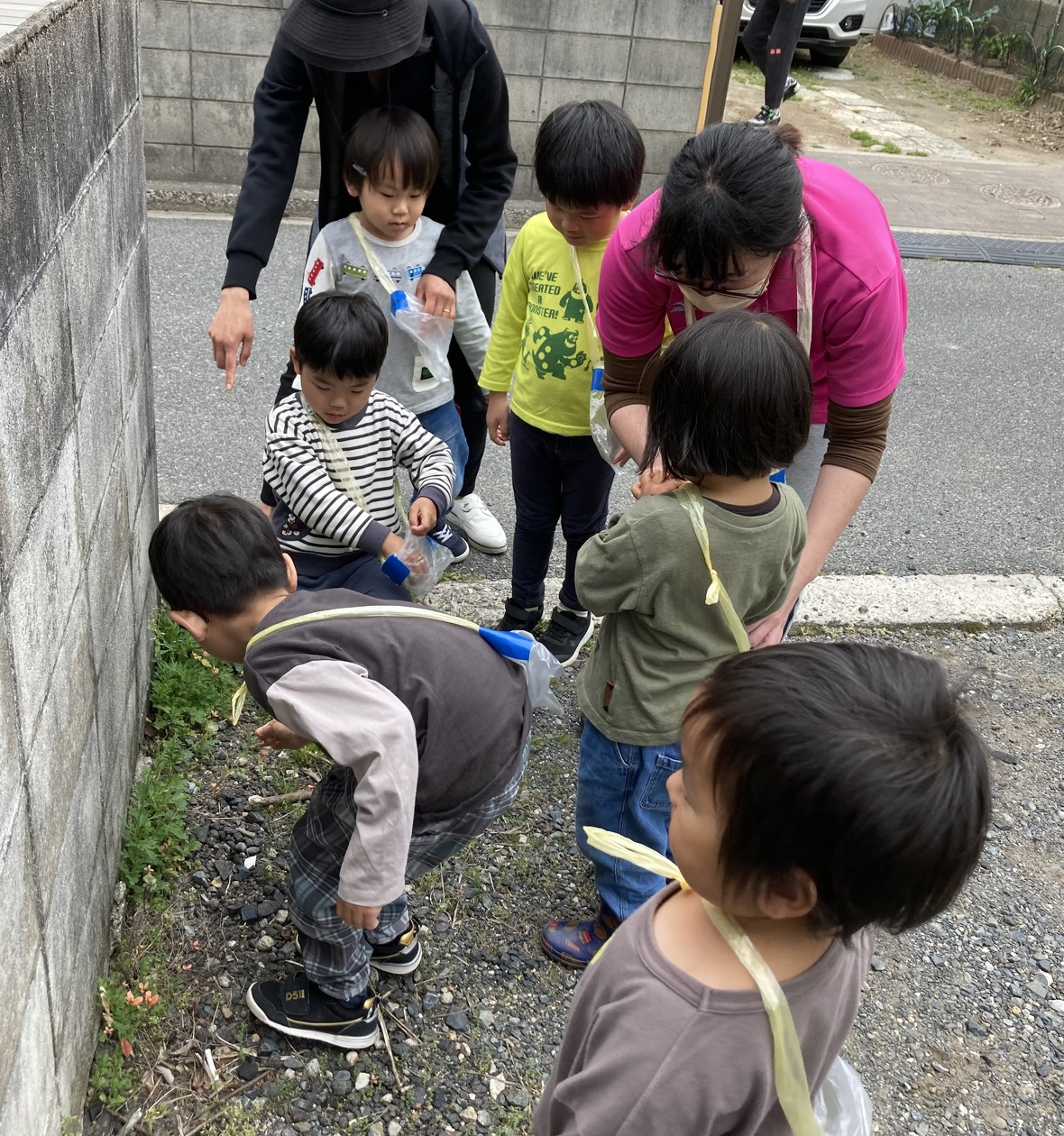 2023年04月14日(金) スタッフブログ 春見つけのお散歩に行ったよ! 今日は春の草花を見つけにお散歩に出かけました。 1人ずつお散歩バックを肩にかけ、意気揚々と歩きます。 『あっ、タンポポのわたげ!』『この草、なに?』の声。 お散歩バックに摘んだ草花を嬉しそうに入れる姿が とてもかわいらしかったです♪