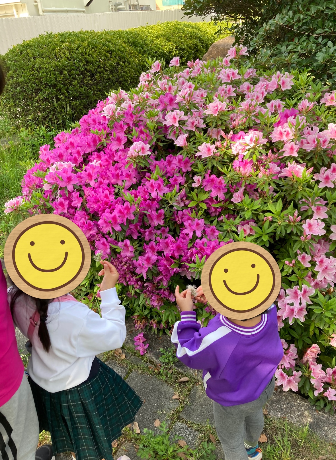 2023年04月18日(火) スタッフブログ 春、みつけたよ! 『いってきま~す!』と、元気に出かけた子ども達。 春の図鑑を手に意気揚々と歩きます。 いろんな花を観察しながら歩くと、いつもの散歩道も 違って見えます。 満開のツツジに大喜びでした!