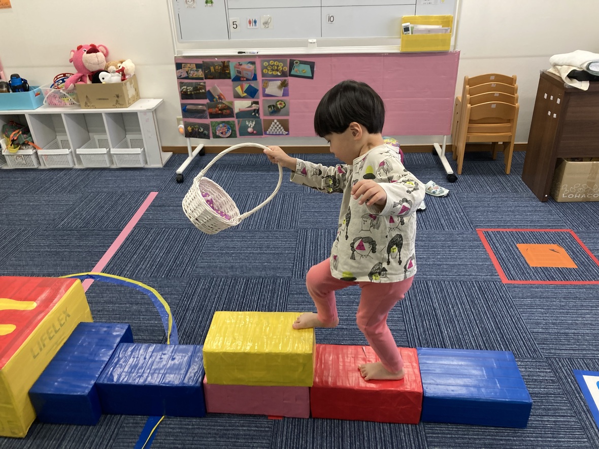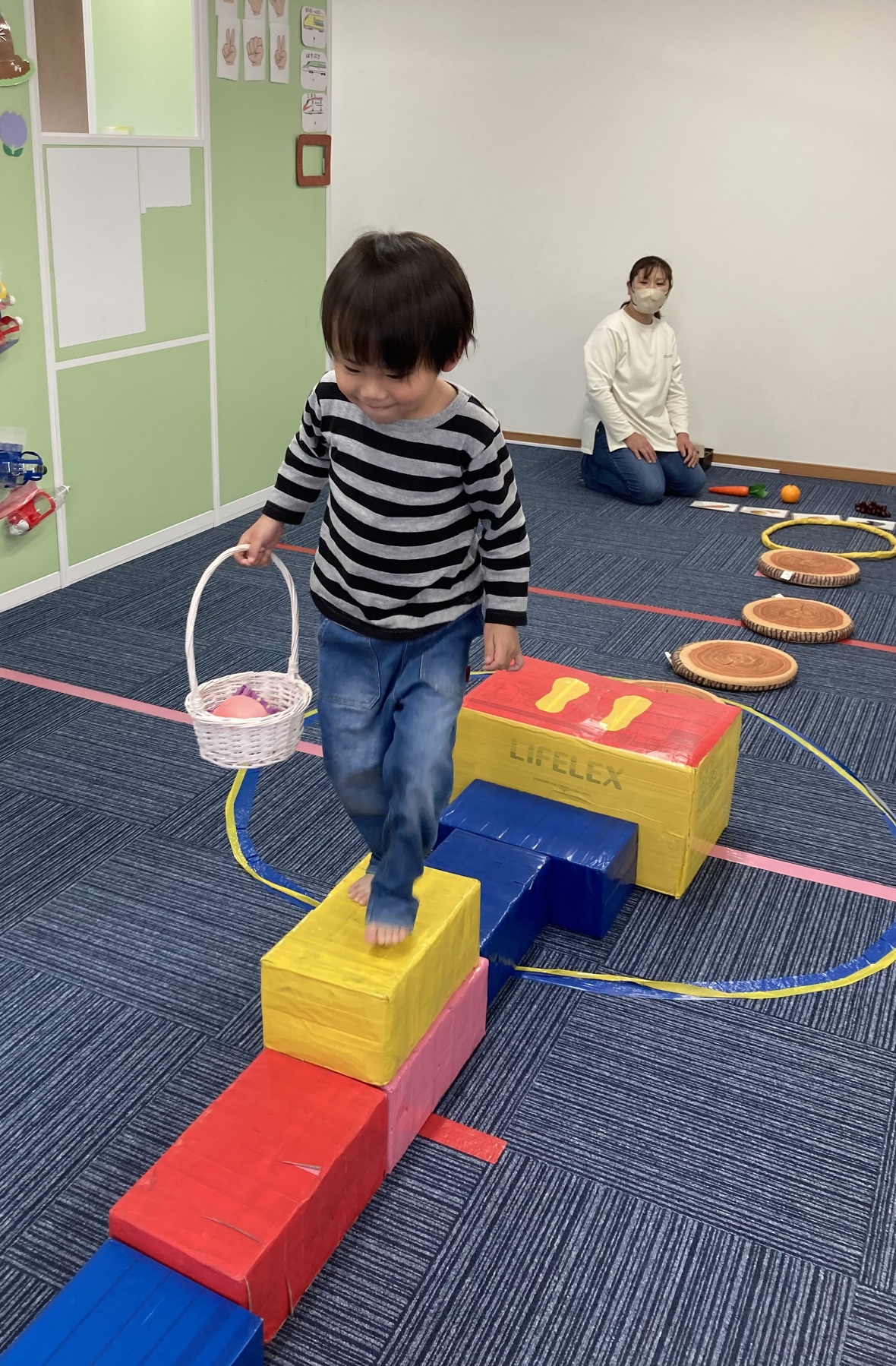 2023年04月27日(木) スタッフブログ お買い物遊びとお散歩へ! サーキット遊びでは、かごを持ってお買い物へ。 難しい一本橋と、飛び石ジャンプの先にある果物屋さんを 目指します。 足元を確認しながら進み、お店ではお名前と買いたいものを伝え、 お買い物成功! 先生の『○○買ってきて』というおつかいも頑張りました! お天気が良かったのでお散歩にも出かけました☆