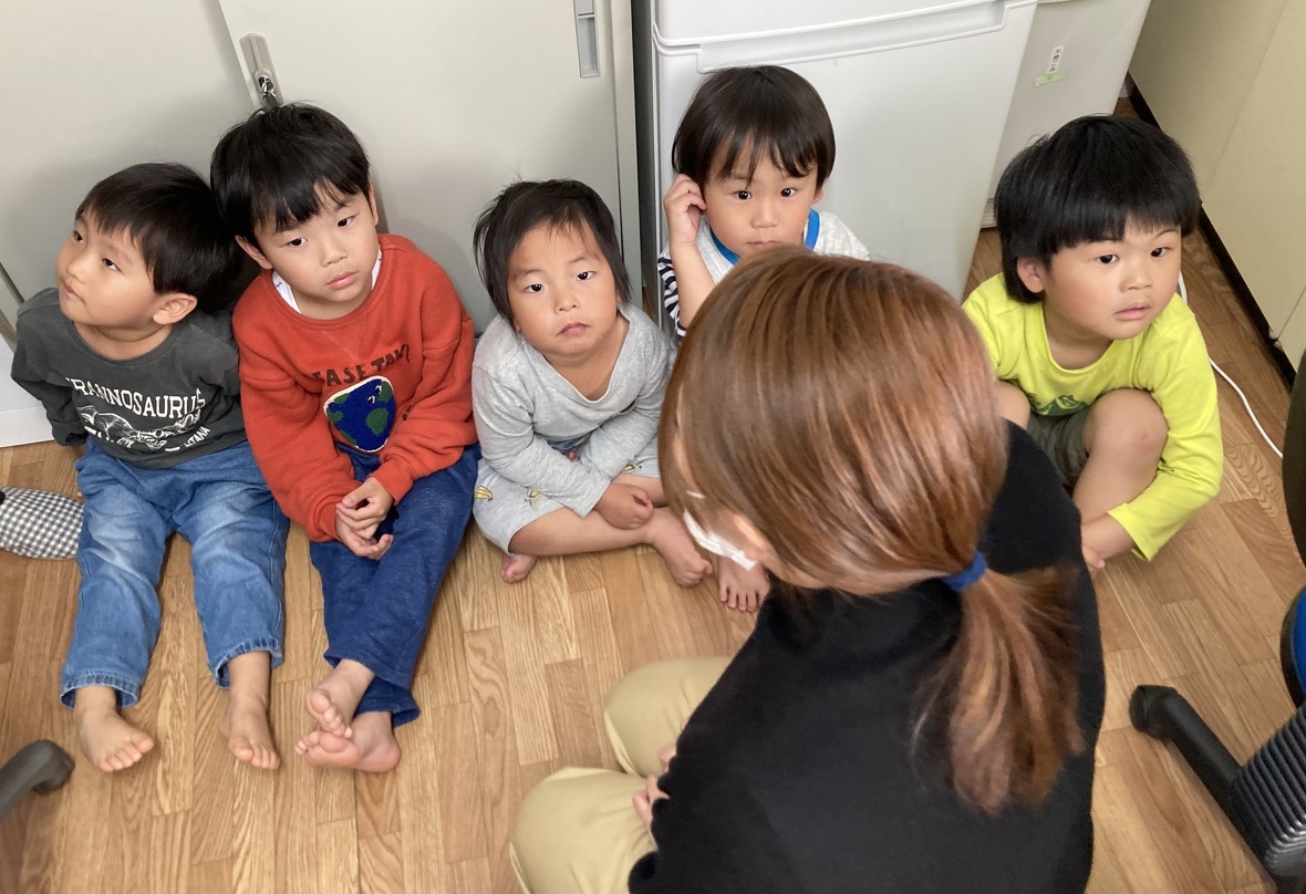 2023年05月08日(月) スタッフブログ 風害の避難訓練をしたよ☆ 今日は風害の避難訓練をしました。 先生のお話を聞く姿も真剣! 実演を見ながら風害の怖さ・避難方法などを学び、 実際に避難したり、停電した時の対処方法を教えてもらいました。 『水がいっぱいだったら高いところに行く』『静かにする』など、 しっかり覚えた子ども達でした!