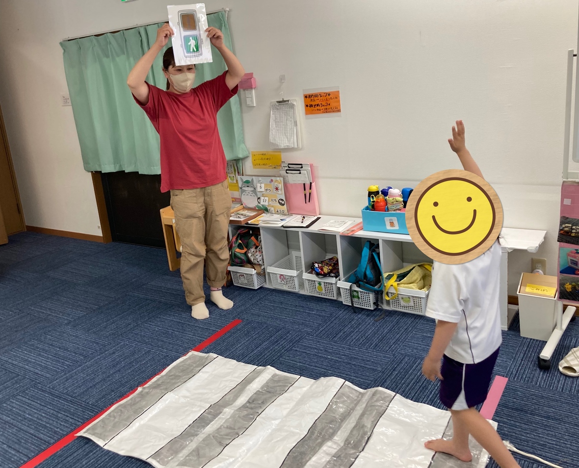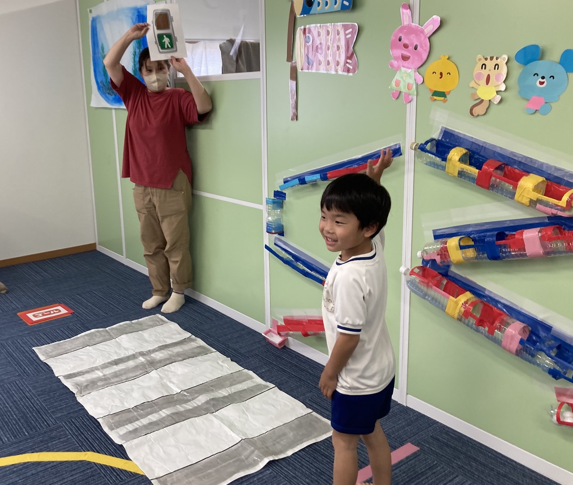 2023年05月17日(水) スタッフブログ 交通ルールのお勉強をしたよ! 今日は交通ルールを学びました。 交通ルールに関する紙芝居を真剣に見た子ども達。 信号や踏切の渡り方についてのお話もよく聞き、先生のお手本もしっかり見て覚え、 いざ、チャレンジ! 信号前ではきちんと止まり、信号が変わるのを確認! 線路も遮断機があがるまで待ち、 ゆっくり渡りました。 一人で挑戦したことで、やり切った達成感の笑顔は最高でした。 これからも引き続き取り組み、もっと自信に繋がるよう関わっていきたいと思います。