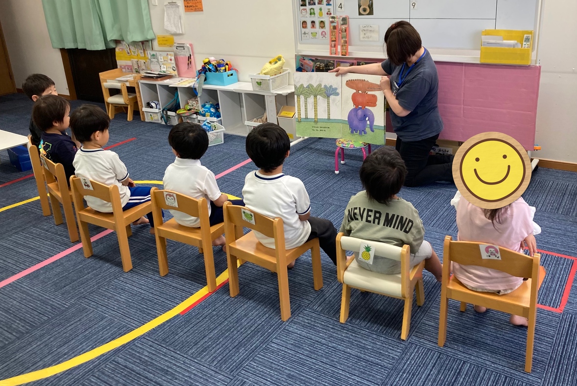 大型絵本が出てくると、自然と集まり、集中してみる子ども達!!