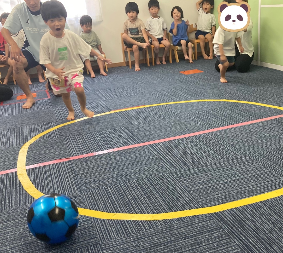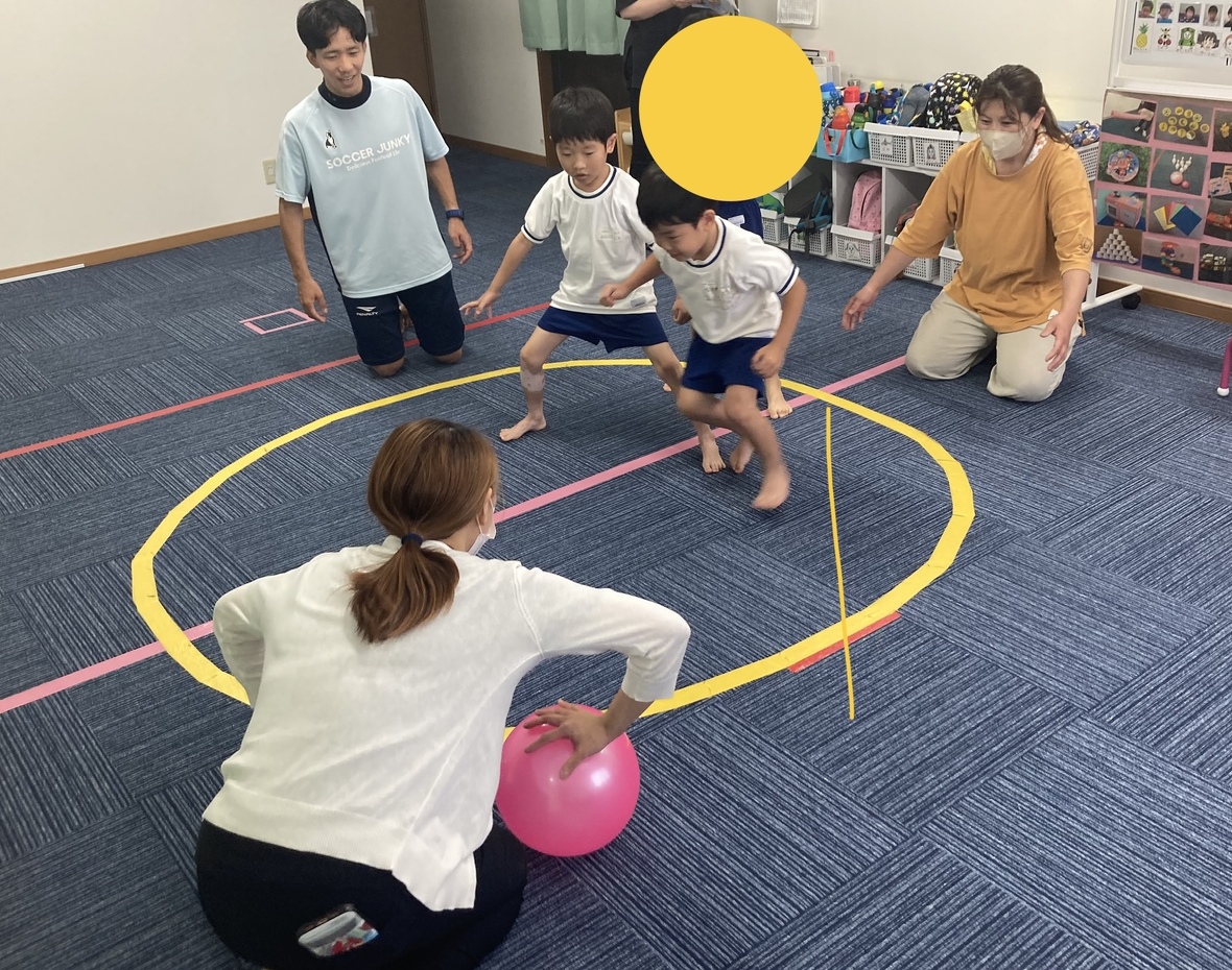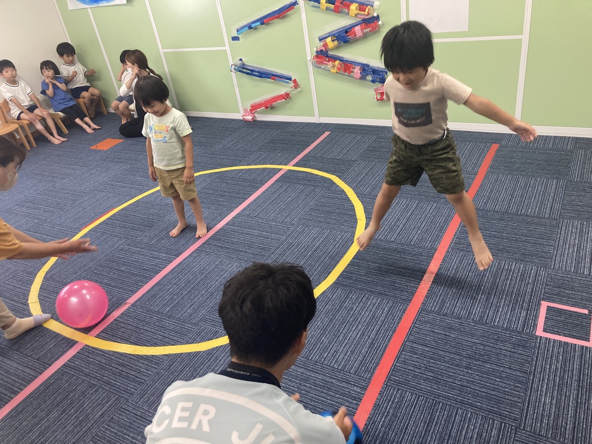 2023年06月23日(金) スタッフブログ ボール遊びをしたよ☆ 今日はたか先生とボールを使っての運動遊びの日! ボールに当たらないように逃げたり、ボールを追いかけたり、ジャンプしてボールを避けたりとルールのある遊びをたくさんしました。 自分の番の時は全身を使って楽しみ、お友だちが頑張っているときは応援。 先生のお話をしっかり聞き、ボール遊びを満喫することができました。 たか先生との運動は子ども達の大好きな時間です!!
