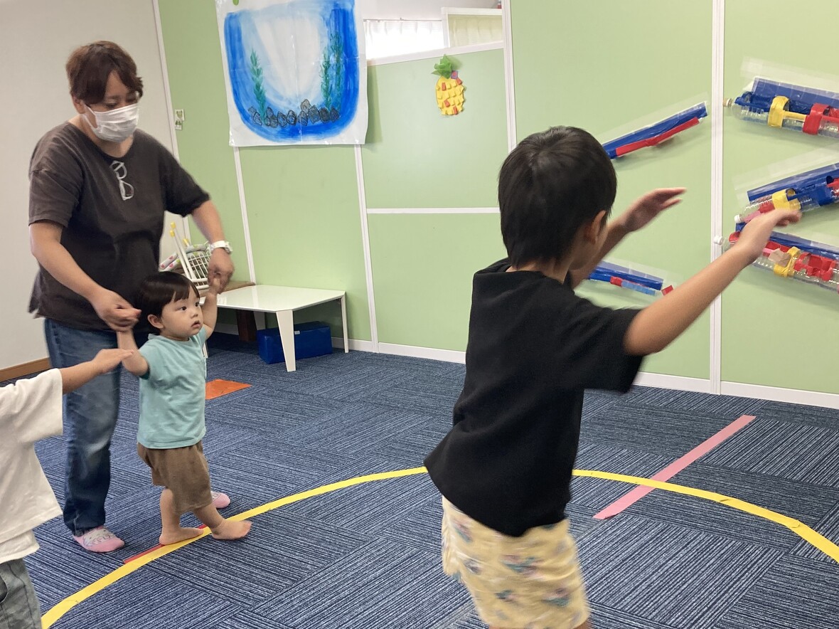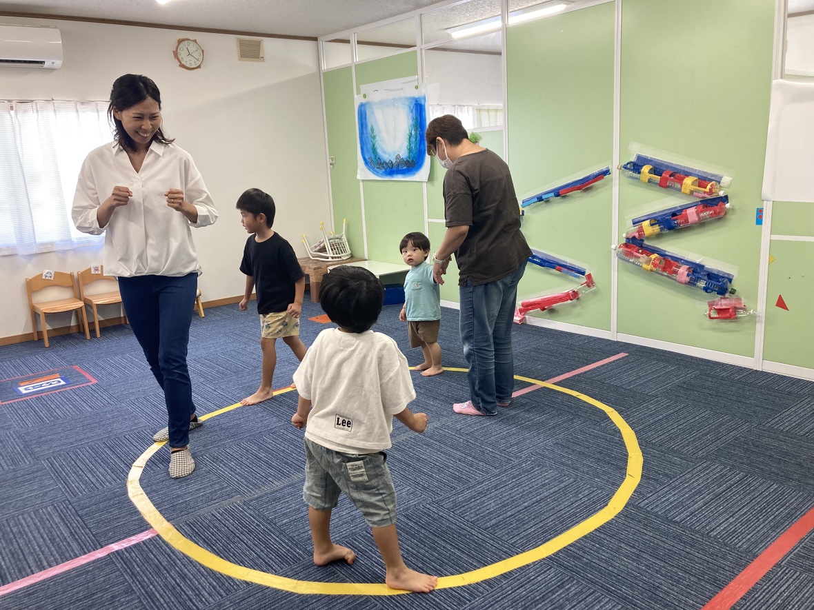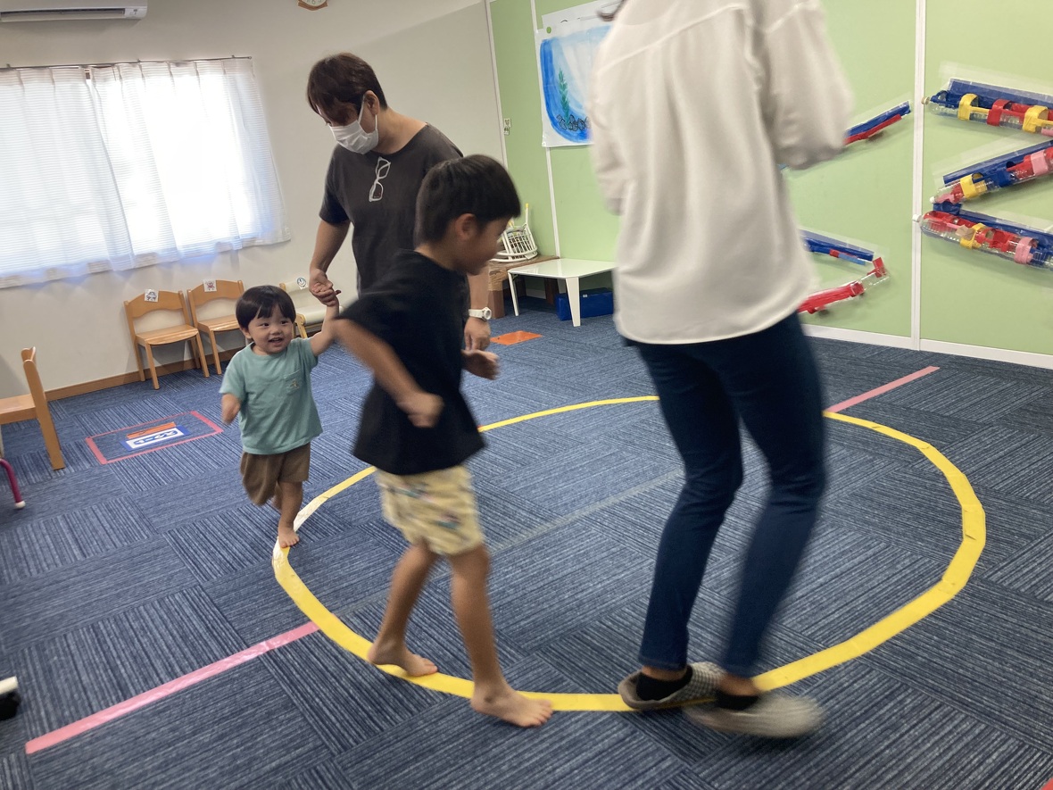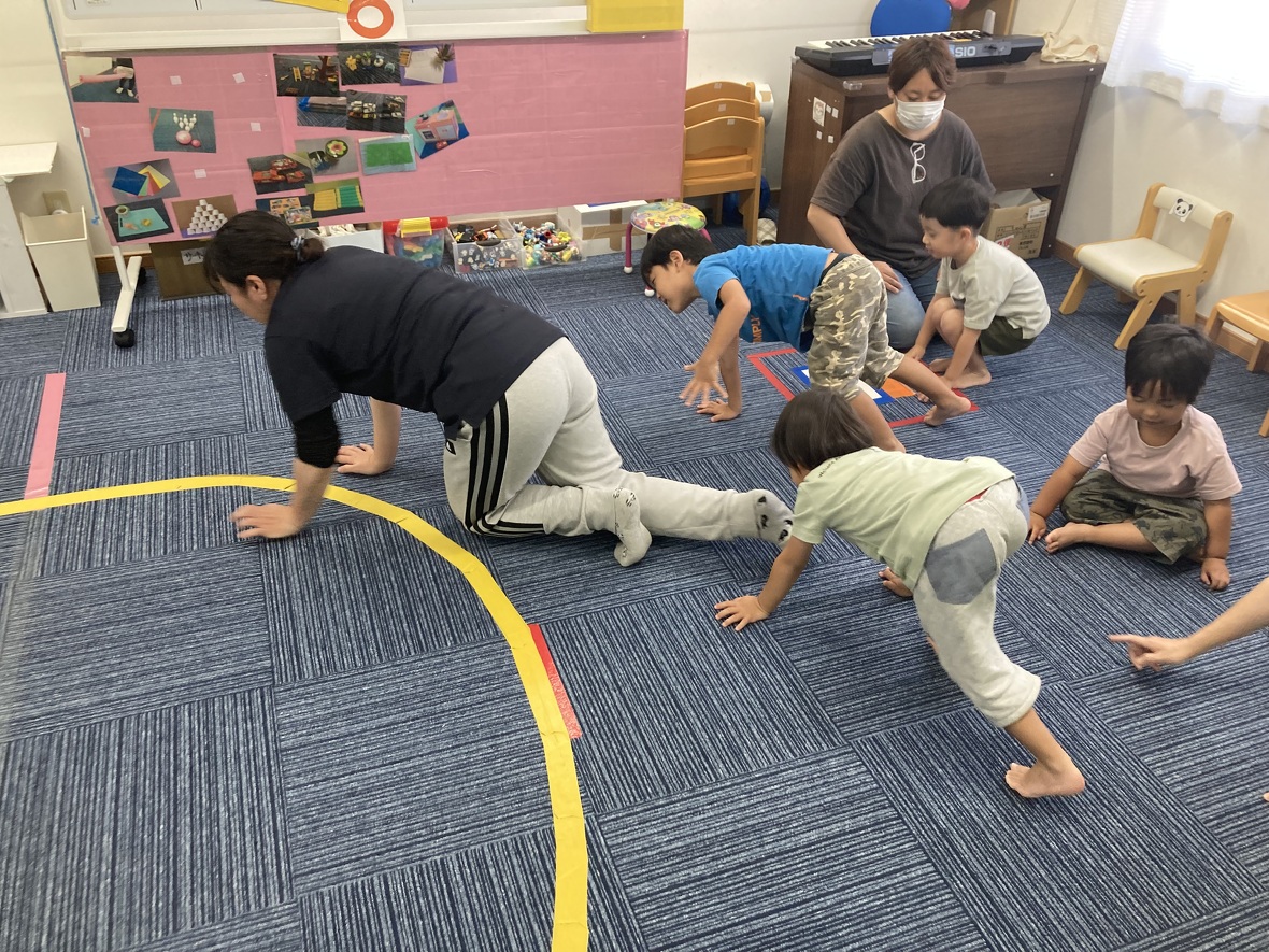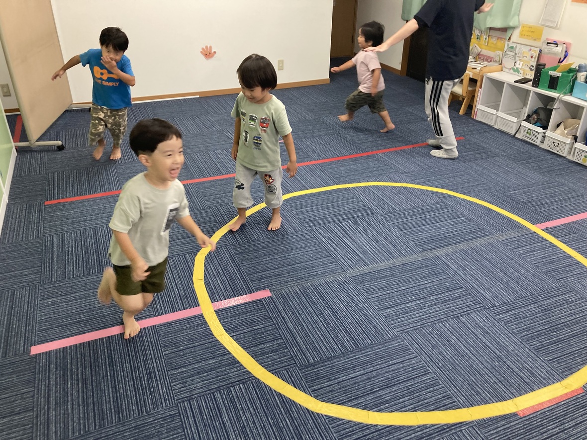 暑さに負けず、子どもは元気いっぱいです。今日もみんなで一緒に楽しく体を動かしました。