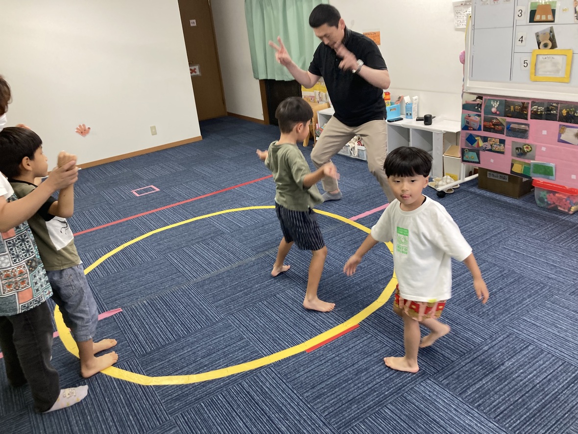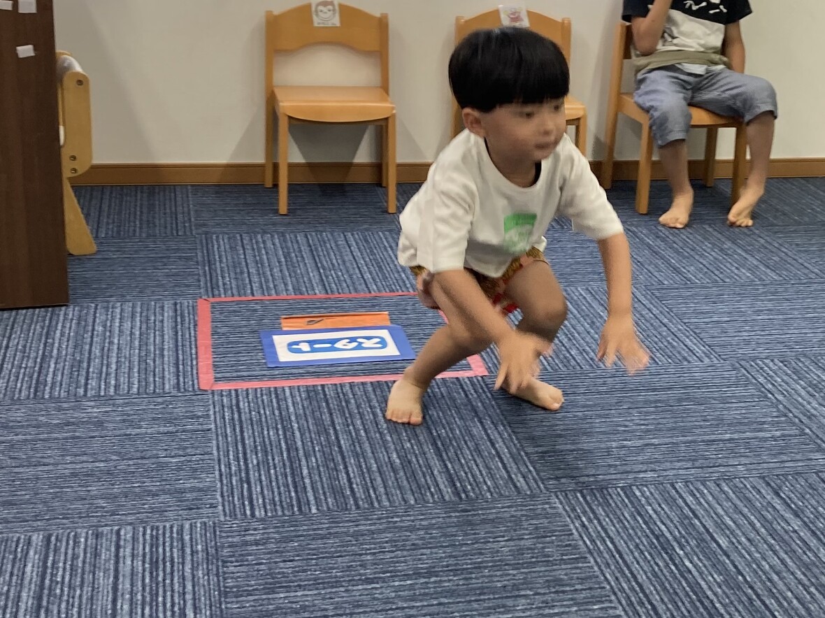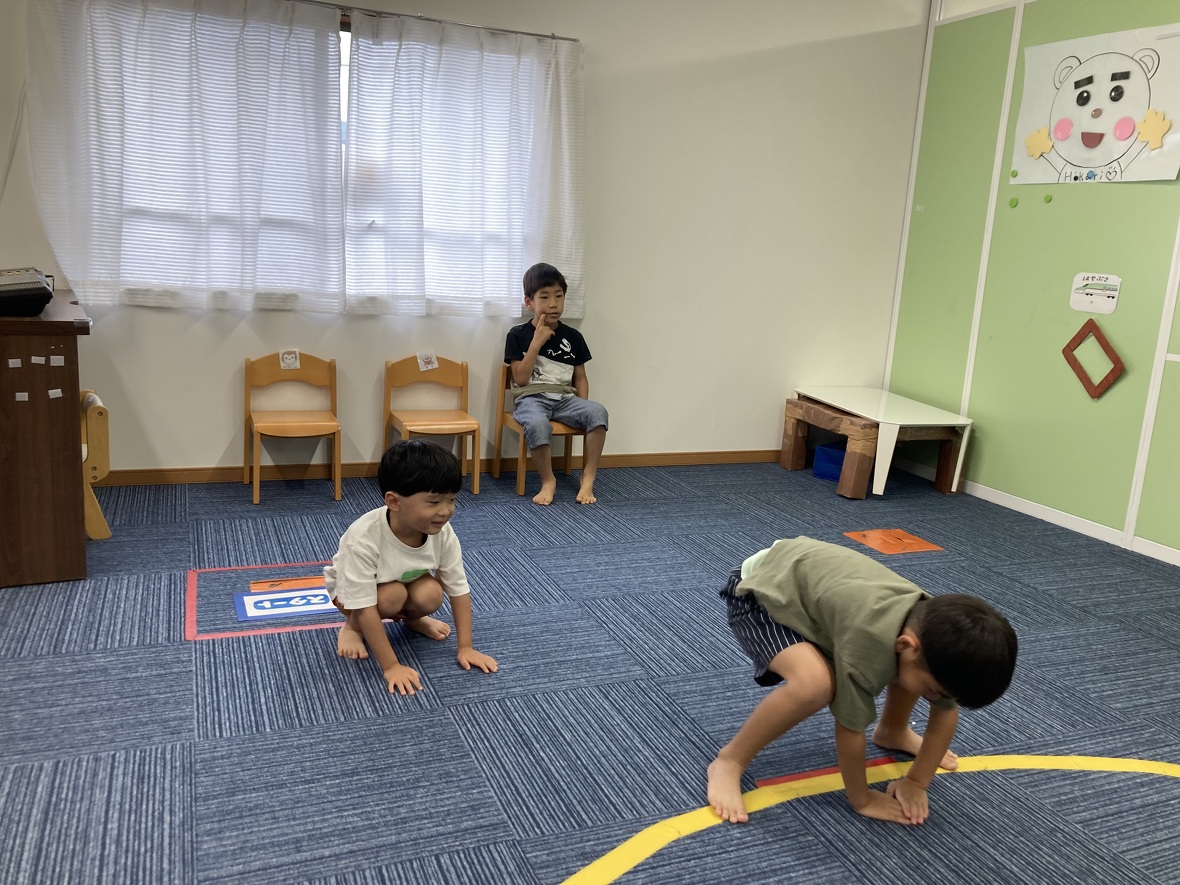 2023年08月10日(木) スタッフブログ カエルにドングリ!!エビやカニにもなりました♬ 今日はリトミック♪の日!!音楽に合わせていろいろな生き物になって、体を動かしました。 最初はカエル!! すごーいジャンプ 上手にカエルに変身!!! どんぐりコロコロ こっちもコロコロ エビ!カニ!クス???