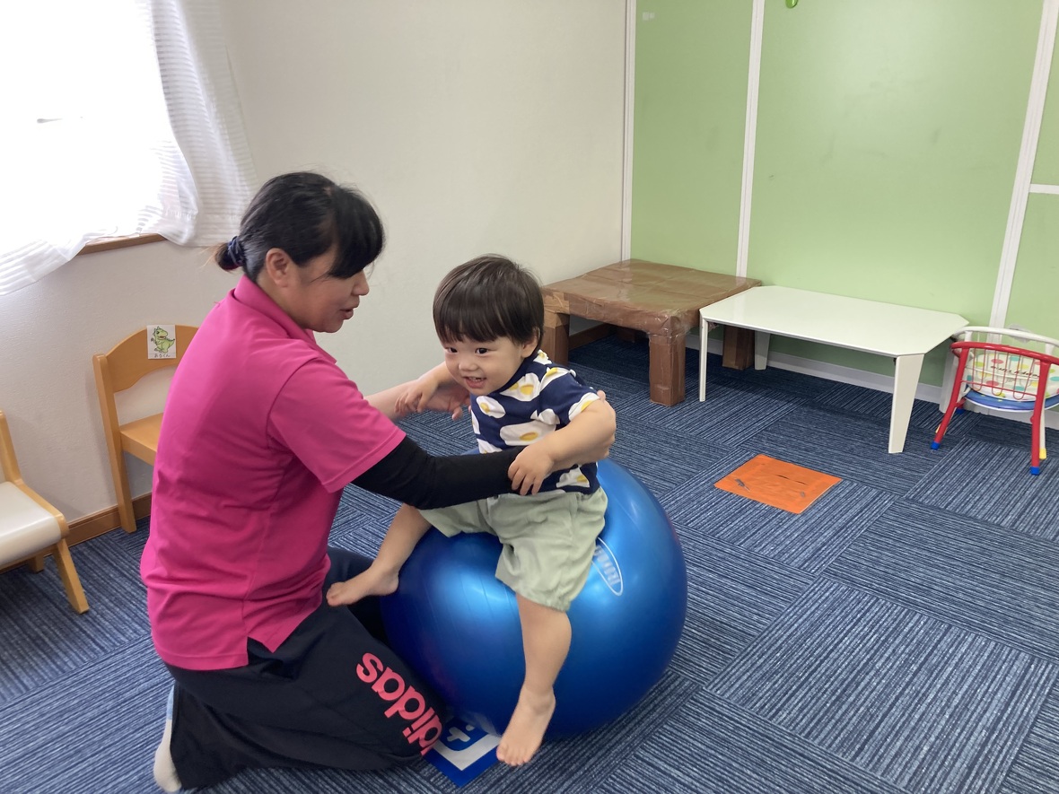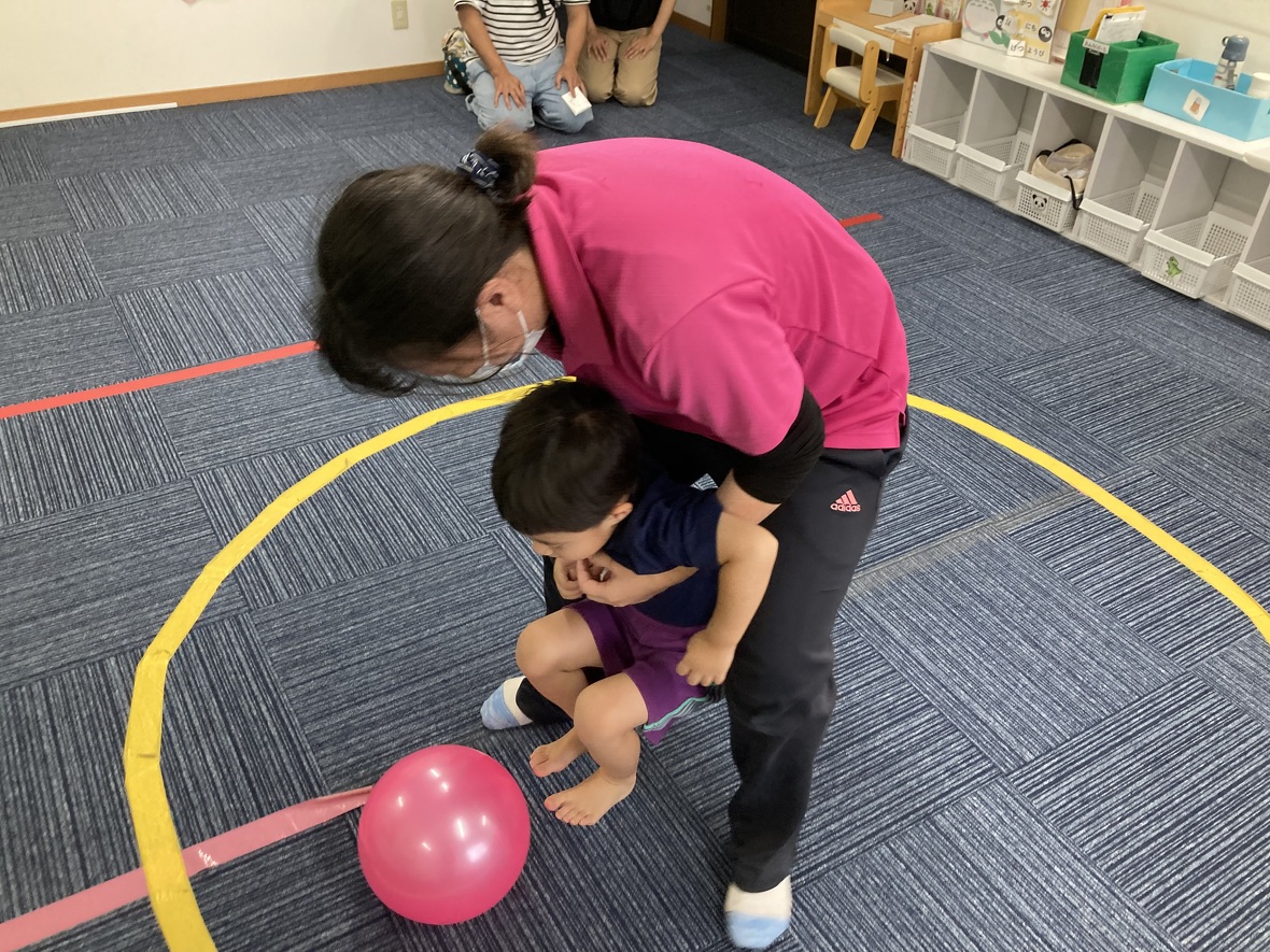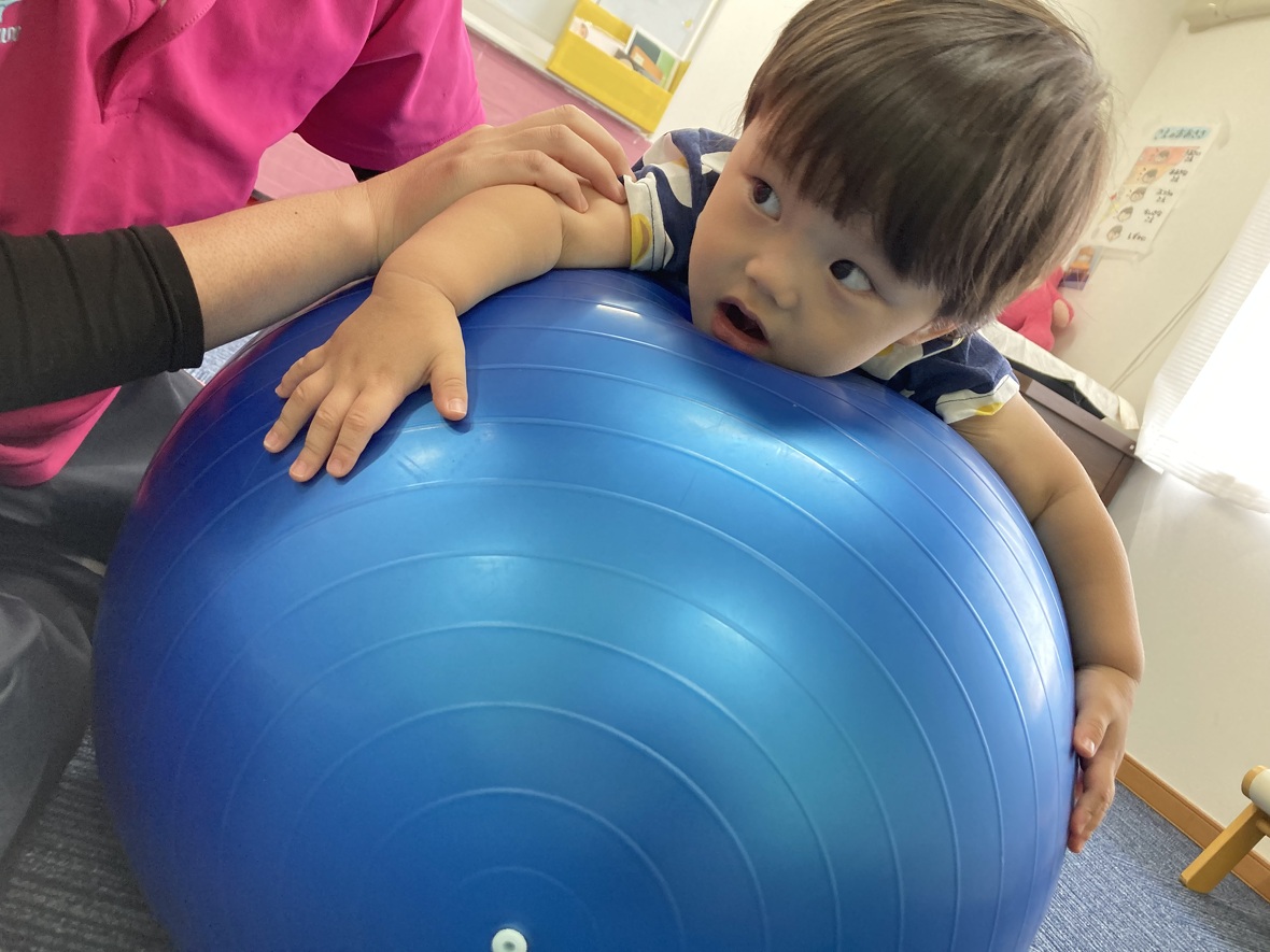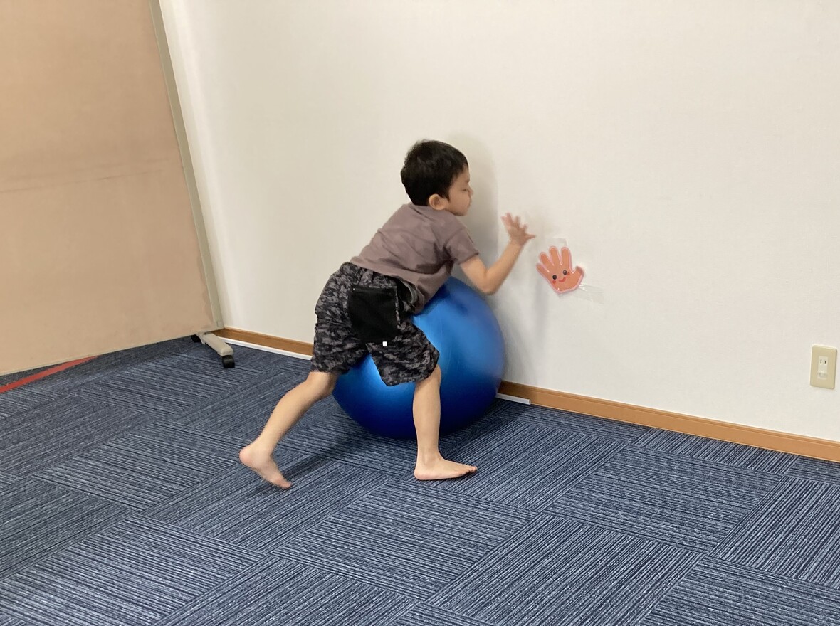 2023年08月14日(月) スタッフブログ ボールを使ってバランス遊び!! 今日は大きなボールを使って、バランスの練習☆ちょっと難しかったけど、がんばってチャレンジしました。 大きなバランスボールをコロコロ 体よりも大きなボール!!! ボールに乗って”おっとっと”!