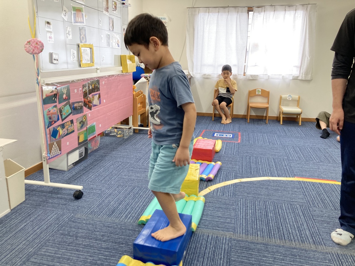 2023年08月15日(火) スタッフブログ 楽しいサーキット運動で、ジャンプ遊び!!! 慣れていない子どもにとっては、小さな台からのジャンプも大冒険!!きっと、かっこいいジャンプができるようになりますよ!