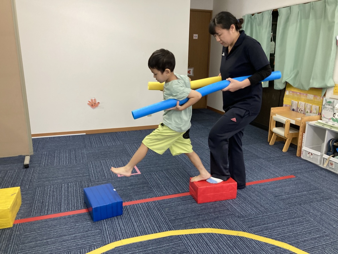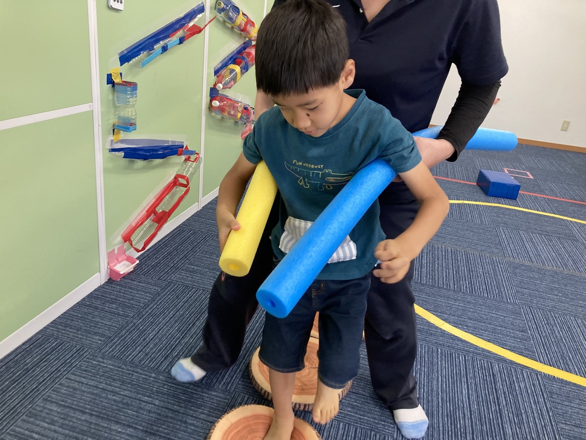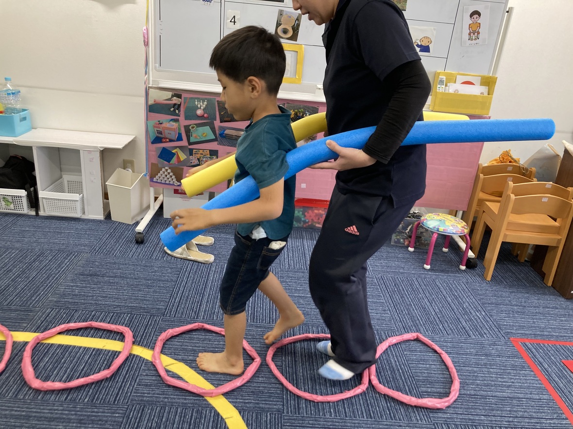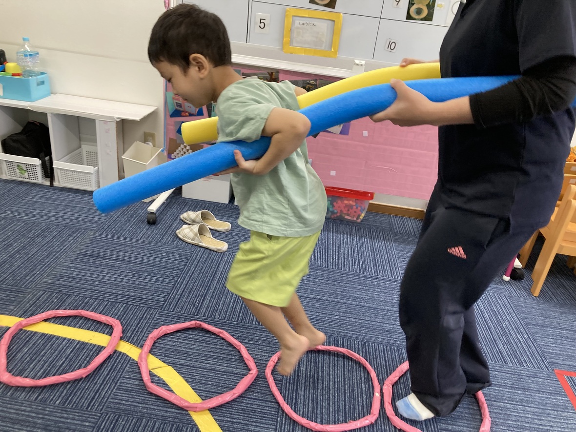 2023年08月16日(水) スタッフブログ 電車でサーキット☆彡 ウレタンスティックを2本使って、先生と一緒に電車に変身!!! 自分だけでなく同じ電車の先生のペースと合わせることも大切!難しいコースも上手に進むことができました。