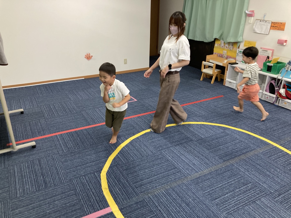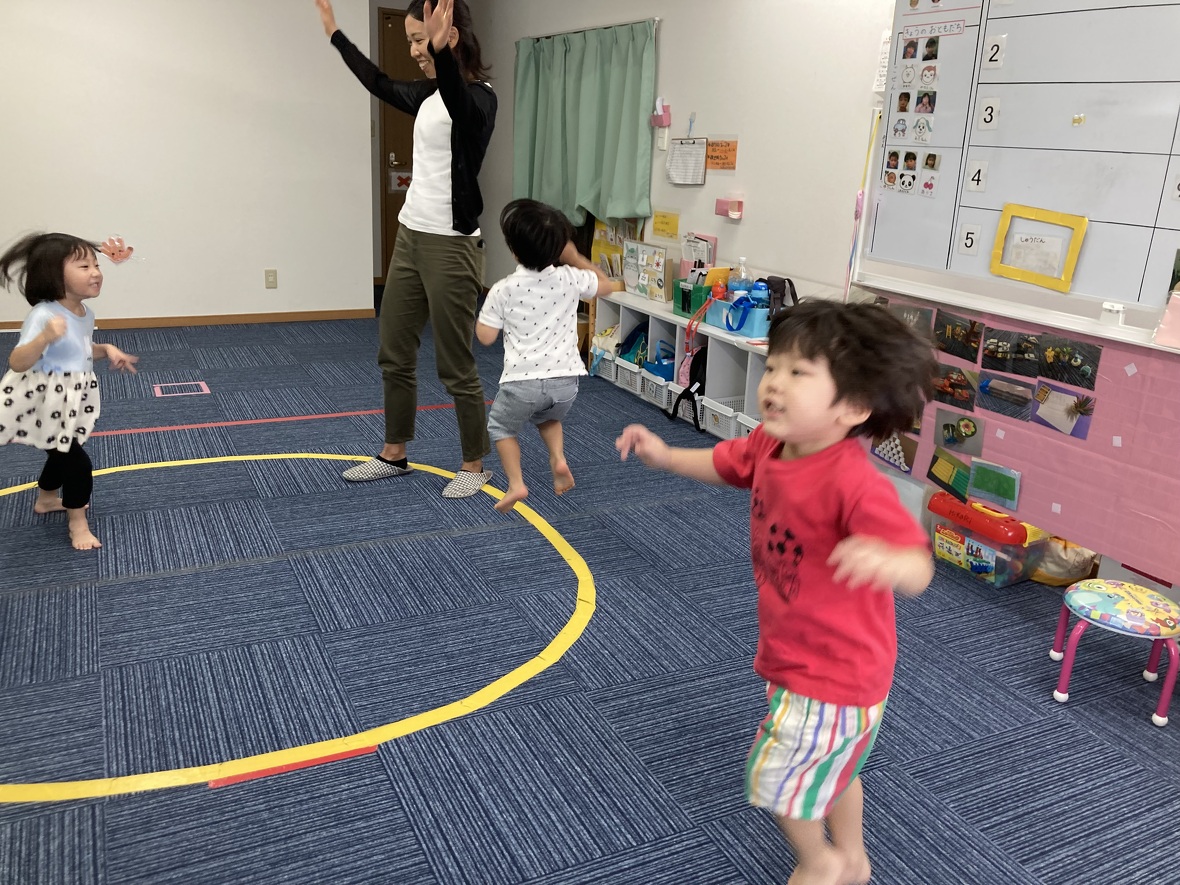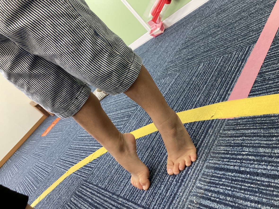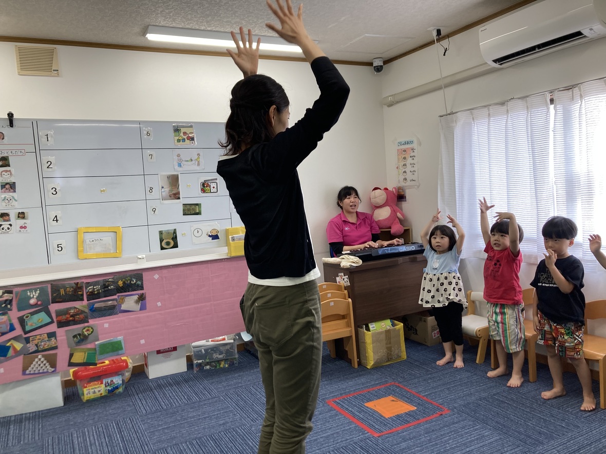 2023年08月22日(火) スタッフブログ リトミックでいろいろな動物になってみよう♬♬ リトミックは、子どもの運動能力や自由な表現力を培う活動で、音楽に合わせて動物の物まねをしたり、テンポを変化させながら体を動かしていきます。最初は先生の見本の動きを真似することからはじめますが、少しずつ自由に動きを表現することで感性を養うことにつながります。 ド♬レ♬ミ♬ カエルかな? ワニさん? こんなにしっかり踵が上がっています ネコの背伸び~