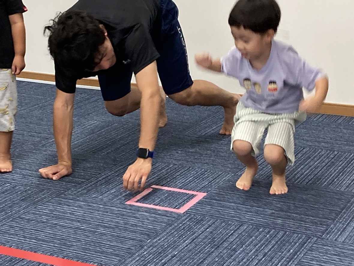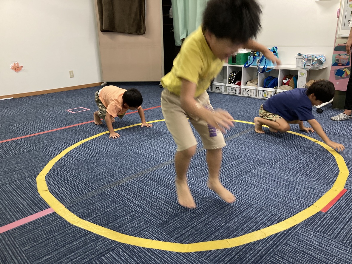 2023年08月25日(金) スタッフブログ 午前:サーキット運動 午後:タカ先生と全身遊び サーキット運動は走る、跳ぶ、バランスをとるなど様々な運動を行うことができます。また午後からの全身遊びでも同様に、様々な動物の動きによって、全身の筋肉にしっかり刺激を加えました。 おサルさんの木登り!! ウサギは跳ねる!!