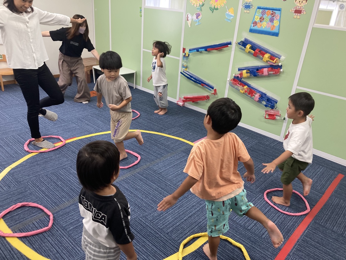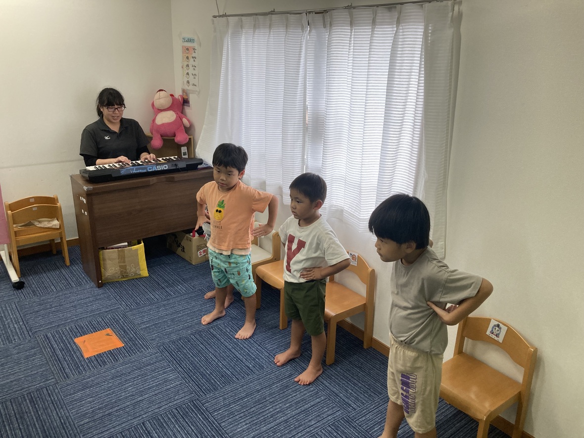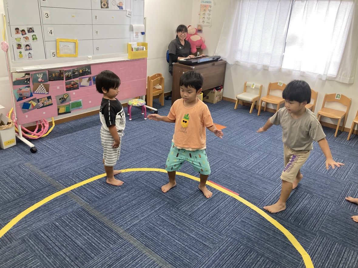 2023年09月01日(金) スタッフブログ リズムを楽しもう♬♫「リトミック」 美しいメロディは人の心を感動させますが、音楽はメロディだけでなく、ハーモニーとリズムも重要な要素です。特にリズムは、日常生活においても重要な役割を担っており、タイミングよく動作を行うときや、会話や文字を読む際にも関係してくると考えられます。リトミックでは、その力を養うことも目的としています。 音階に合わせてポーズ!!