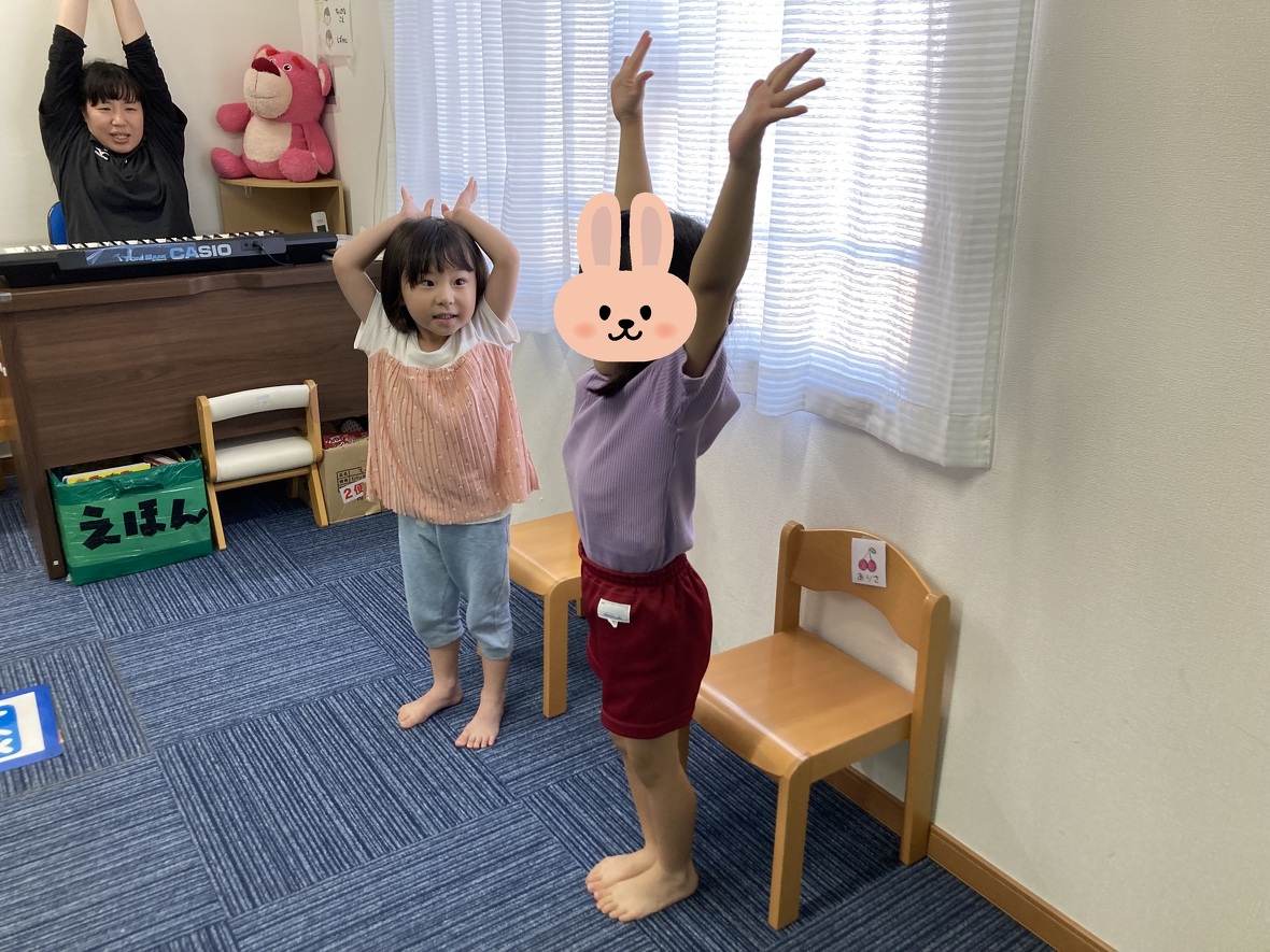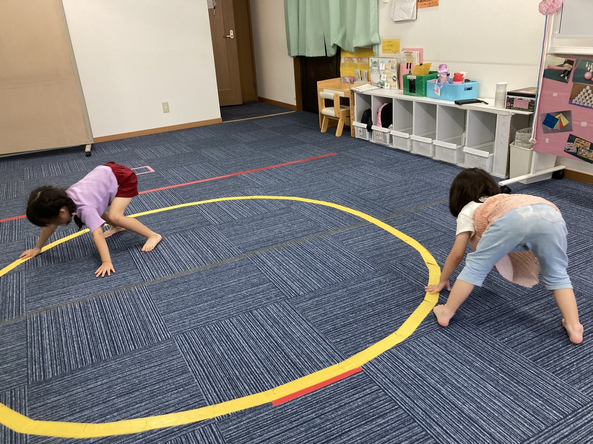 音楽に合わせて、いろいろな動物の動きをしながら、全身の筋肉をしっかり使いました!!