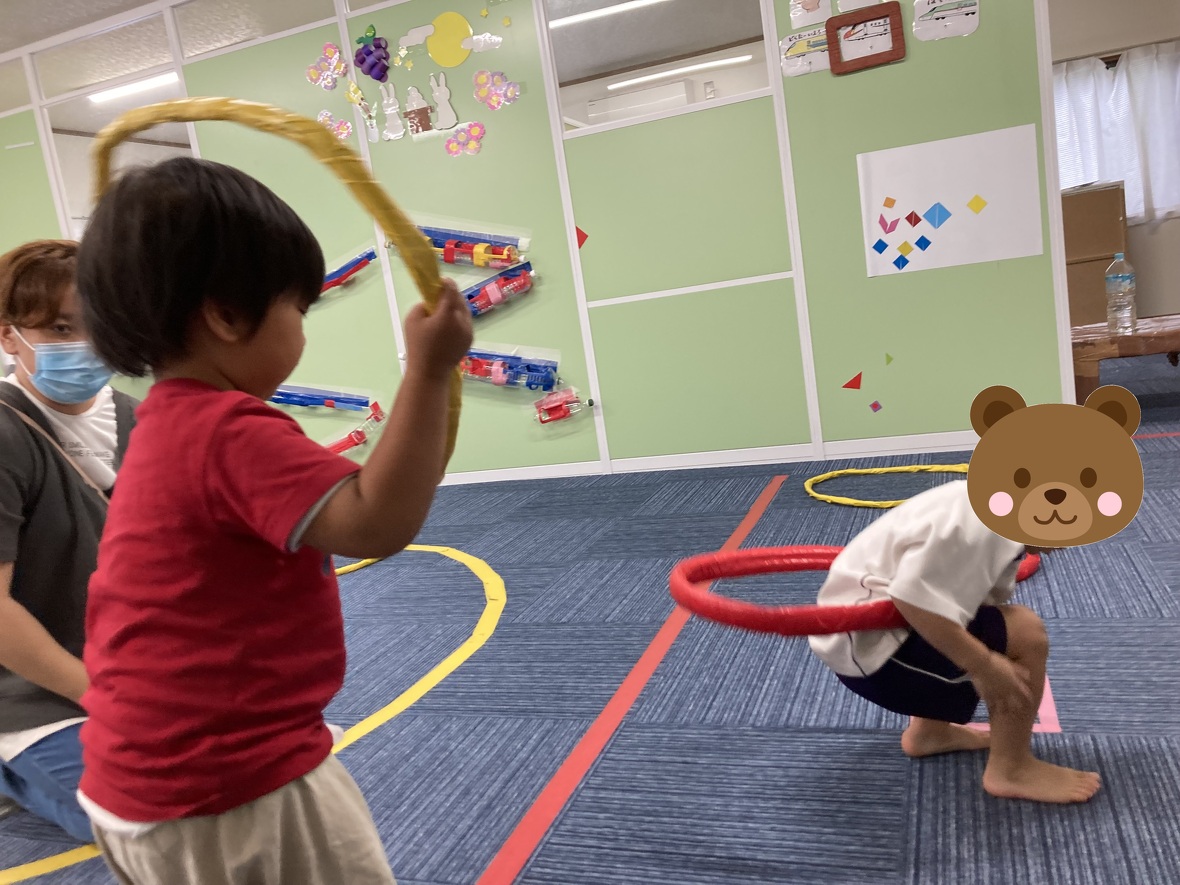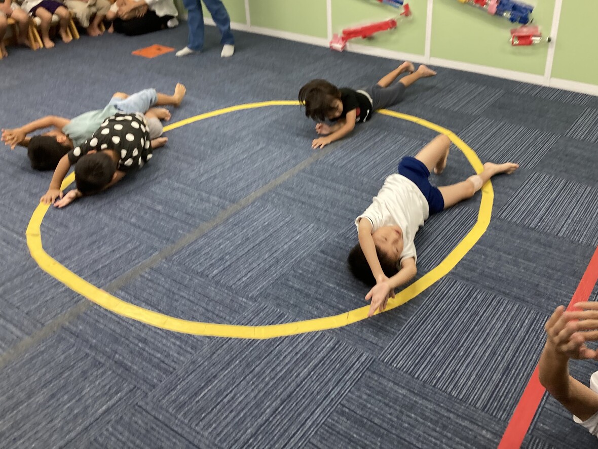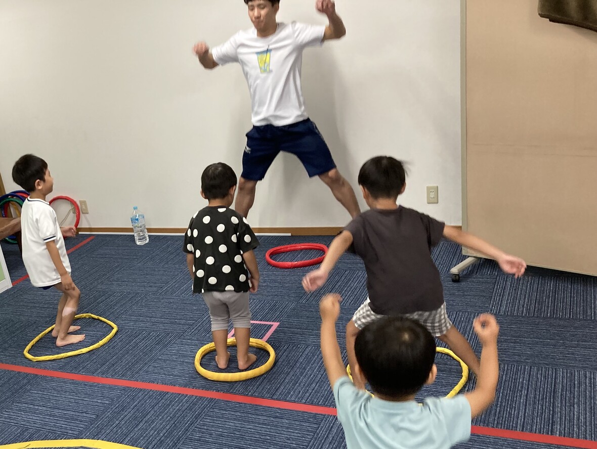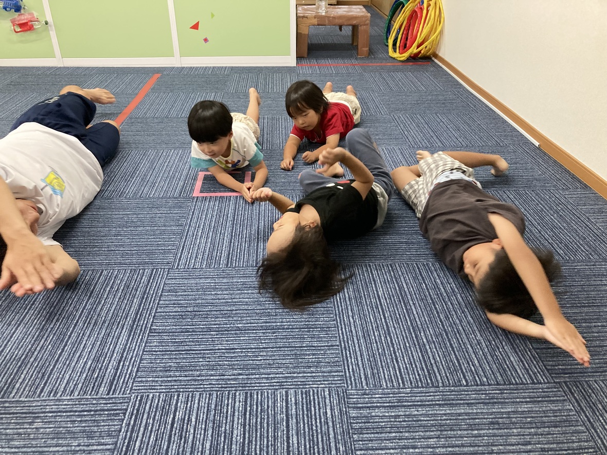 2023年09月22日(金) スタッフブログ バランスとジャンプにつながる運動!! 今日はタカ先生と運動の日です。”丸太ころがり”、”ロケット”、”花火”などジャンプやバランス向上につながる遊びにチャレンジしました!!