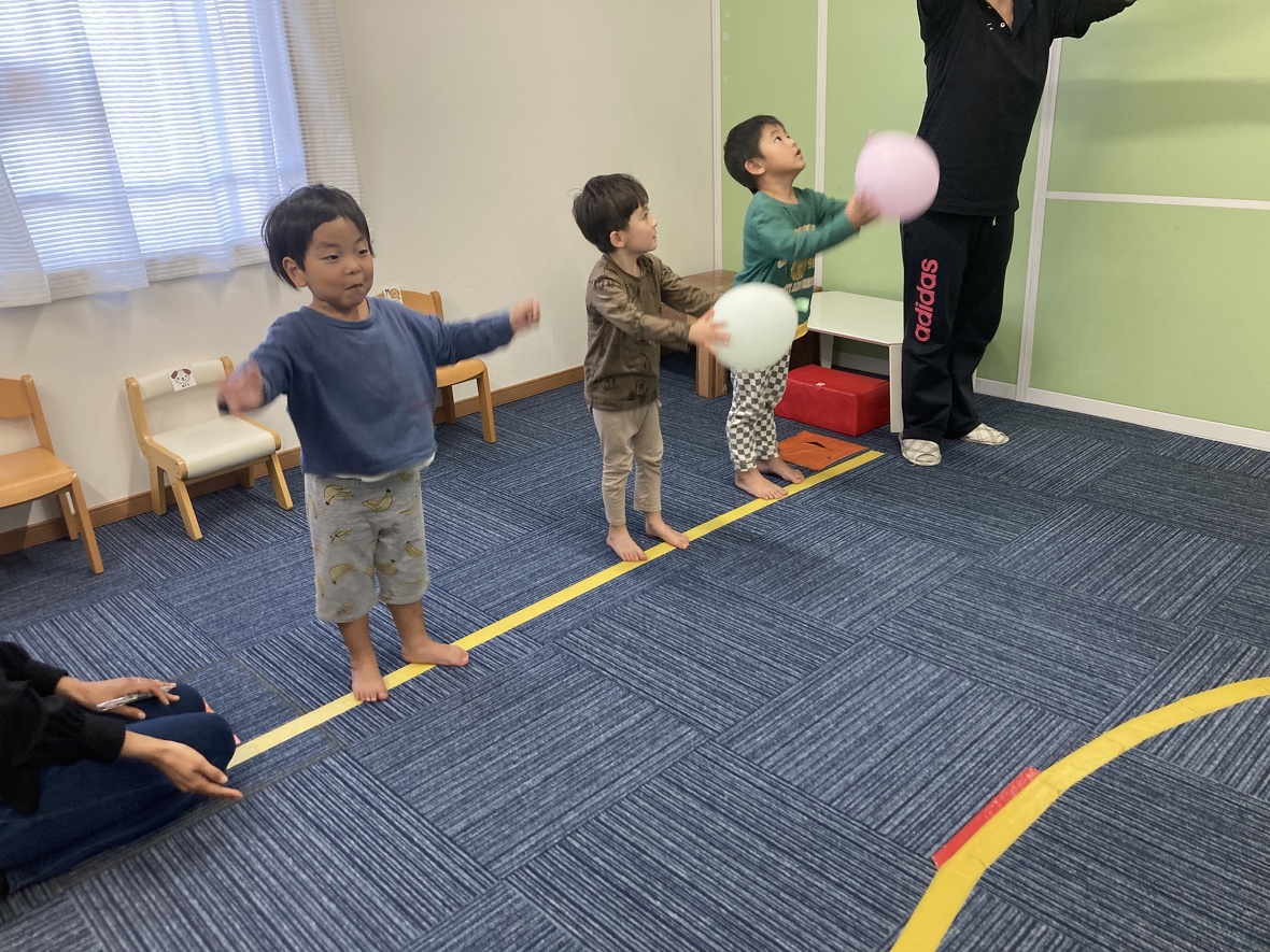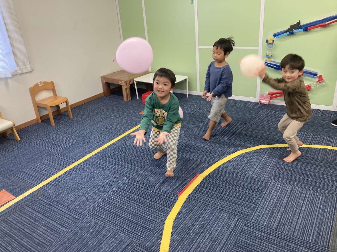 風船は、子どもの大好きな遊びの代表格!!地面に落ちないように上手にコントロールしながら、風船を追いかけて走り回りました!!