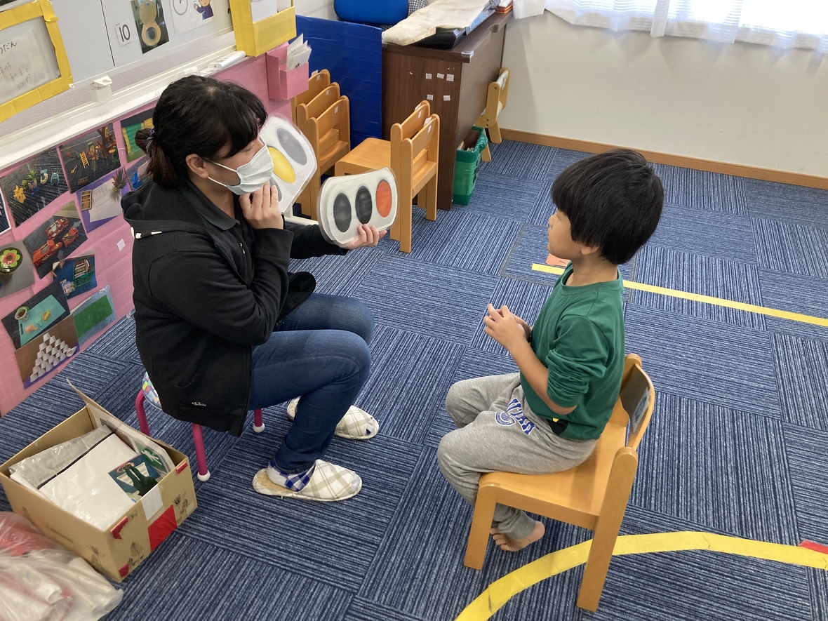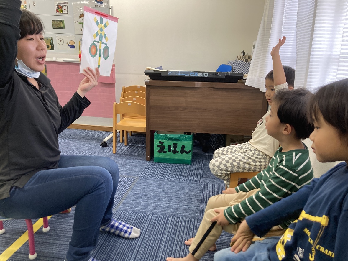 2023年10月26日(木) スタッフブログ 歩行者の交通ルールを学びました!! 今日の集団プログラムでは、信号機の勉強をしました。自動車用信号機と歩行者用の違いも、理解できていましたよ!! 線路の踏切の警報機についても、音と点滅のことを、しっかり確認しました。