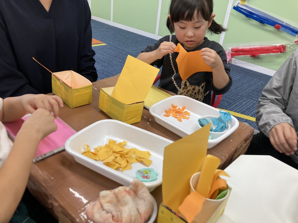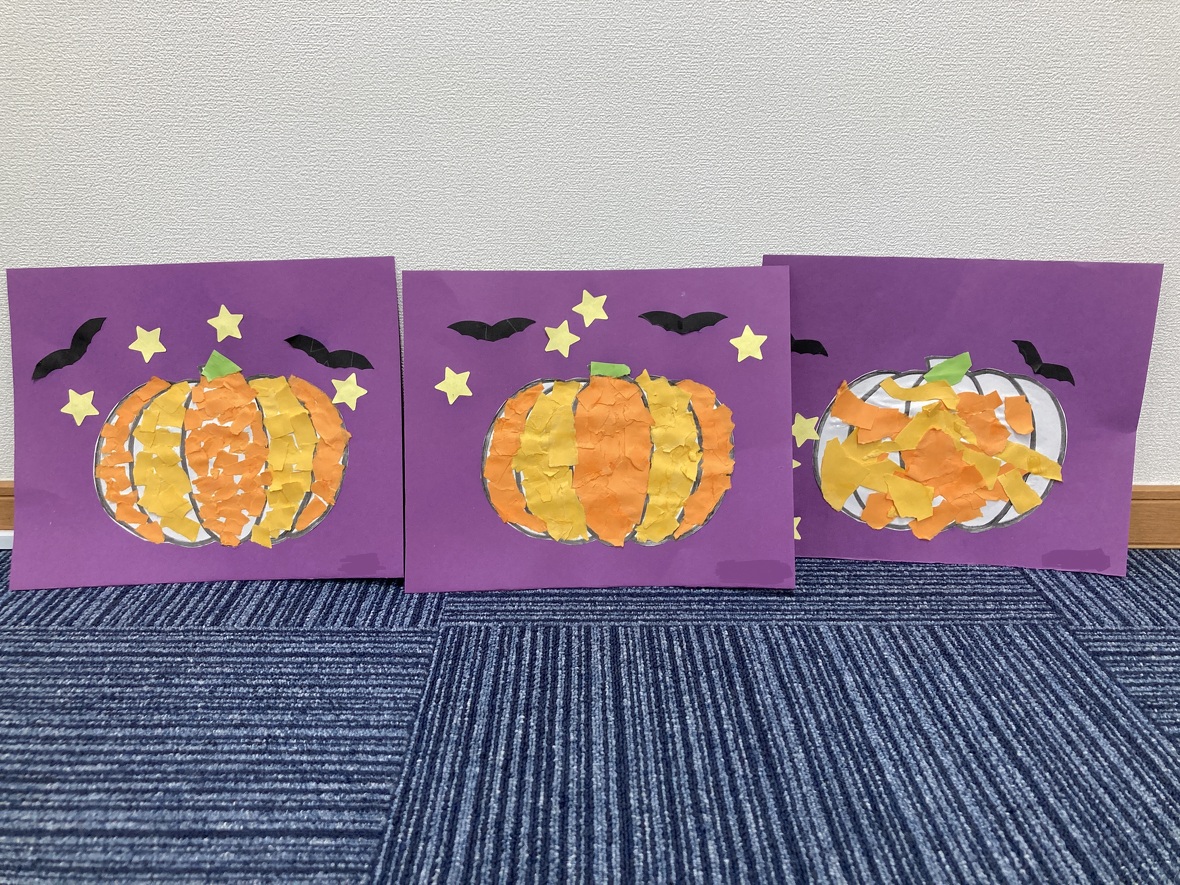 2023年10月31日(火) スタッフブログ 今日はハロウィン!!”かぼちゃ”の貼り絵にチャレンジしました!! まずは、色紙を小さくちぎって、貼り絵の材料をつくります!!より小さくするには、指先の器用さに加えて”力"も必要です。自分でちぎった色紙を下絵のうえに、貼っていくと・・・ハロウィンかぼちゃのできあがり!!グラデーションも素敵です。”ちぎり紙細工”で高名な山下清画伯もびっくり(かも)!!! 色紙を小さくちぎります! 上手に小さくできてます さあ!貼っていくよ とても素敵な絵ができました!!