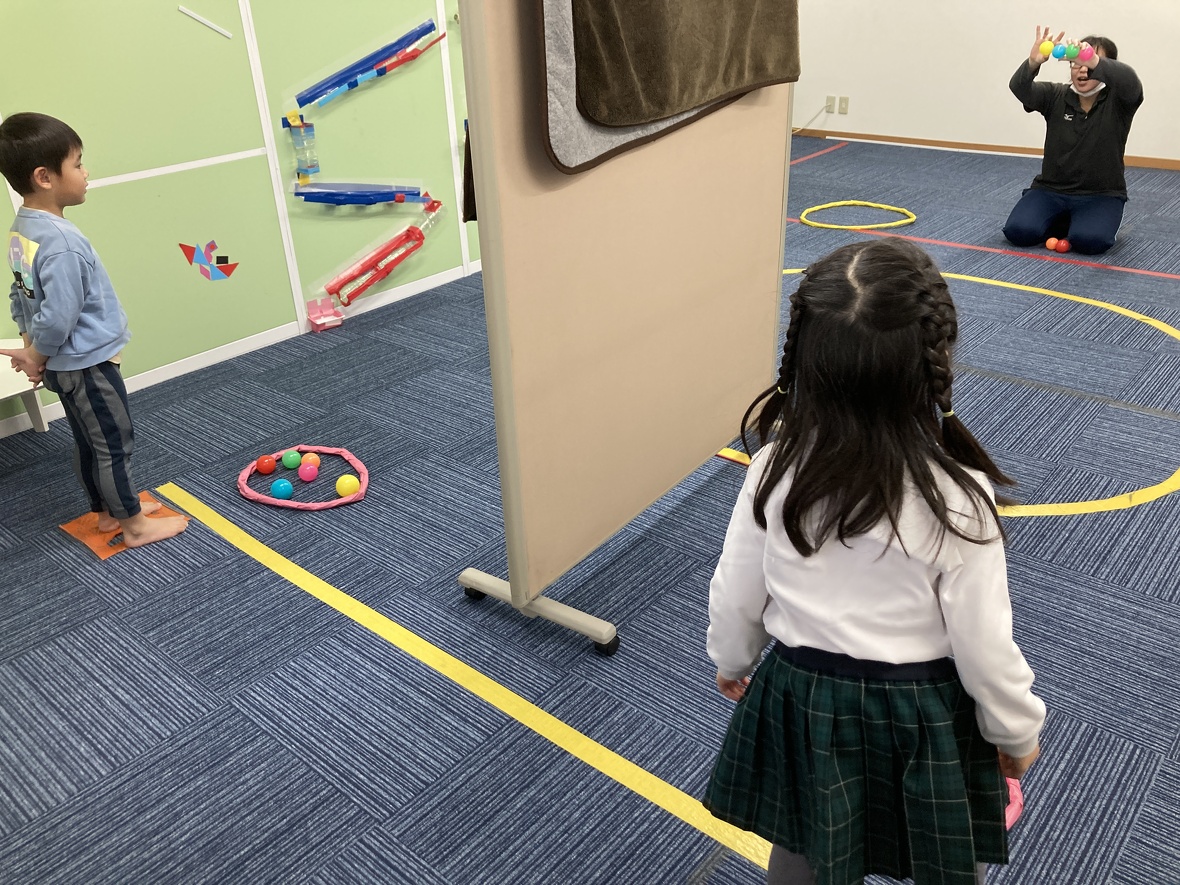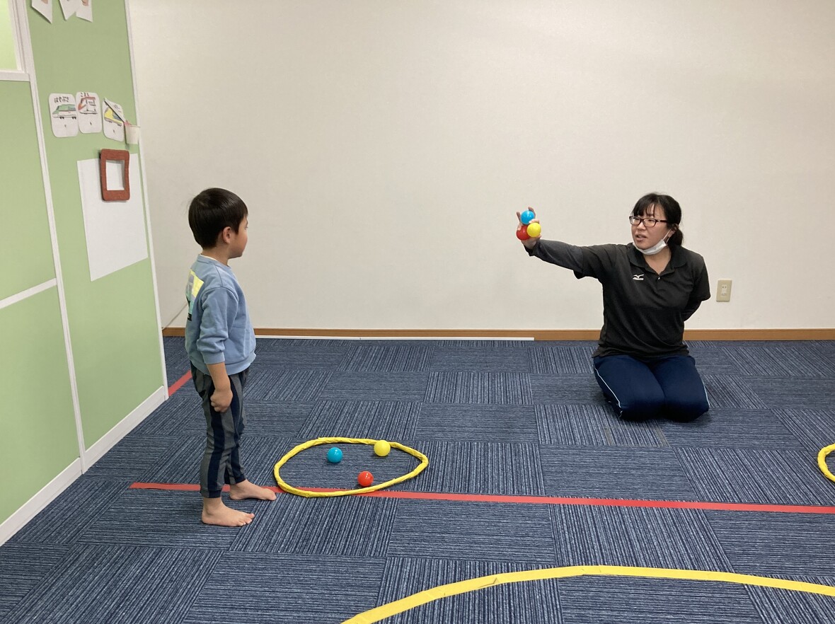 2023年12月05日(火) スタッフブログ ワーキングメモリを使って、ボールを選んでみよう!! 見たり、聞いたりしたことを、一時的(ごく短い時間です)に記憶し、その情報を処理して行動に移す能力がワーキングメモリです。ワーキングメモリでの記憶は、長期間にわたって”知識”や”でき事”を覚えている長期記憶とは違って、処理が終わった情報はどんどん整理(消去のほうが良い表現ですね)されていくので、また次の情報を取り入れて処理することができます!!必要な情報を保持していく”仕組み”という考え方もできますね。 先生から色が伝わりました!! 一生懸命思い出して同じ色のボールを探します。 大正解!!