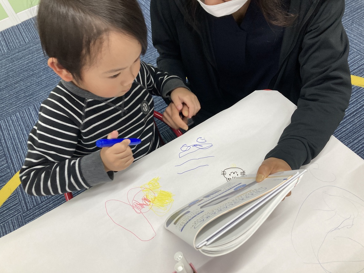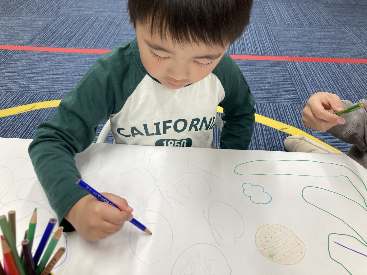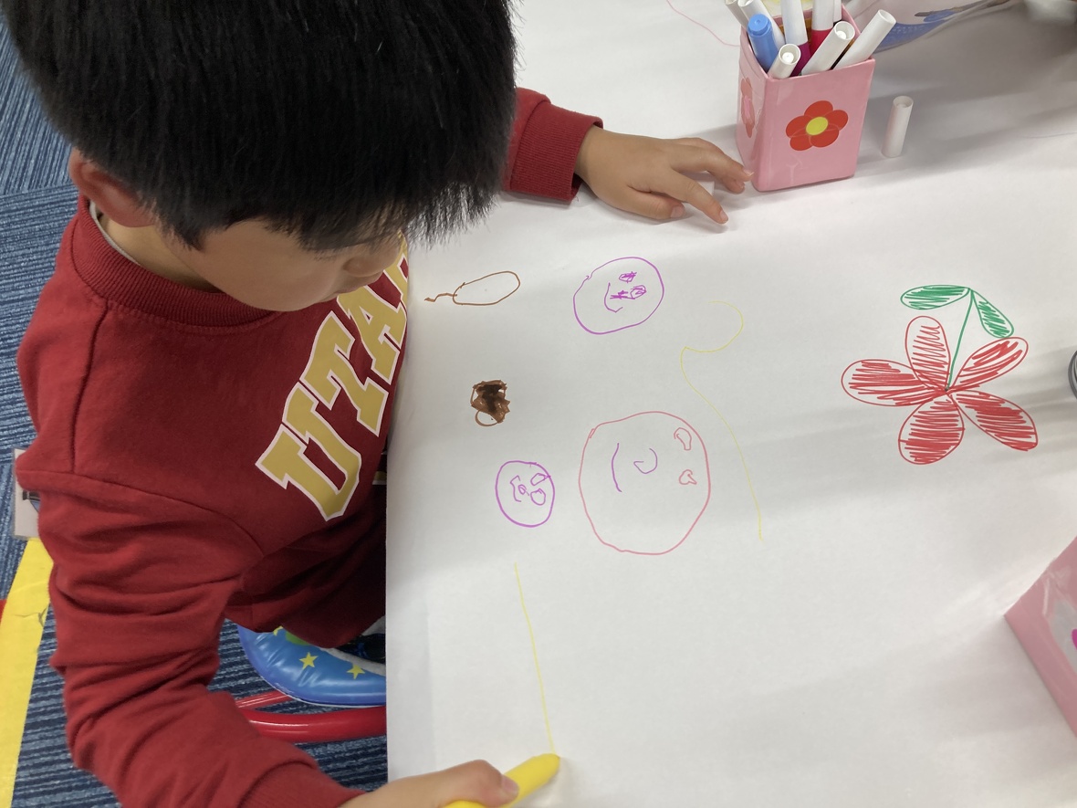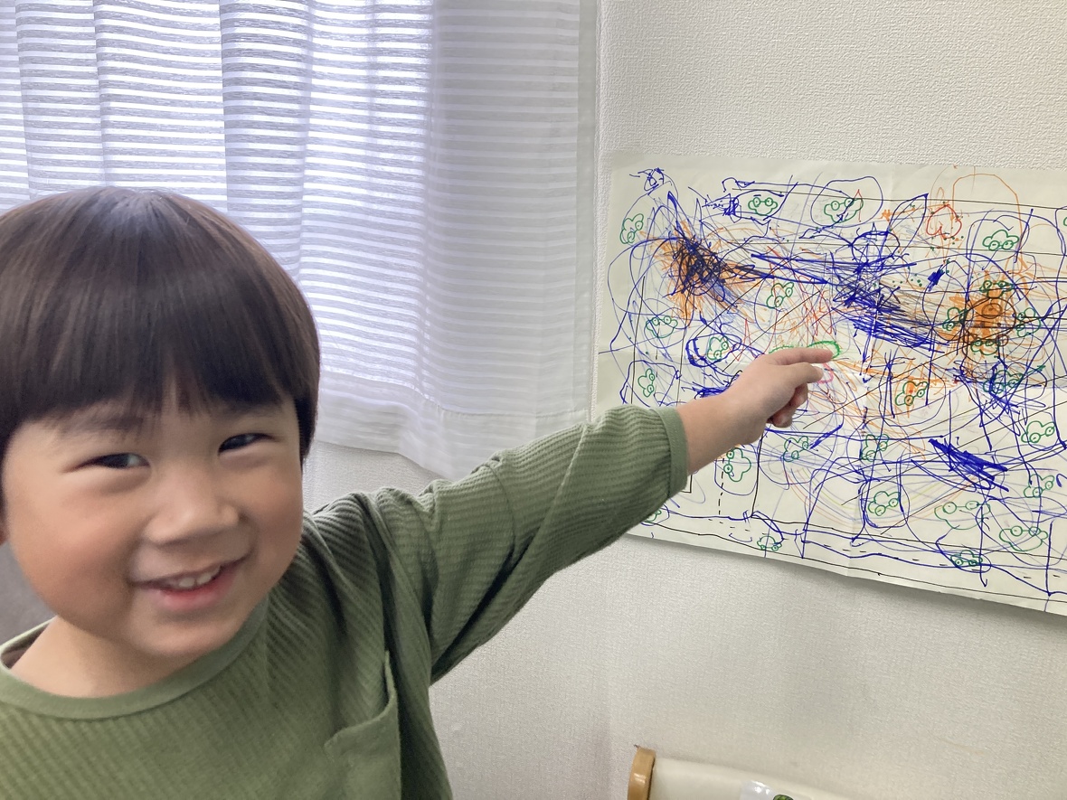 2023年12月11日(月) スタッフブログ 今日は”お絵描き” 今日は大きな白い紙に自分の好きなように絵を描く練習をしました!!大人であっても、自分のイメージを思い通りに描くことはとても難しいことですが、みんな楽しみながら取り組んでいました!! どうですか?? 大きな紙に自由に描こう!!