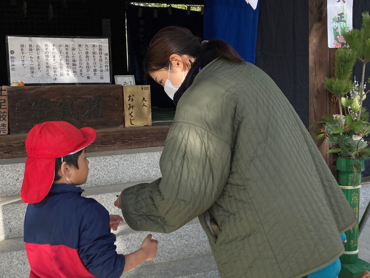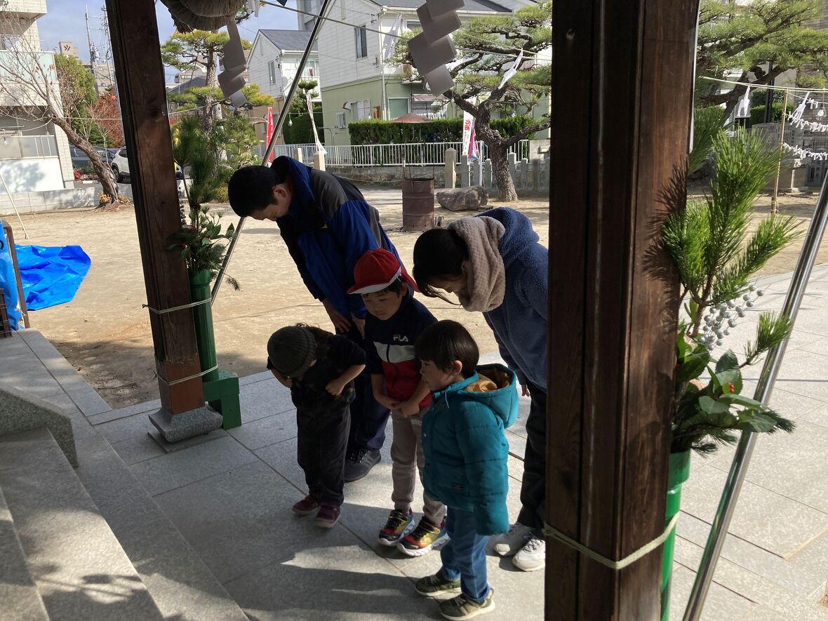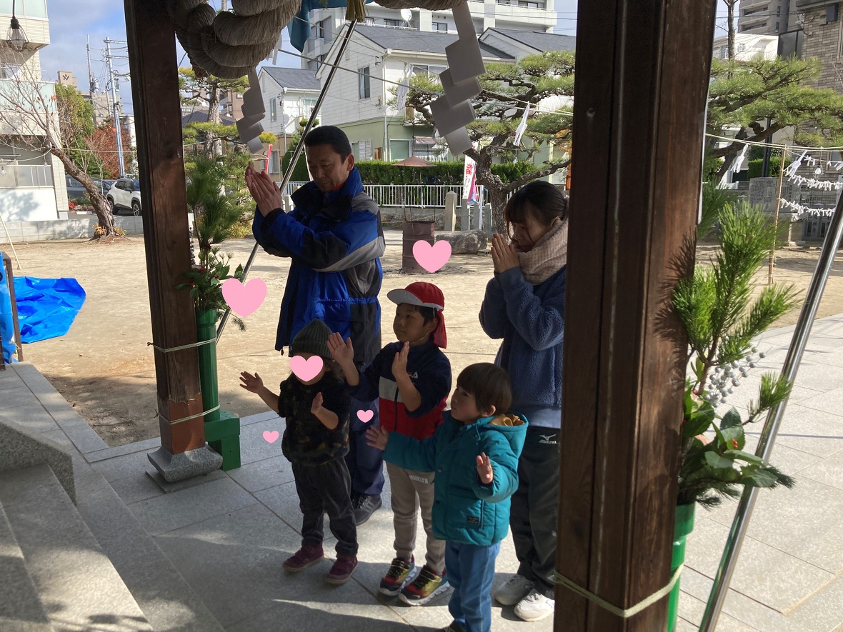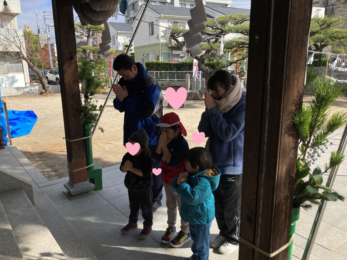 2024年01月04日(木) スタッフブログ 2024年最初のHiKaRiは初詣に行きました!!! あけましておめでとうございます!本年もよろしくお願いいたします。皆様楽しいお正月をお過ごしになりましたか?今日からHiKaRiがスタートしました。初日はみんなで近くの氏神様(熊野神社)に初詣に行ってきました。手水舎でのお清めをみんなで行ってから、本殿を参拝・・・作法も上手にできていましたよ!!帰りは公園の遊具で遊んできました。今年も素敵な1年になりますように!! お賽銭を用意して・・・ まずはお賽銭を投じてから 二礼をして・・・ 二拍手!! 願い事をお祈りしました 帰りは近くの公園で遊びました やっぱり大きなスベリ台は楽しいなあ 楽しく遊んできました