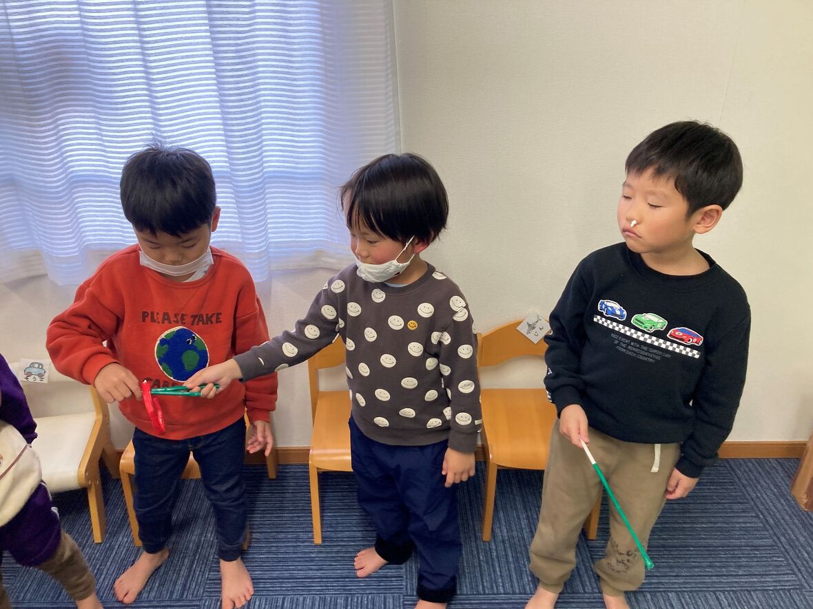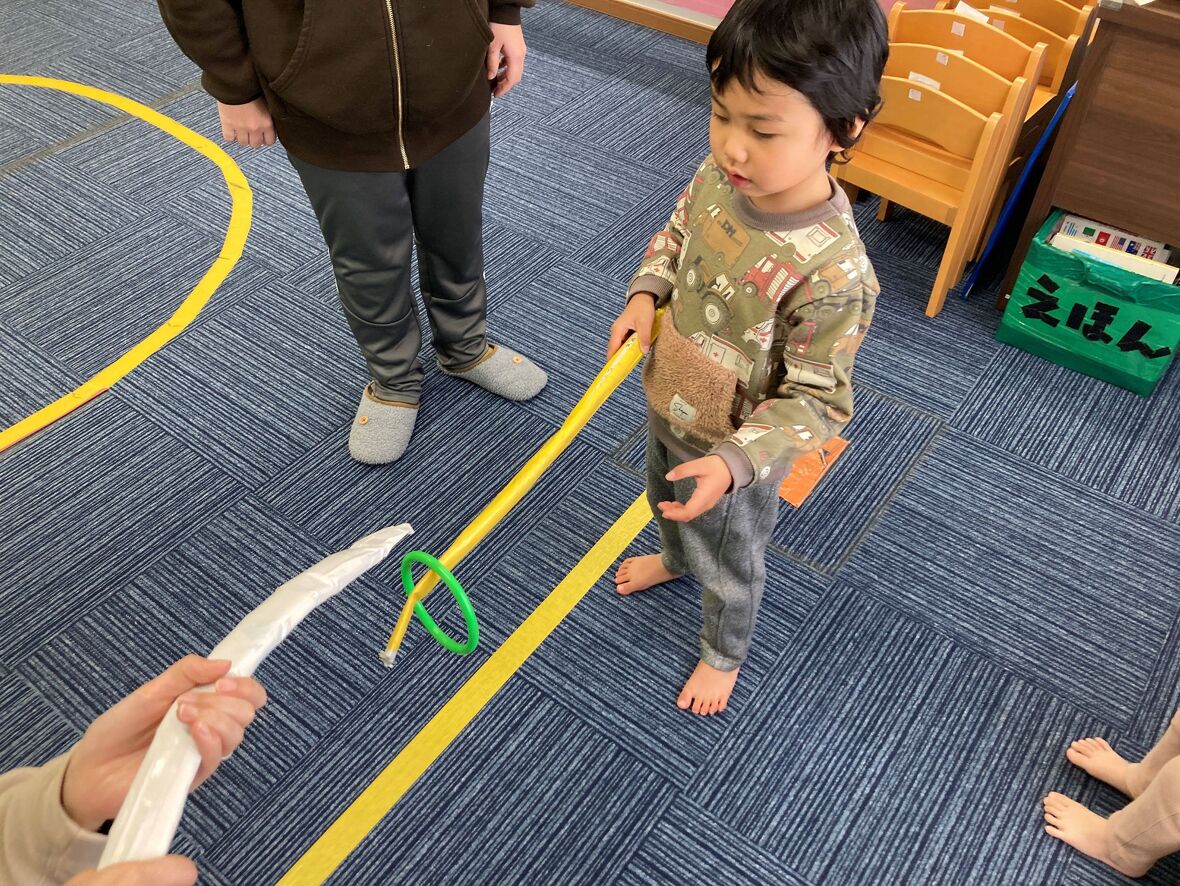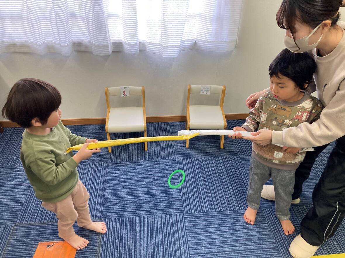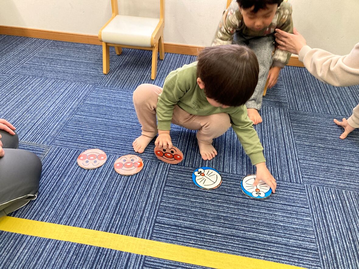 2024年01月24日(水) スタッフブログ ルールを守って遊ぼう!!!輪っか渡しとオセロ 輪っか渡しは、スティックを使って、相手に"輪っか"を渡しますが、直接"輪っか"を手で持ってはいけません。ド●えもんとアン●ンマンのオセロはスタートとストップの合図を守ってフェアプレイをすることが大切ですね!このようにお友だちと楽しく遊びながら、ルールを守ることを習得していきます。 落とさないように”ゆっくりゆっくり” 頑張れ~ お友だちとやってみました オセロ(表裏のイラストをひっくり返します)は先生と対戦 手洗いは説明付きの写真を見ながら ”輪っか渡し”のお手本を先生が見せてくれました 上手にできるかな 2チームに分かれて、オセロは大熱戦
