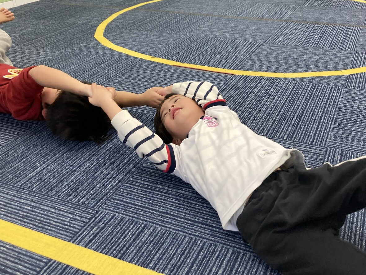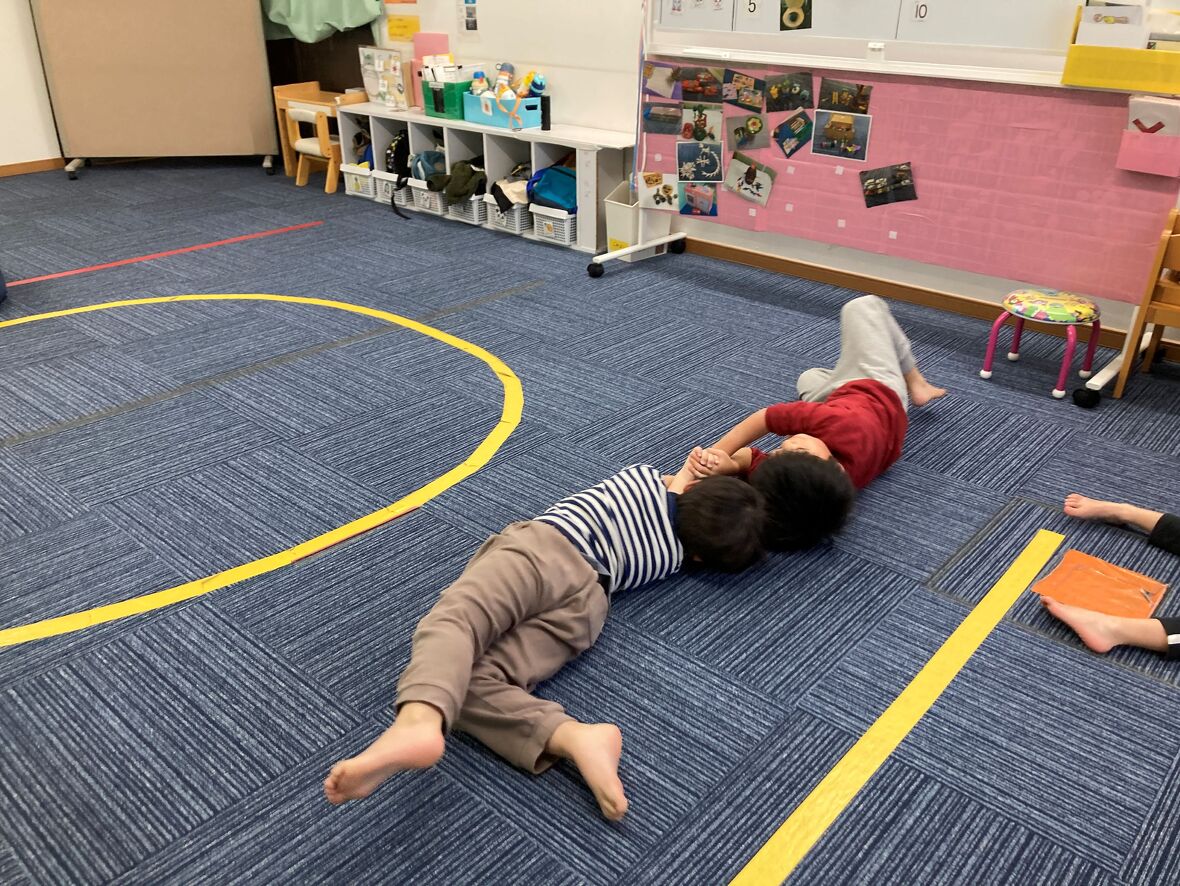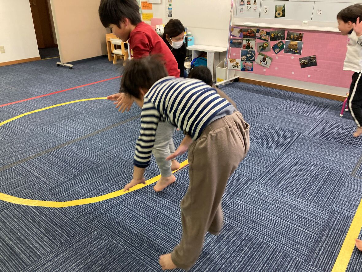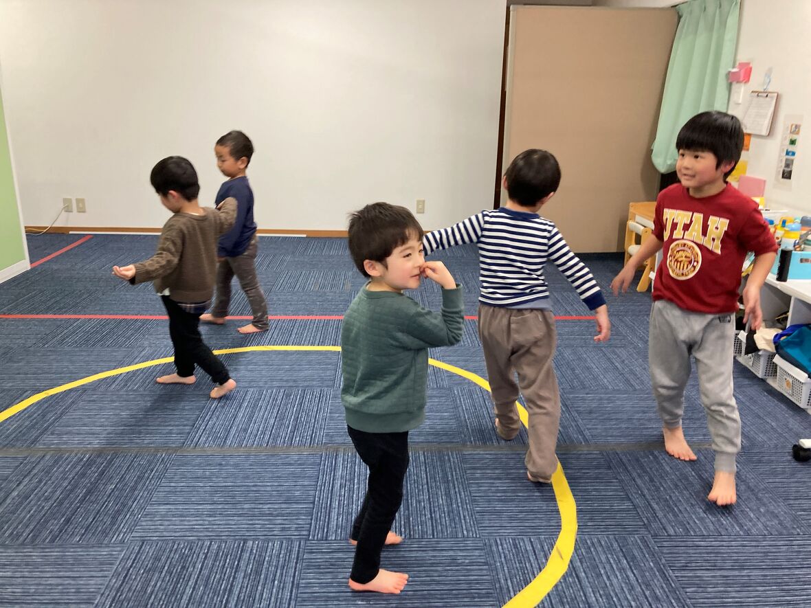 2024年01月29日(月) スタッフブログ 音楽に合わせて体操しました!!! 今日はキーボードの演奏を聴きながら、跳びはねたり、走り回ったり、自由に体を動かしてみました。二人組になって地面をゴロゴロするのも楽しいなあ!! ノリノリの動き 音楽がピタッ・・と止まった? 自由に~動いて すごいジャンプ 二人でゴロゴロ ゴロゴロ・・・楽しいな