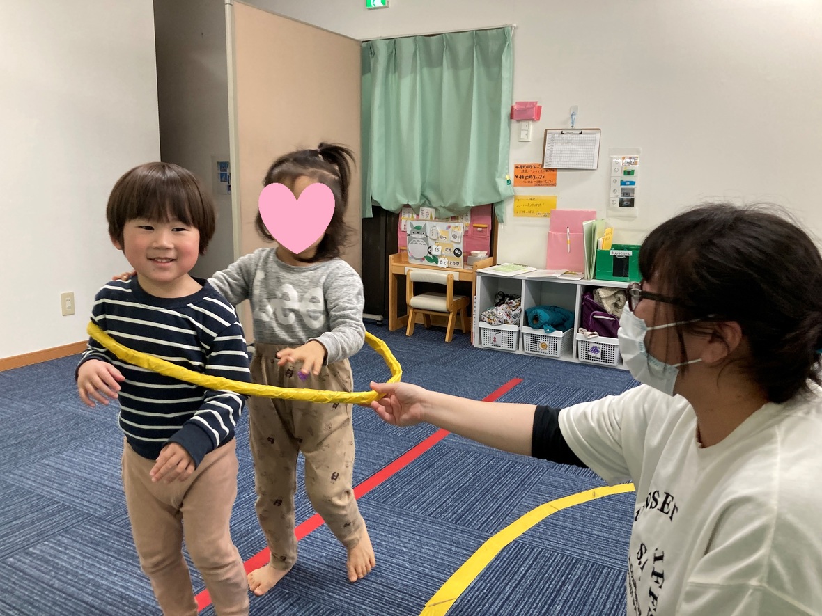2024年02月19日(月) スタッフブログ 伝承遊びを取り入れます!! 集団での療育には、「伝承遊び(昔からある子どもの遊び」は欠かすことができません。遊びによって、他者とのつながりが形成され、約束事を守ることにもつながるのです。 ”ロンドン橋”フラフープバージョン 懐かしい”しっぽ取り”