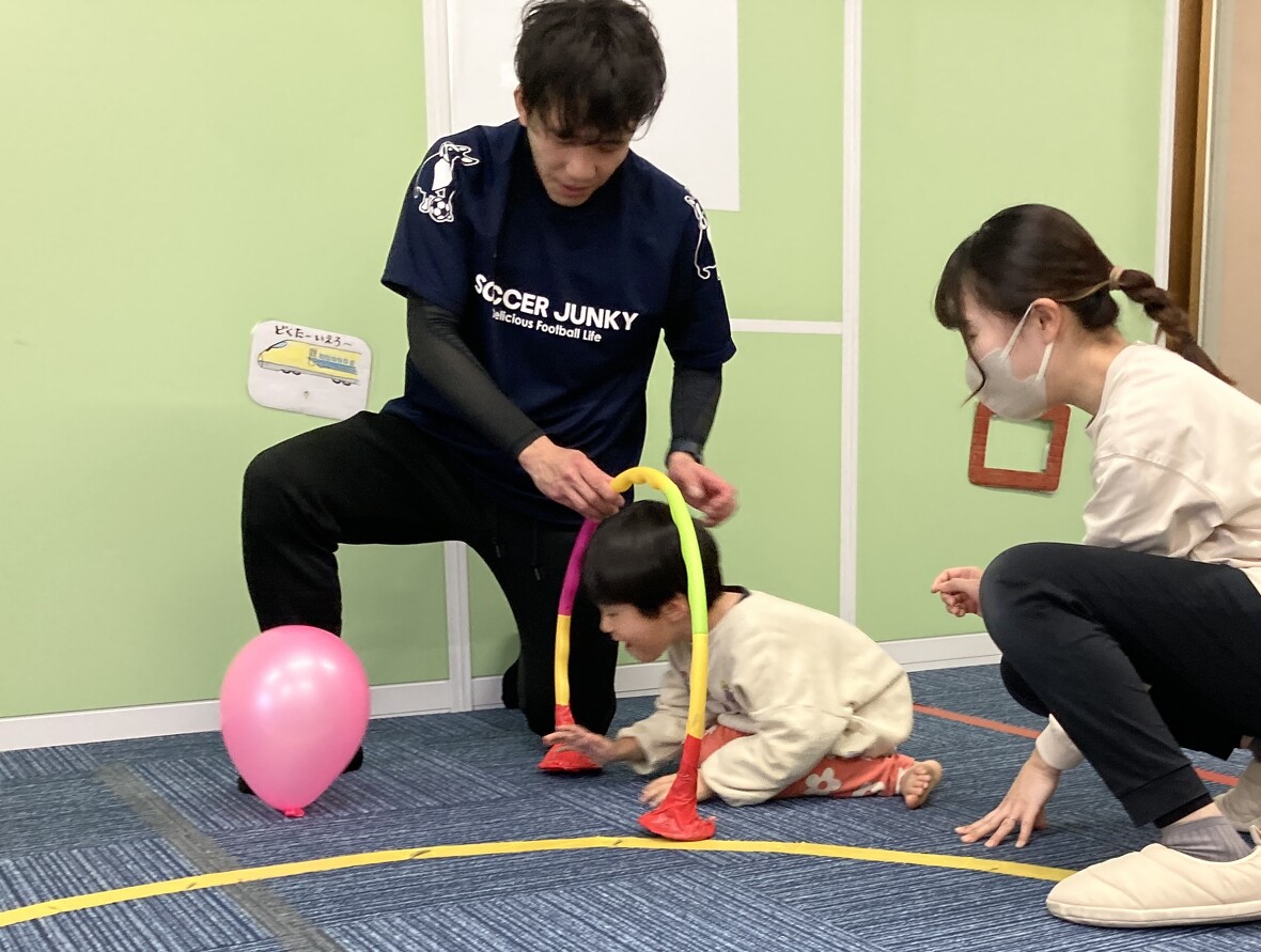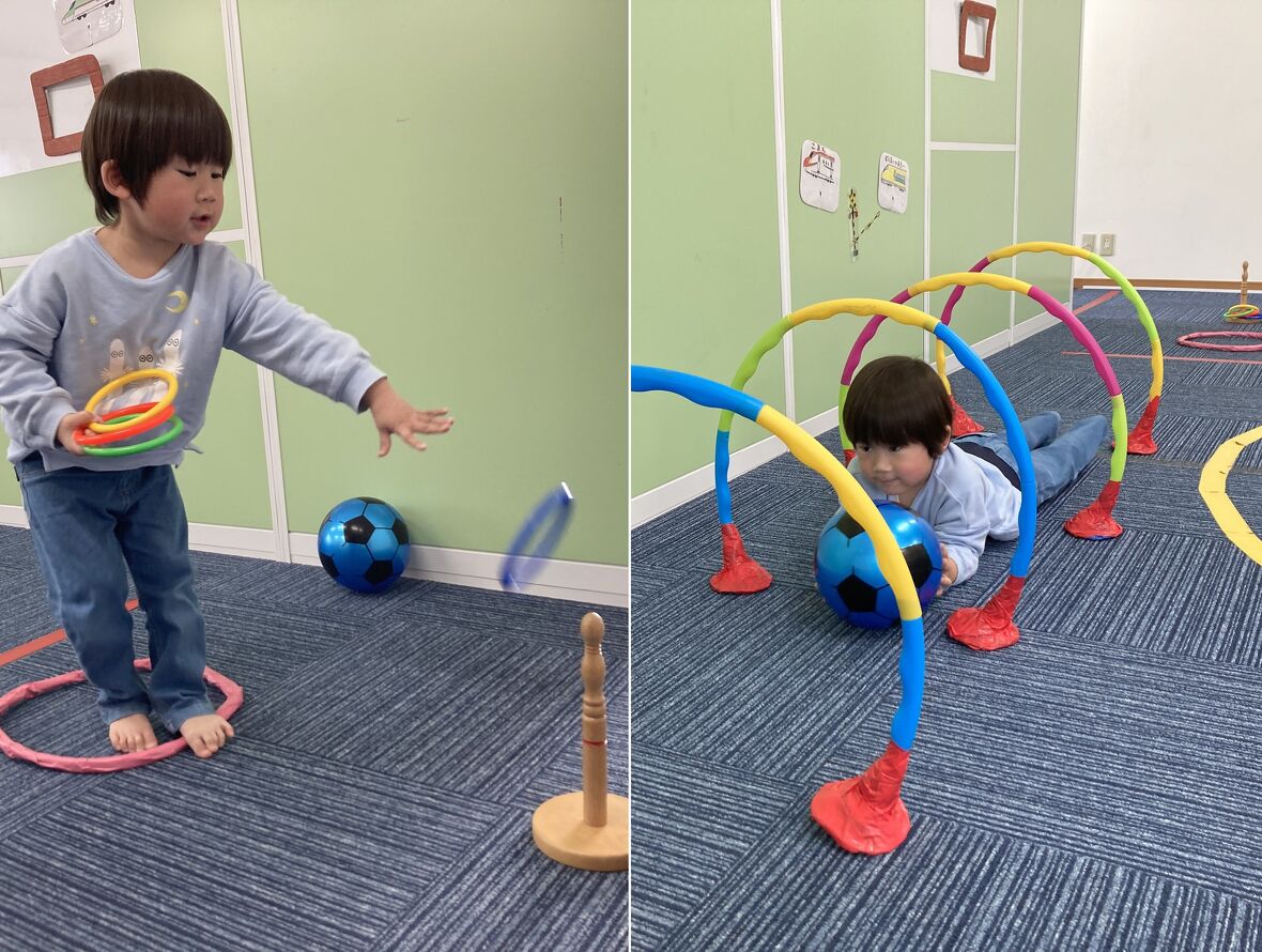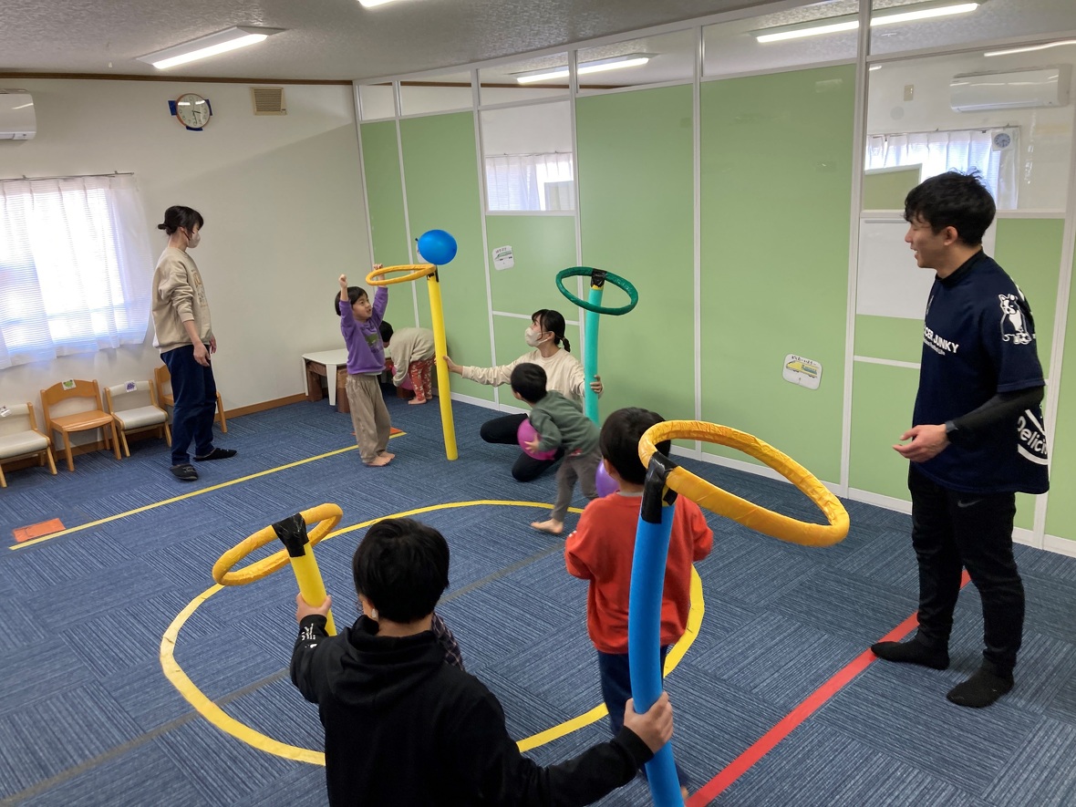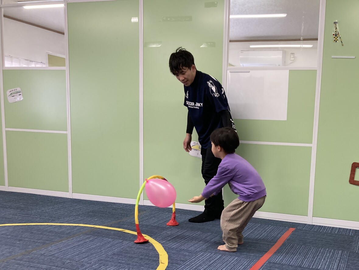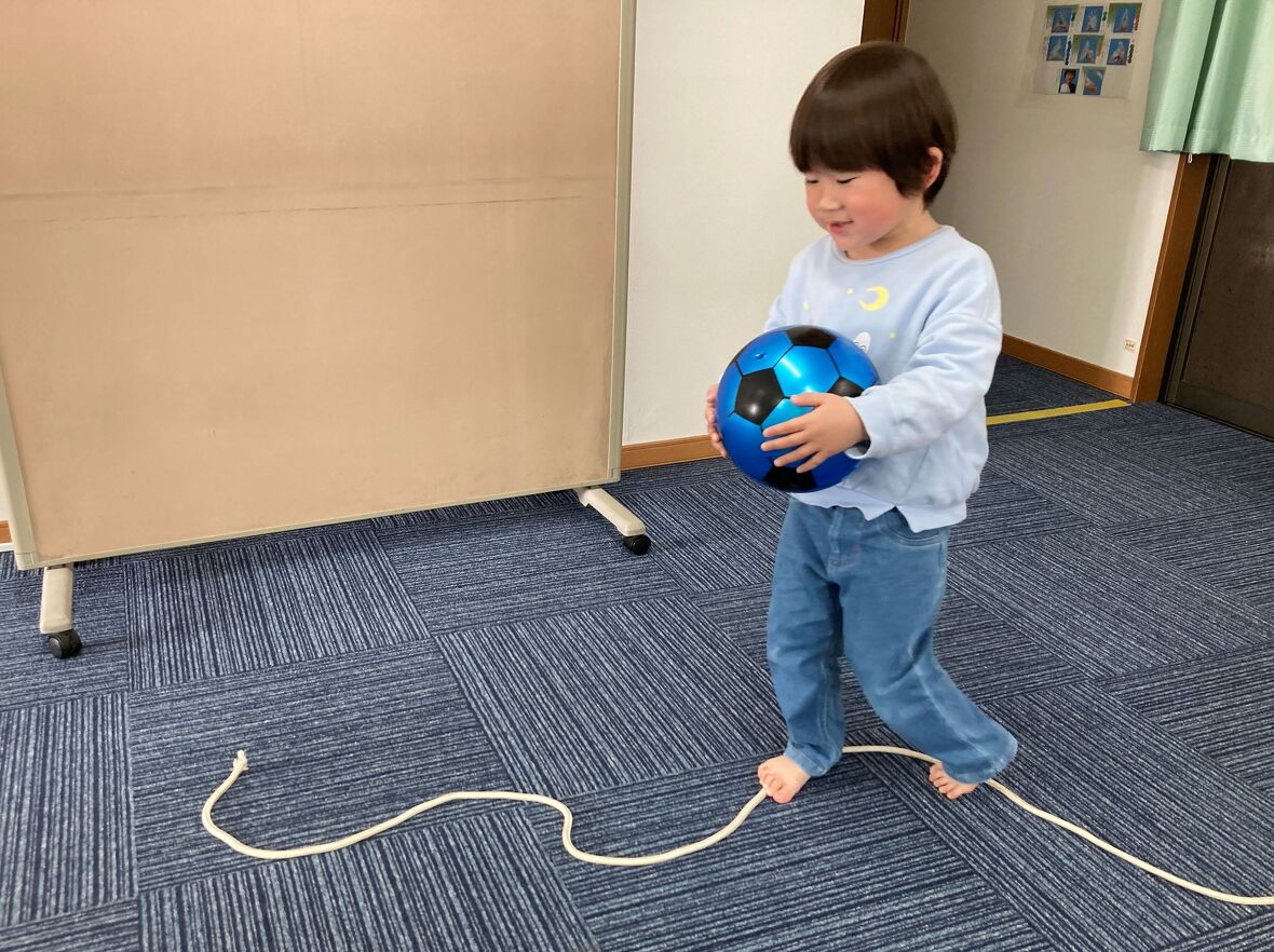 2024年02月16日(金) スタッフブログ 午前:サーキット遊び 午後:風船遊び 午前中はサーキット遊びを楽しみました!!ボールを守りながら、いろいろなことが待ち構えている不思議な世界を大冒険☆午後からは風船を使って、バスケットボールやサーキット遊びにチャレンジしました!! ヘビさんのような”くねくね道”から、離れないように慎重に歩きます・・・ ”輪投げ”や”トンネルくぐり”もある大冒険です!!! フラフープとウレタンポールでできたゴールに”風船”をシュート☆☆ 風船を手で追いかけながら、サーキットを進み・・・ 風船と一緒に、上手にくぐり抜けました