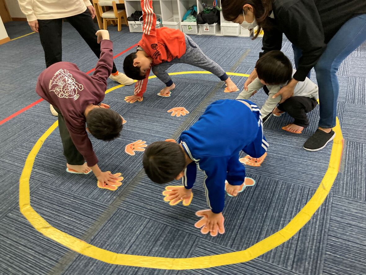 2024年02月28日(水) スタッフブログ 静かなブーム?ツイスターゲーム 2月半ばから、HiKaRiではツイスターゲームが静かなブームです!!柔軟性やバランスはもちろんのこと、ポーズを維持するための体幹や脚の筋力も必要ですね。何より、みんなでチャレンジすると楽しいことが、子どもたちの人気につながっています。ツイスターを楽しんだ後は、春を探しにお散歩・・・。きれいな「木瓜(ぼけ)の花」を見つけました!! 先生たちが準備して・・・ みんなすごいね~ 木瓜の花がきれいに咲いていました