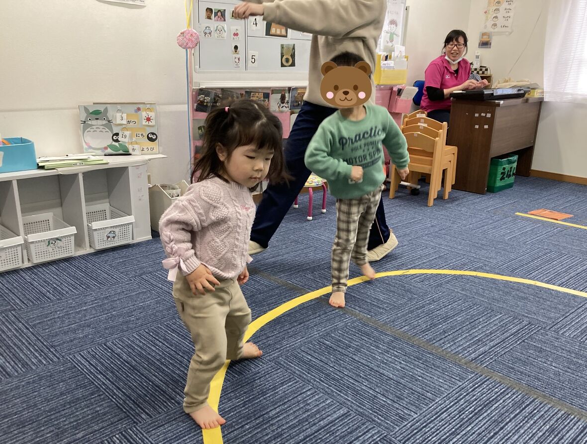 2024年03月19日(火) スタッフブログ 音楽に合わせて、いろいろな生き物になってみました!!! 今日はリトミックでしっかり体を動かしました。カエルさんやトンボさん、そしてドングリさんにも変身・・・。とても上手にできましたね。 先生と一緒にカエルさんになりました 上手にジャンプもできましたね 音楽のテンポに合わせて、早く歩いたり、ゆっくり歩いたり・・・