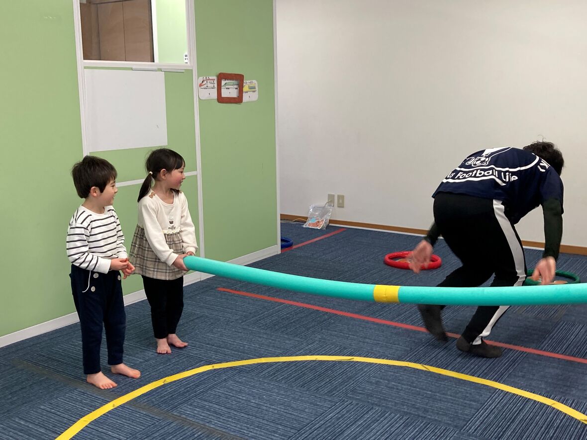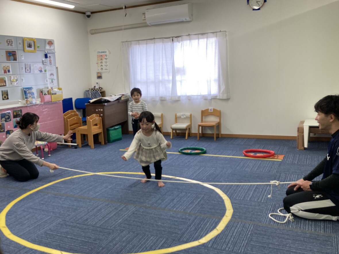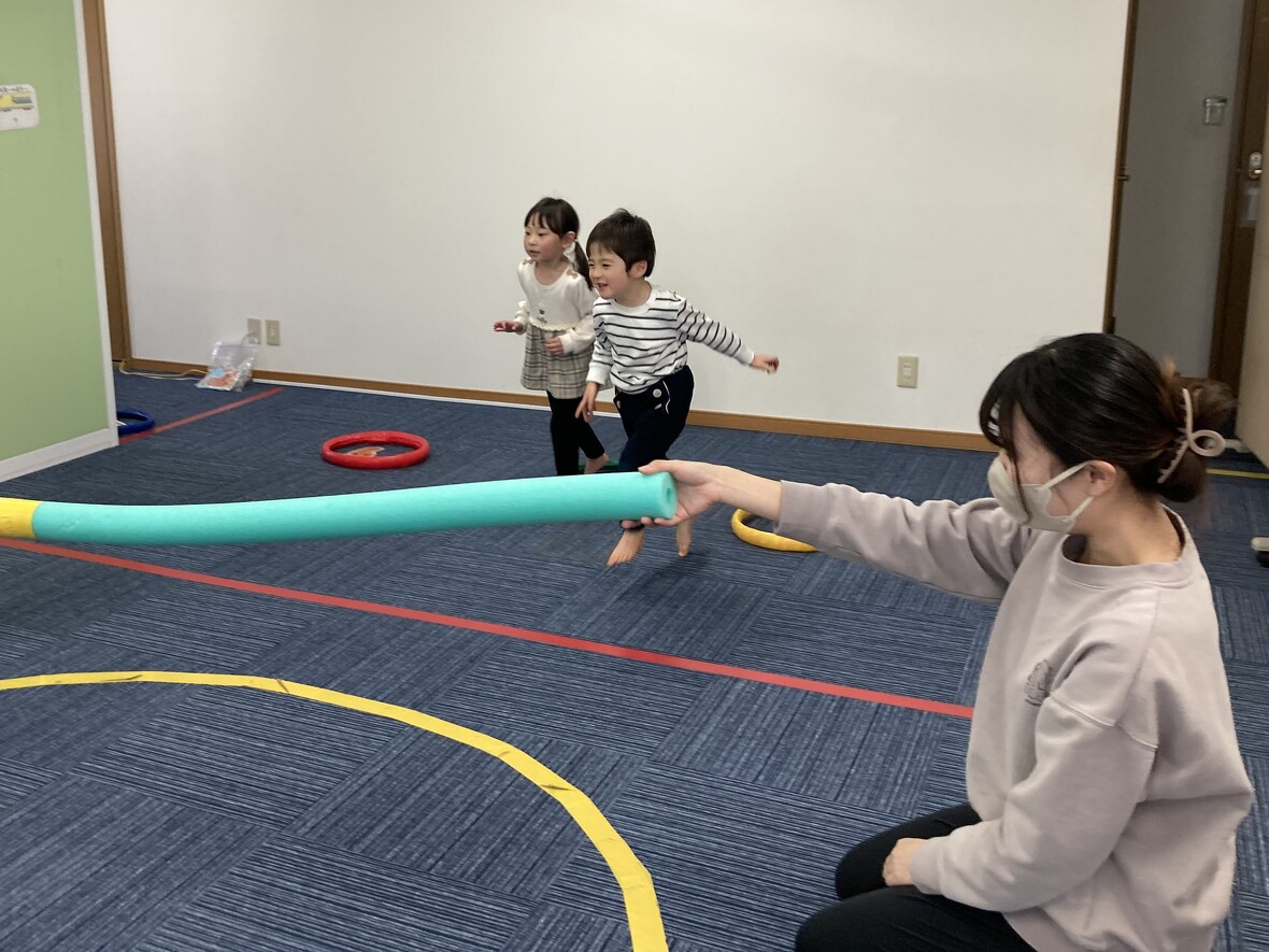 2024年03月26日(火) スタッフブログ タカ先生!ありがとう 今日はタカ先生と運動の日でした。長なわをとび越えたり、ウレタンポールをくぐったり、走るコースには、いろいろな仕掛けがあって楽しかった!!楽しい遊びをいっぱい教えてくれたタカ先生は、新しい仕事を頑張るために、HiKaRiのプログラムはしばらくお休みすることになりました。これまで本当にありがとうございました!! 最初はなわとびをとび越えて・・・ ちょっと心配そうにウレタンポールを持っています・・・が タカ先生がくぐっていきます 無事くぐれてよかった~ 今度はみんなでくぐってみよう!! 帰りのコースは? ポールをまたいでみます。タカ先生優しく見守ってくれてありがとう!