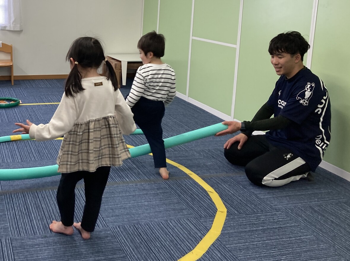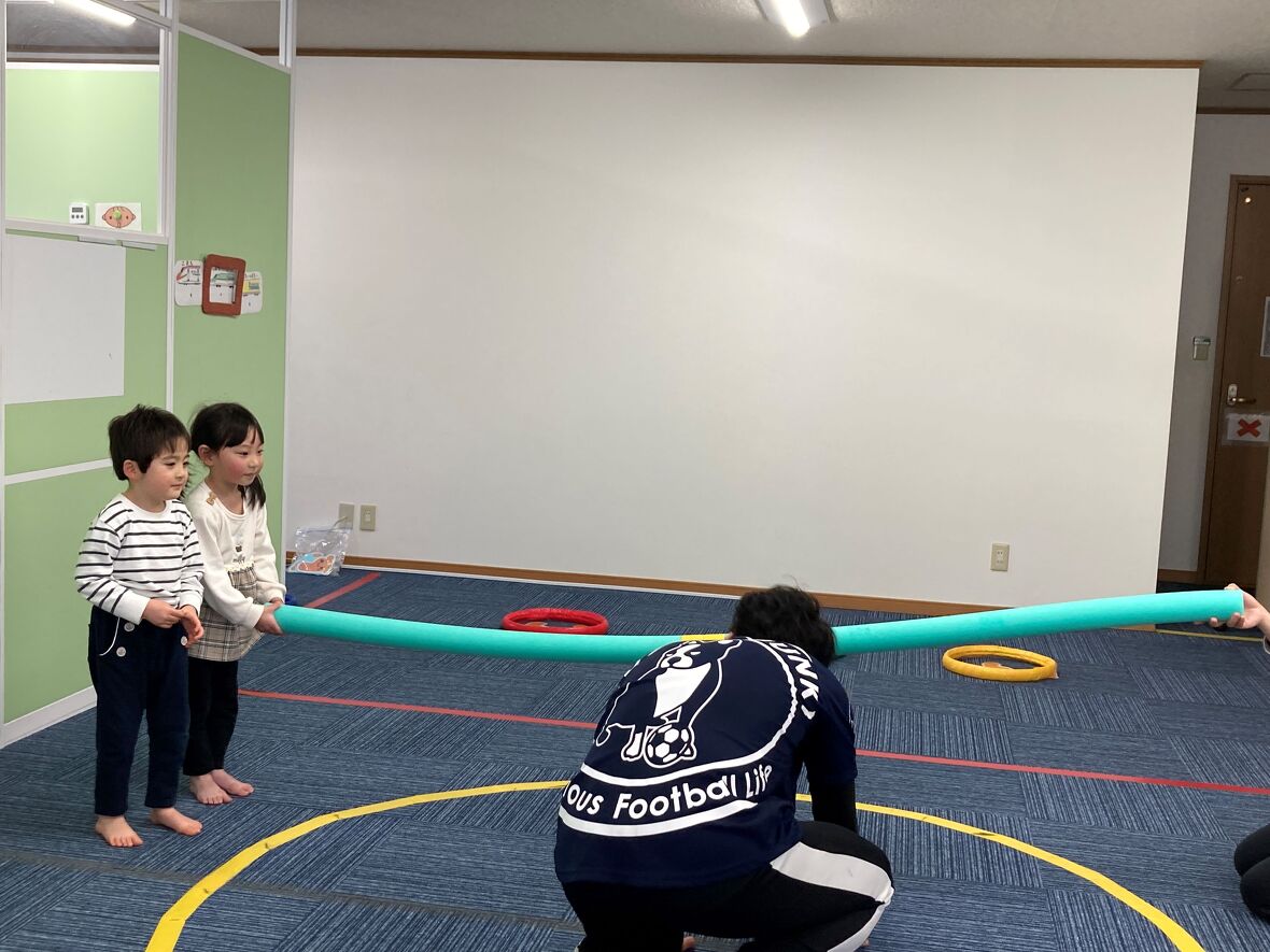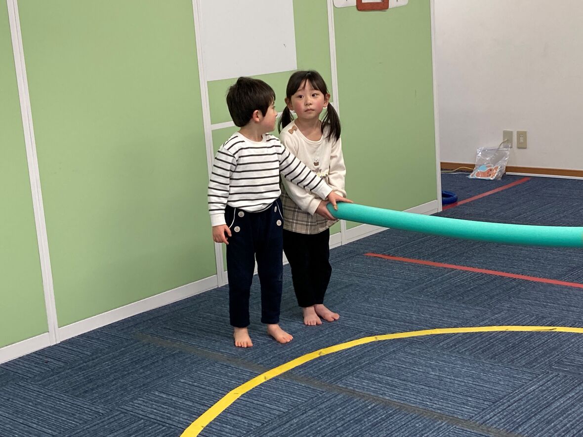 2024年03月26日(火) スタッフブログ タカ先生!ありがとう 今日はタカ先生と運動の日でした。長なわをとび越えたり、ウレタンポールをくぐったり、走るコースには、いろいろな仕掛けがあって楽しかった!!楽しい遊びをいっぱい教えてくれたタカ先生は、新しい仕事を頑張るために、HiKaRiのプログラムはしばらくお休みすることになりました。これまで本当にありがとうございました!! 最初はなわとびをとび越えて・・・ ちょっと心配そうにウレタンポールを持っています・・・が タカ先生がくぐっていきます 無事くぐれてよかった~ 今度はみんなでくぐってみよう!! 帰りのコースは? ポールをまたいでみます。タカ先生優しく見守ってくれてありがとう!