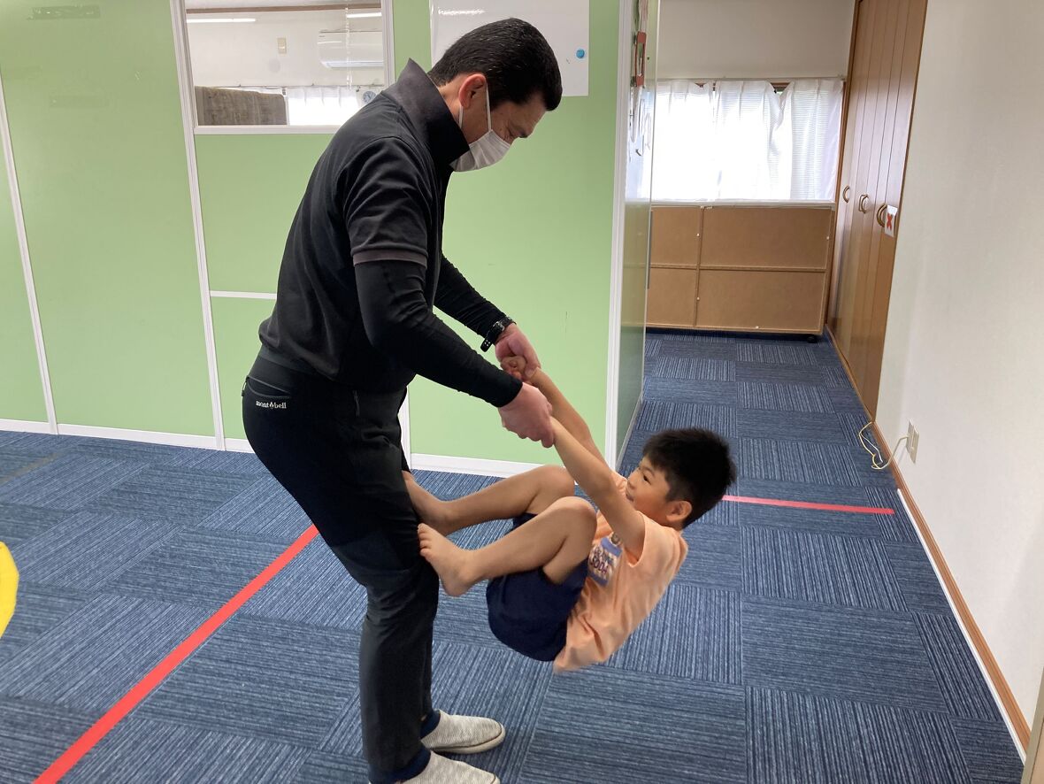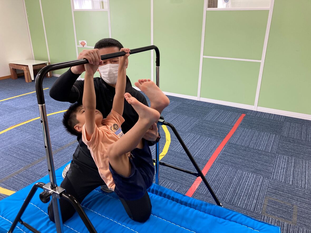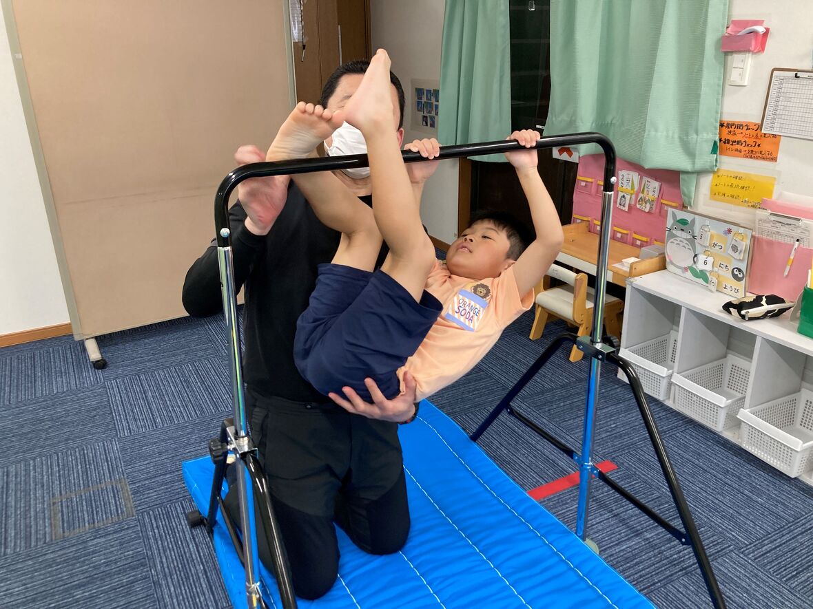 2024年05月06日(月) スタッフブログ 鉄棒してお散歩♩ 今日は鉄棒で身体を動かしました。空中での姿勢を把握する能力、筋力を高める能力を鍛えました! 運動した後は外へお散歩に♩ゆめテラスまで手をつないで歩いていき、果物や野菜を見にいきました! まずは準備運動から始めます。 鉄棒にチャレンジ! 「豚の丸焼き」という技です~!! 運動が終わってお散歩♩ ゆめテラスに行って果物や野菜を見に行きました!