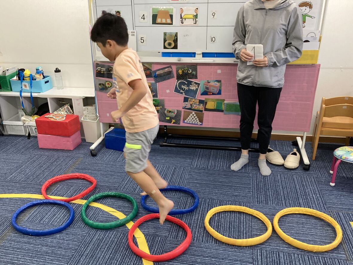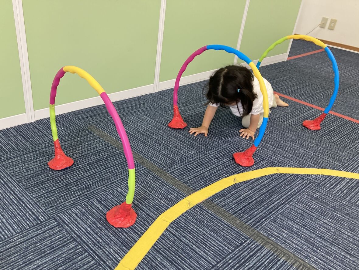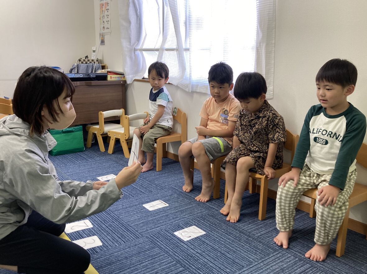 2024年05月16日(木) スタッフブログ 順番を守ってサーキット! 今日のサーキット遊びは順番を決めて、チャレンジしました! 先生に番号を呼ばれるまで、みんな落ち着いて順番をしっかり守って待つことができました! 先生が順番を決めます。 台を登ってジャンプ! サイコロを振って… 出た目の数を確認! 出た数だけジャンプ!! トンネルをくぐって席に戻ります。 コース変えたりして、サーキットを楽しみました♩