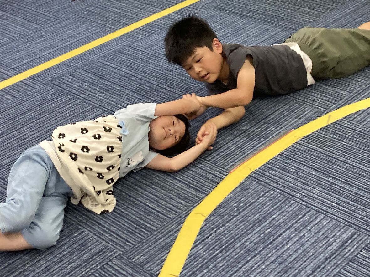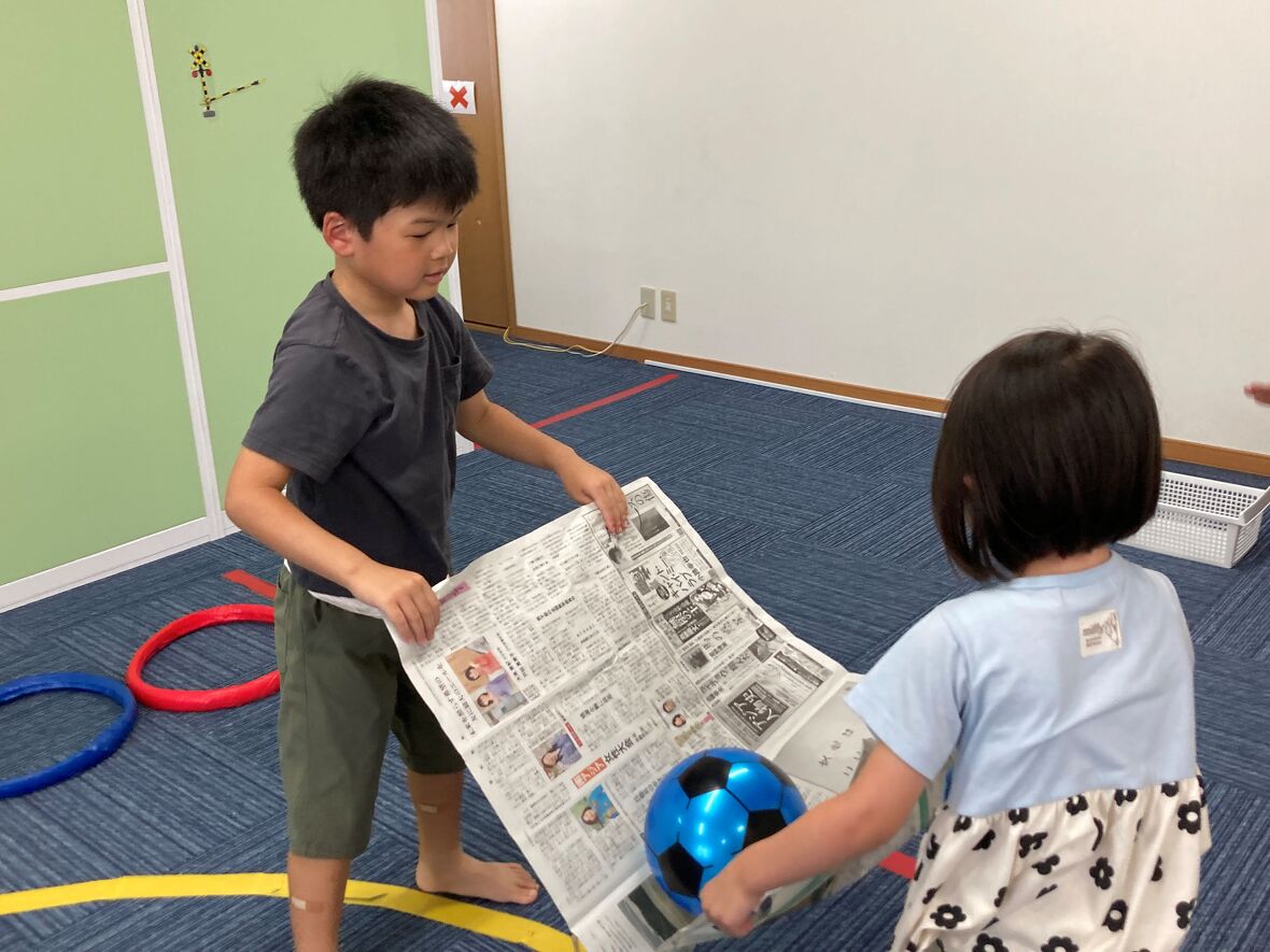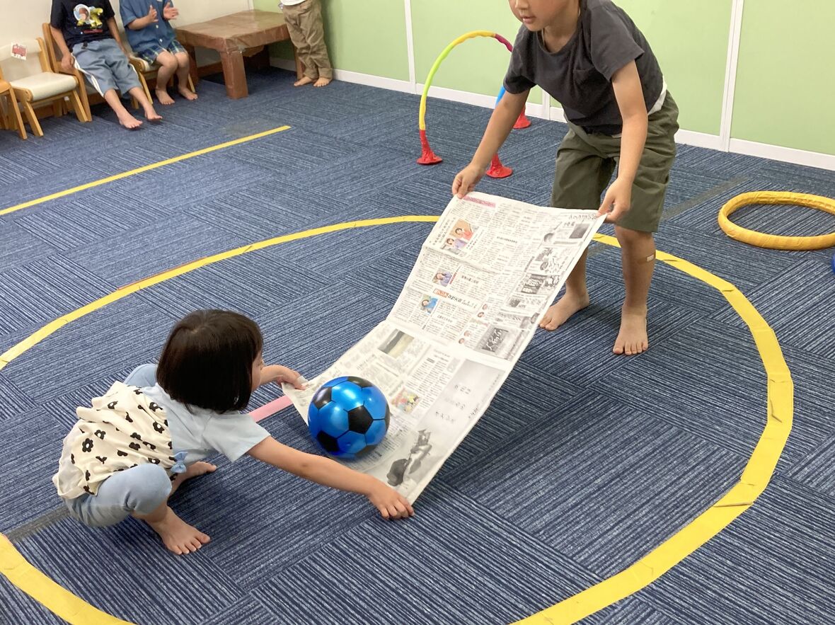2024年05月27日(月) スタッフブログ お友だちと一緒に♩ 今日はお友達と一緒に協力してボールを運ぶ運動をしました!手をつないだり、新聞紙を使って慎重にボールを運びました! ボール遊びを通して友だちと協力する楽しさを学びました! まずは手をつないでコロコロ~ 新聞紙にボールを乗せて… 落とさないように運びます! 最後はフープをくぐって席に戻りました!