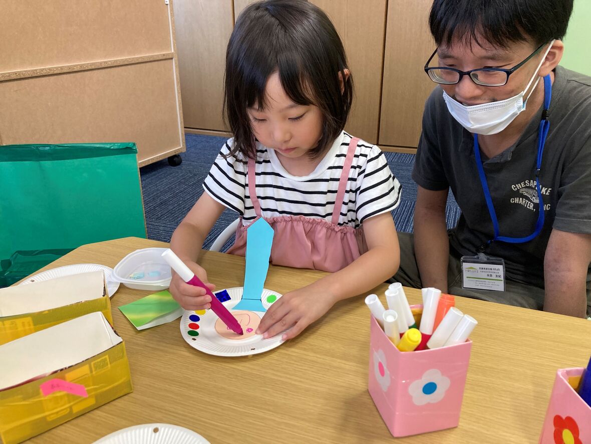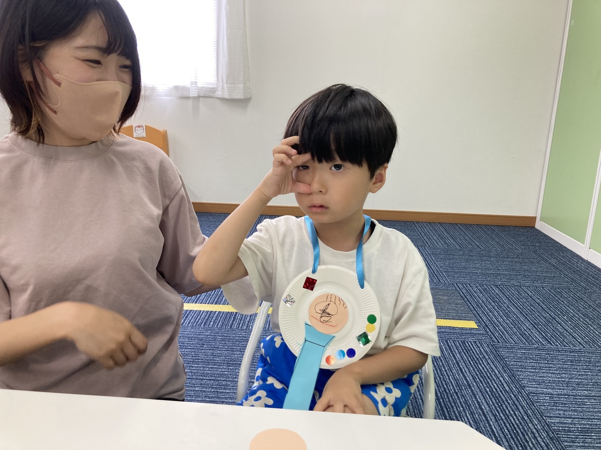 2024年06月12日(水) スタッフブログ 父の日のプレゼント 今日は父の日の製作を作りました!お父さんに日頃の感謝の気持ちを込めて、頑張って作りました! 先生の説明を静かに聞いてます。 指にのりを付けてぬりぬり! ネクタイをはさみでチョキチョキ~ お父さんのお顔を描いて… 完成!!!