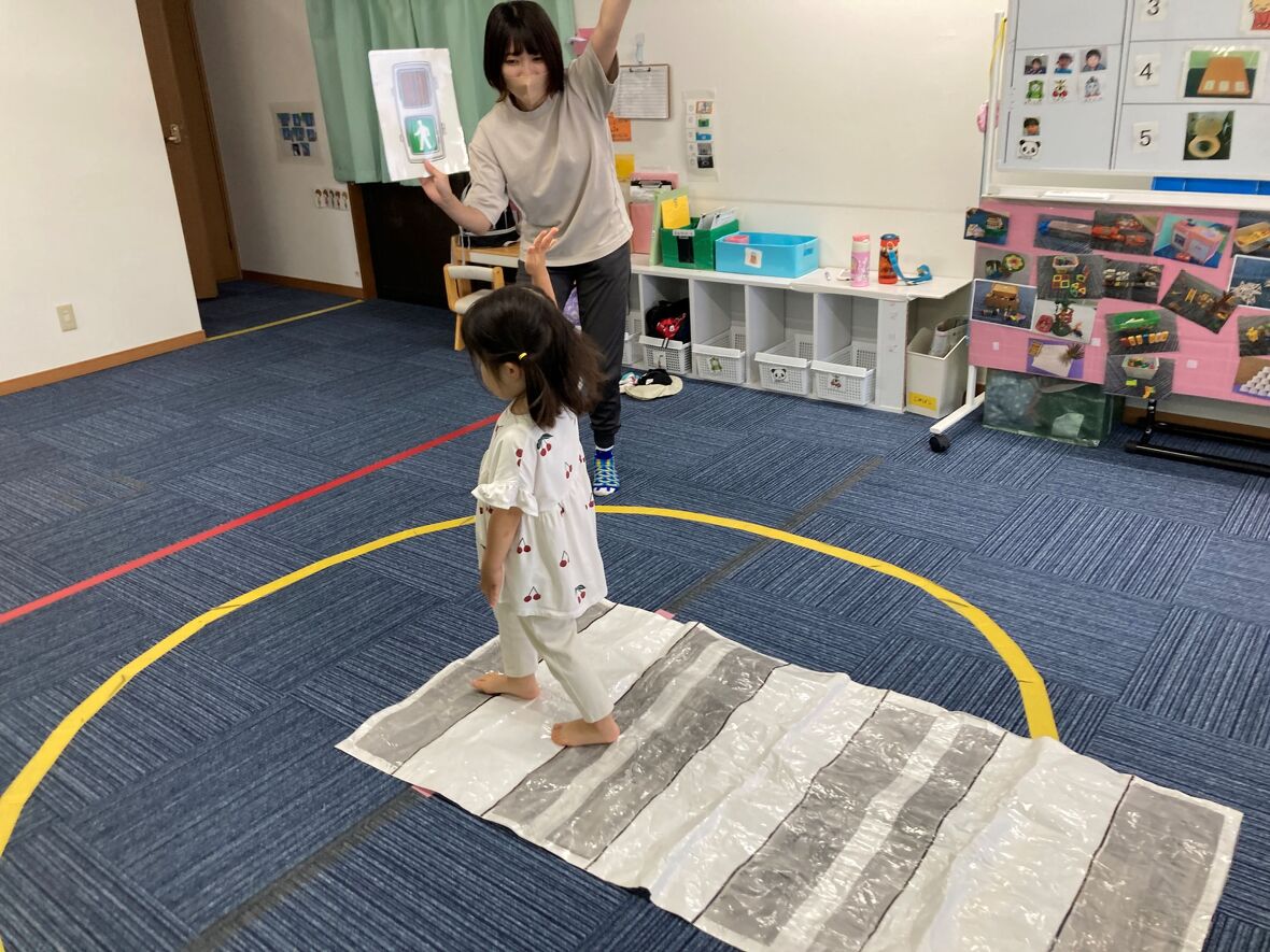 2024年06月13日(木) スタッフブログ 交通ルール学ぼう! 今日は交通ルールを学ぼうです。子どもたちに交通ルールの大切さを伝えるよい機会になります。「右見て左見て、もう一度右見て、手を上げて横断歩道を渡る」を室内でしっかりお勉強して、外でも出来るように実際に横断歩道を渡りました! 待ち時間に先生と手遊び♩ 先生が見本を見せてくれてます。 子どもたちもお手本通りにできました! 外でも上手に出来ました!