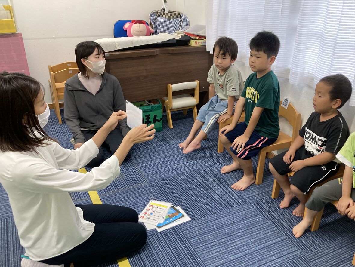 2024年06月17日(月) スタッフブログ 水害避難訓練! 今日は水害避難訓練をしました。もし、水害が起きた時のことを先生が絵カードで丁寧にわかりやすく子どもたちに教えてくれます。「こんなときはどうしたらいい?」など質問をしながら、お勉強しました。実際に外に出て、避難場所にも行きました。 先生が絵カードで説明をしてくれています。 みんな真剣に聞いています。 外に出で避難場所へ… 避難場所に到着です!
